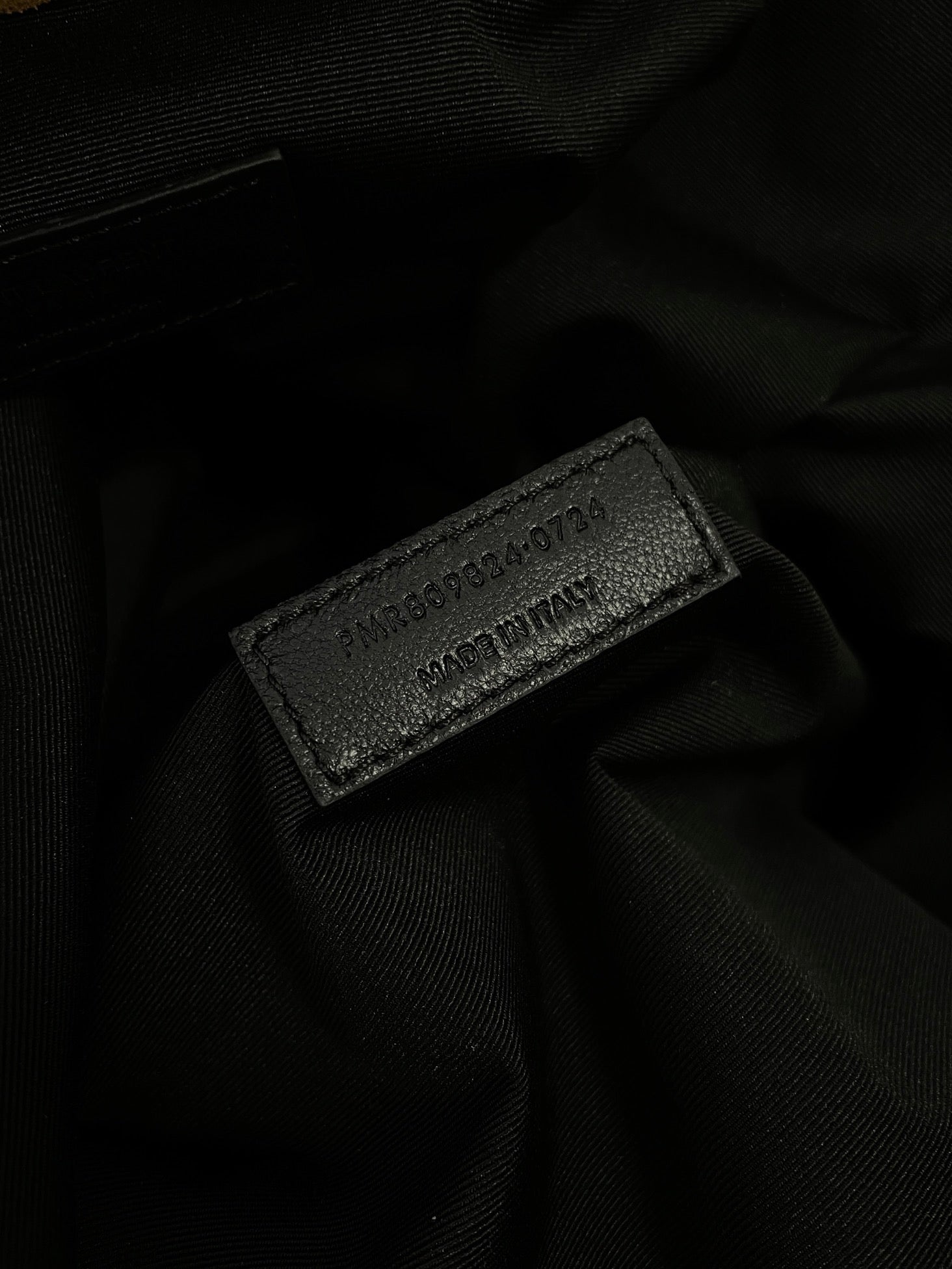 Carré rive gauche 퀼팅은 생로랑의 좌안(Left Bank) 정신을 표현한 정사각 패치워크형 탑스티치 디자인으로, 구조적이면서도 클래식한 브랜드 감성을 강조하는 장식입니다.