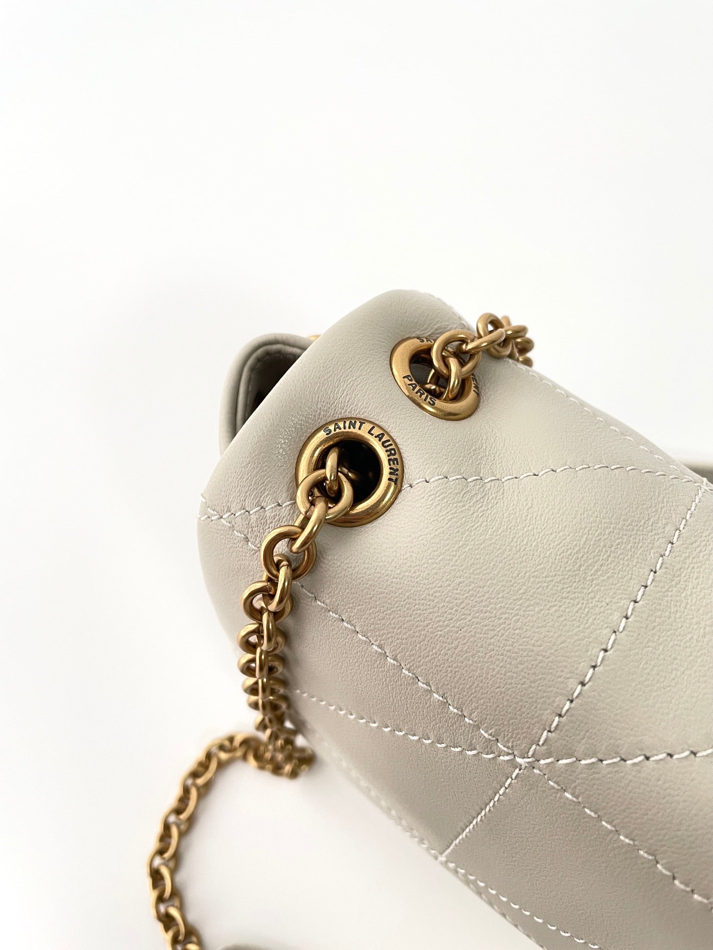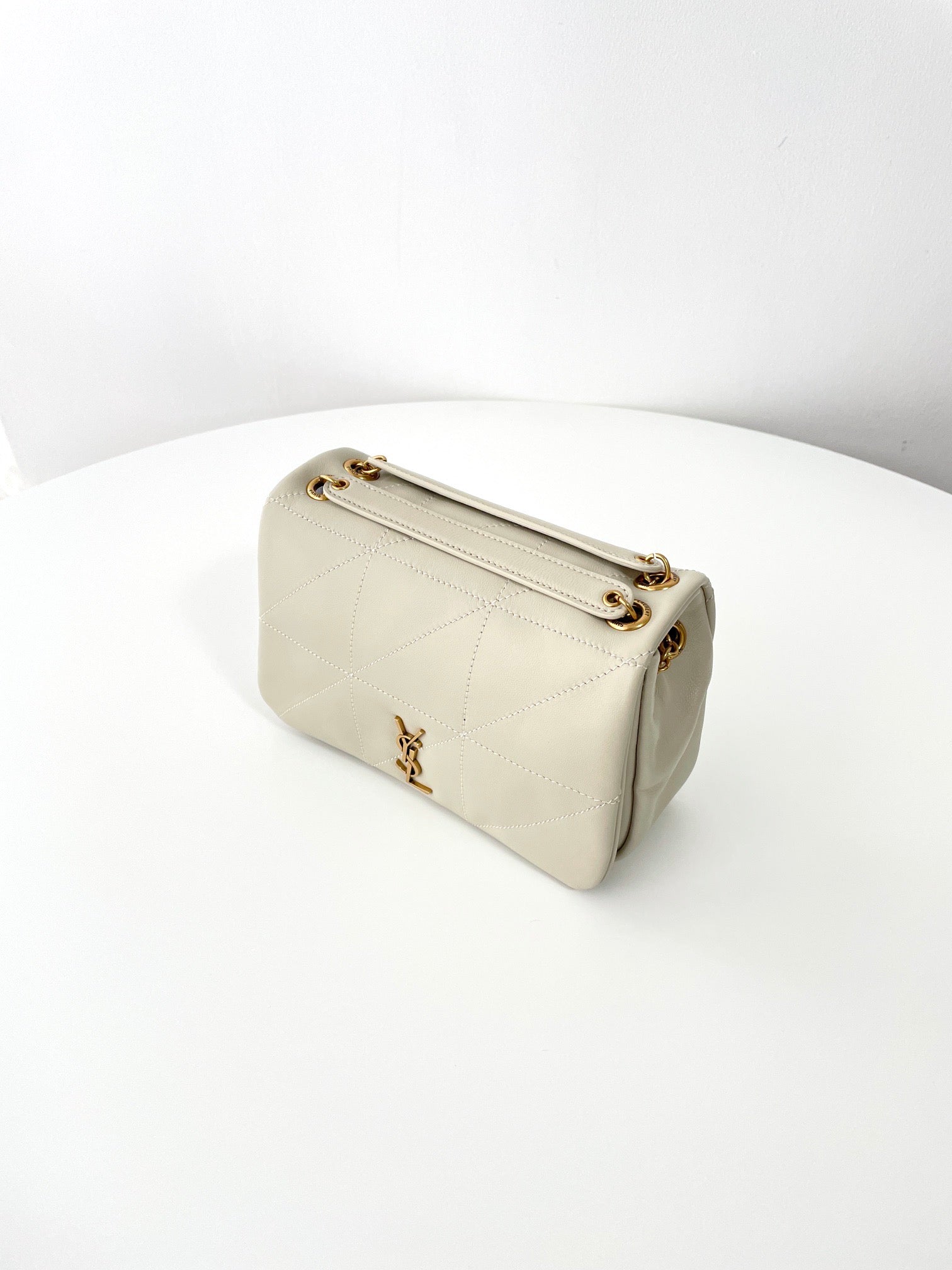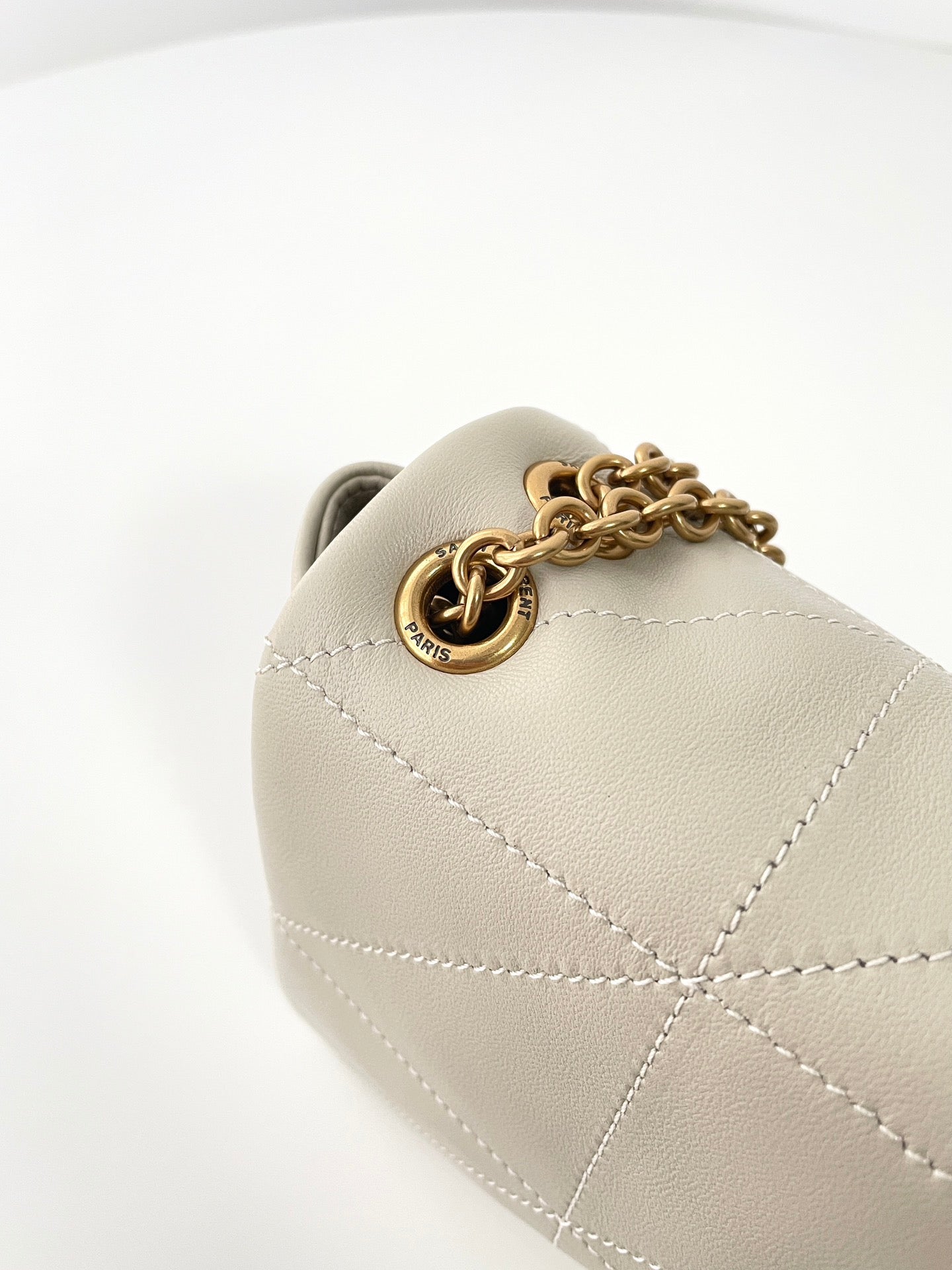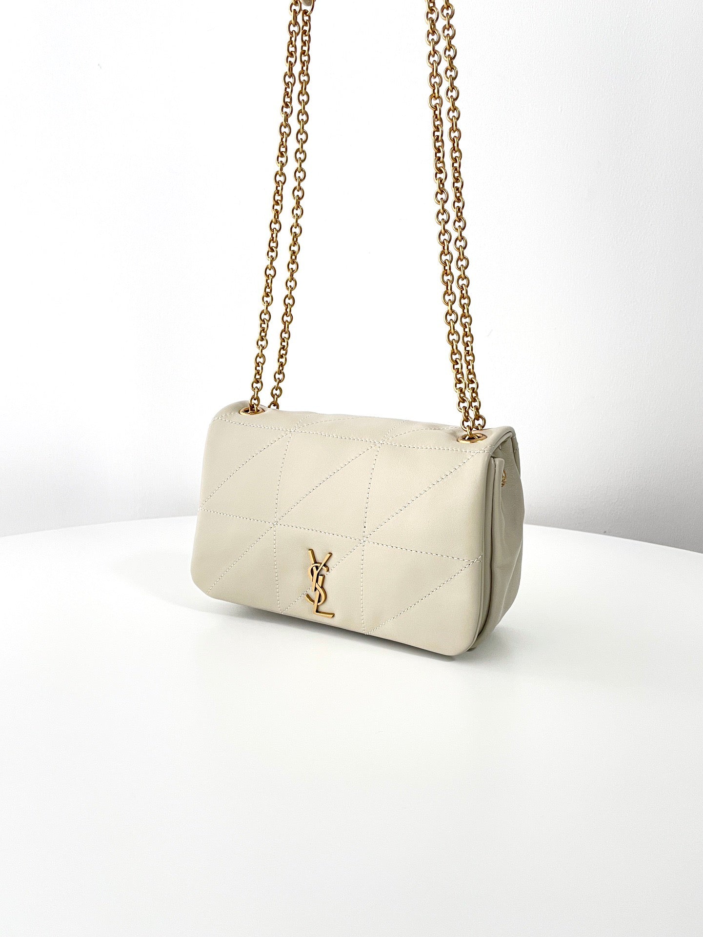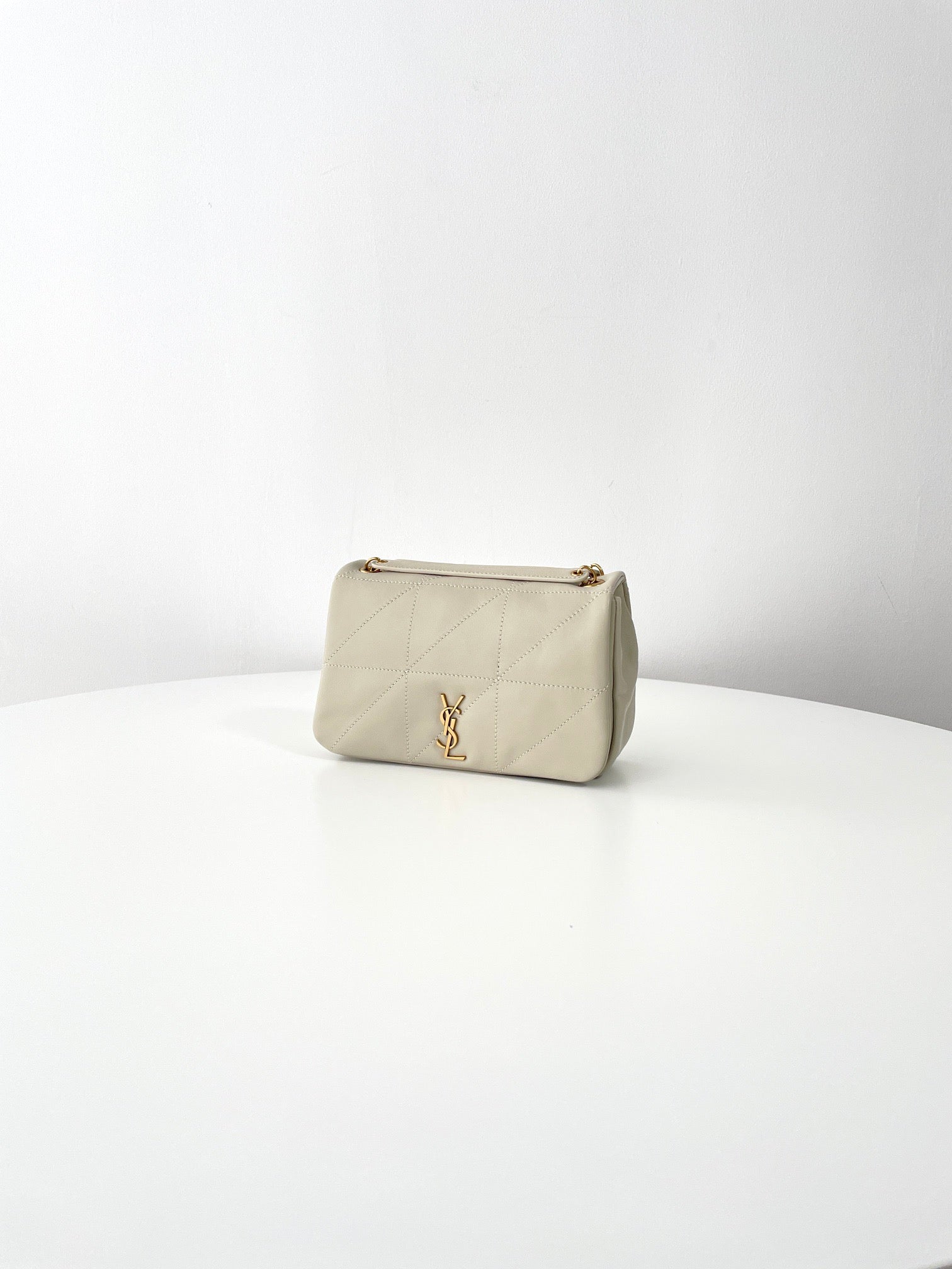 Jamie 컬렉션의 미니 버전인 4.3 체인백은 Saint Laurent 특유의 좌안(Carré rive gauche) 스타일을 미니백으로 재해석한 모델입니다. 정사각형 퀼팅과 미니멀한 라인, 골드 또는 실버 하드웨어가 조화를 이루며 간결하면서도 우아한 분위기를 완성합니다.