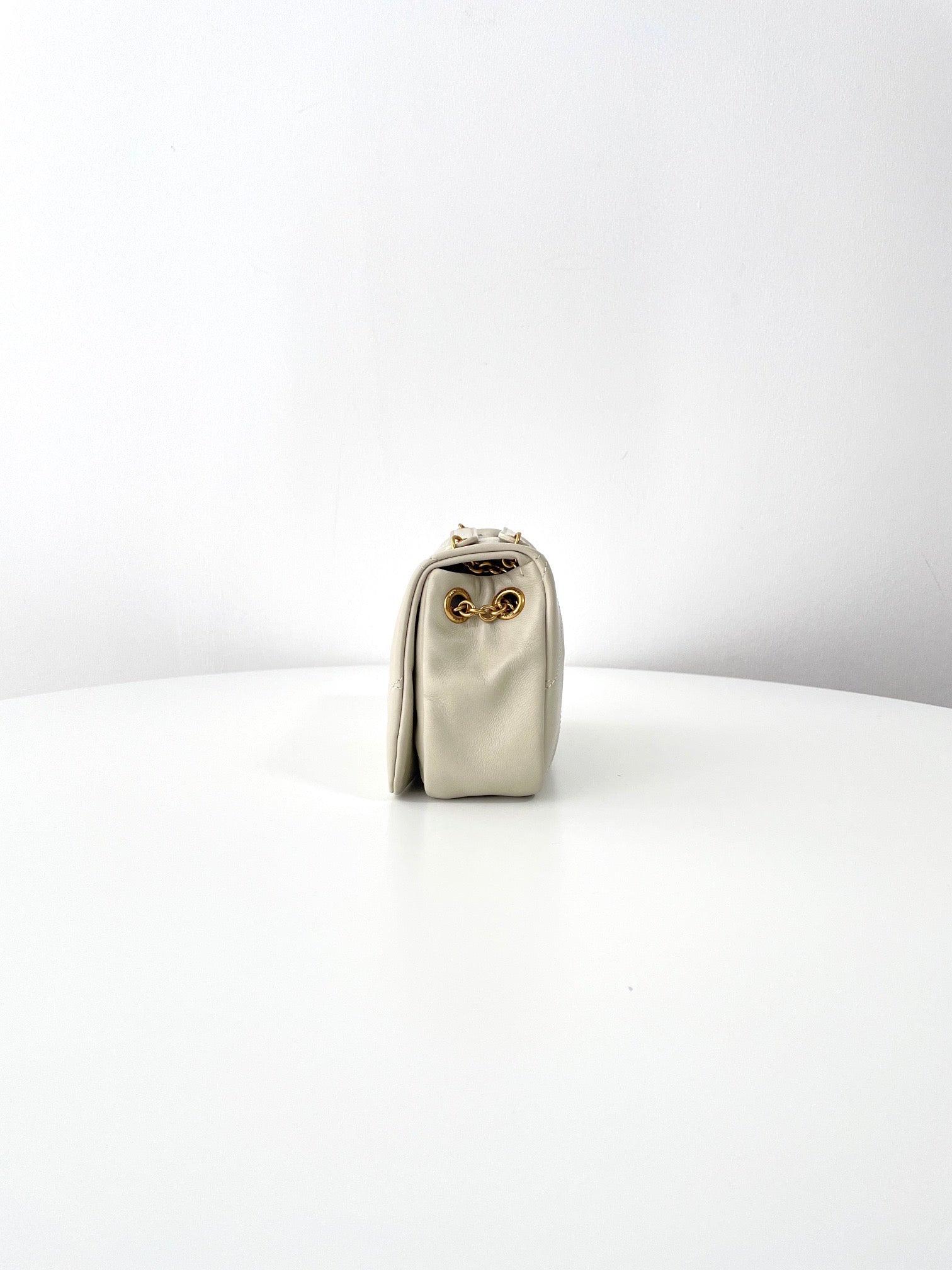 미니 체인백이지만 필수품 수납에는 충분한 용량을 갖추었습니다. 캐주얼한 데님 룩에서부터 드레스업 스타일까지 폭넓게 활용 가능하며, 은은한 퀼팅과 체인 스트랩이 룩에 고급스러움을 더합니다.