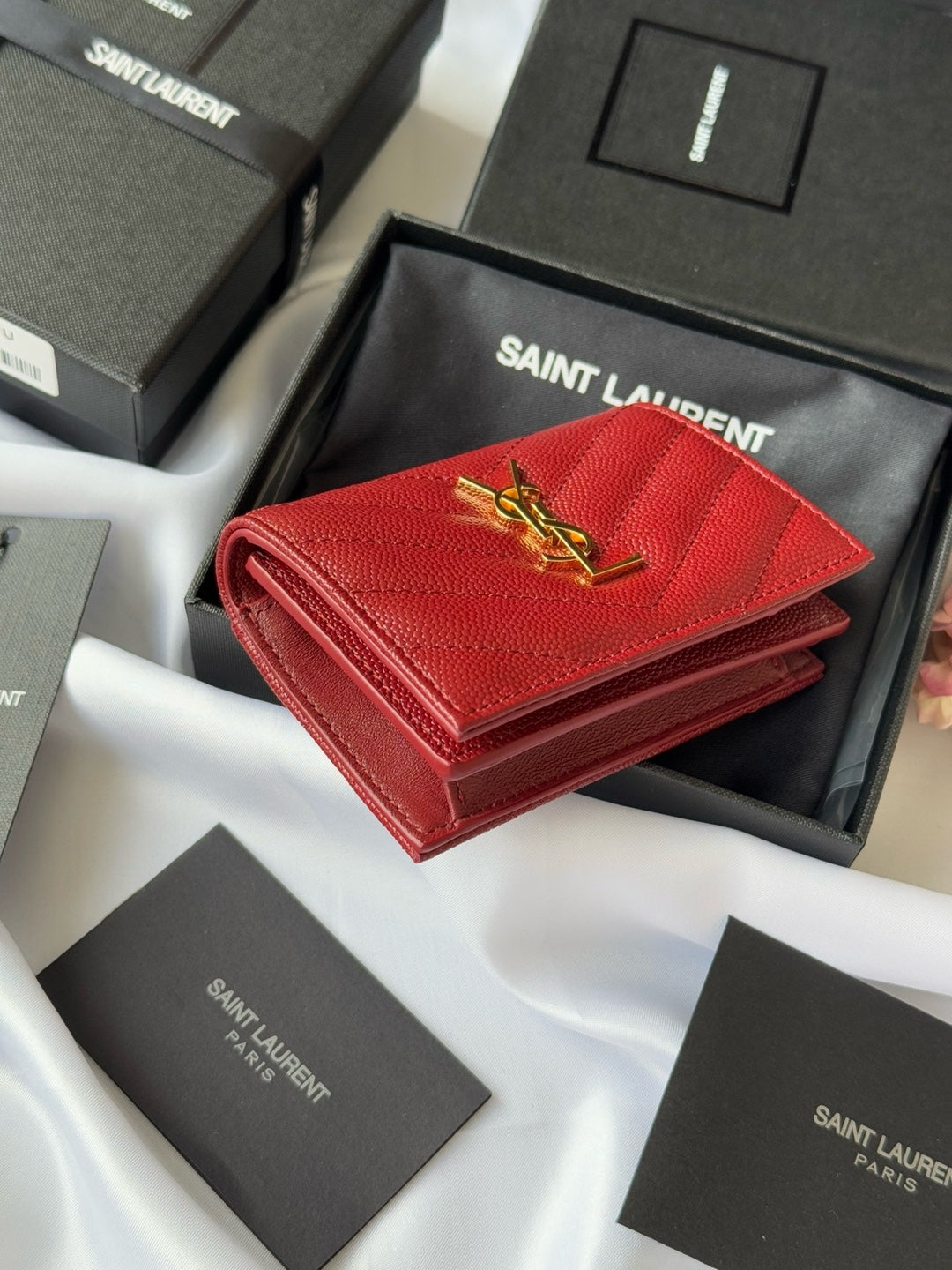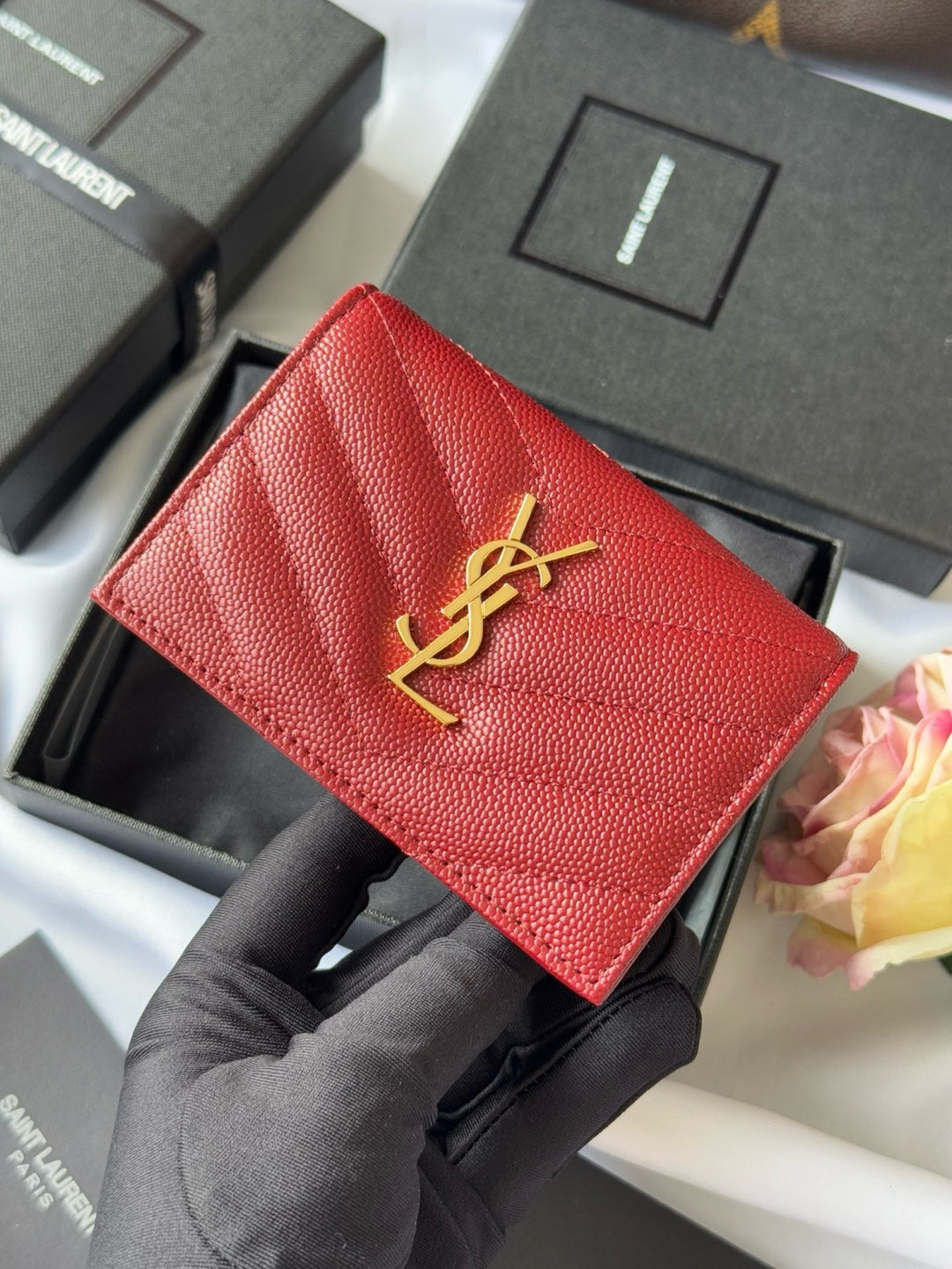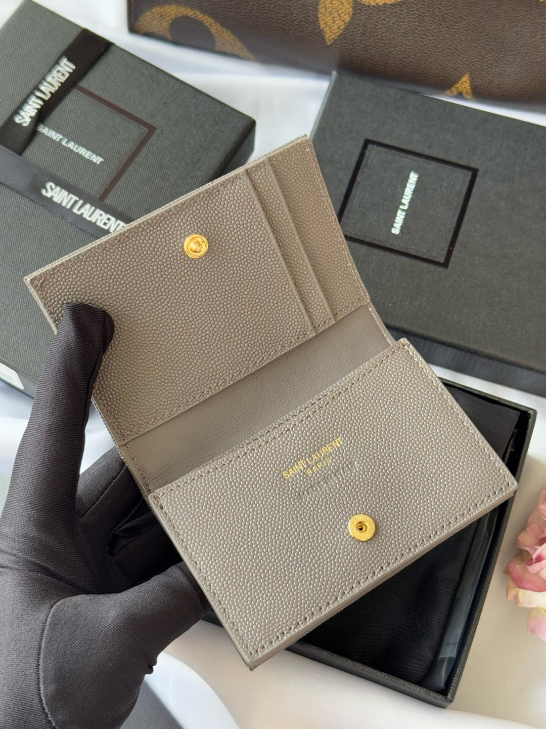생로랑 카산드라 마테라쎄 명함 지갑(Saint Laurent Cassandra Matelassé Card Holder)은 컴팩트한 사이즈에 고급스러운 디테일을 담아낸 명함 및 카드 전용 지갑입니다. 세련된 마테라쎄 퀼팅과 YSL 카산드라 로고가 조화를 이루며, 실용성과 스타일을 동시에 만족시키는 아이템입니다.