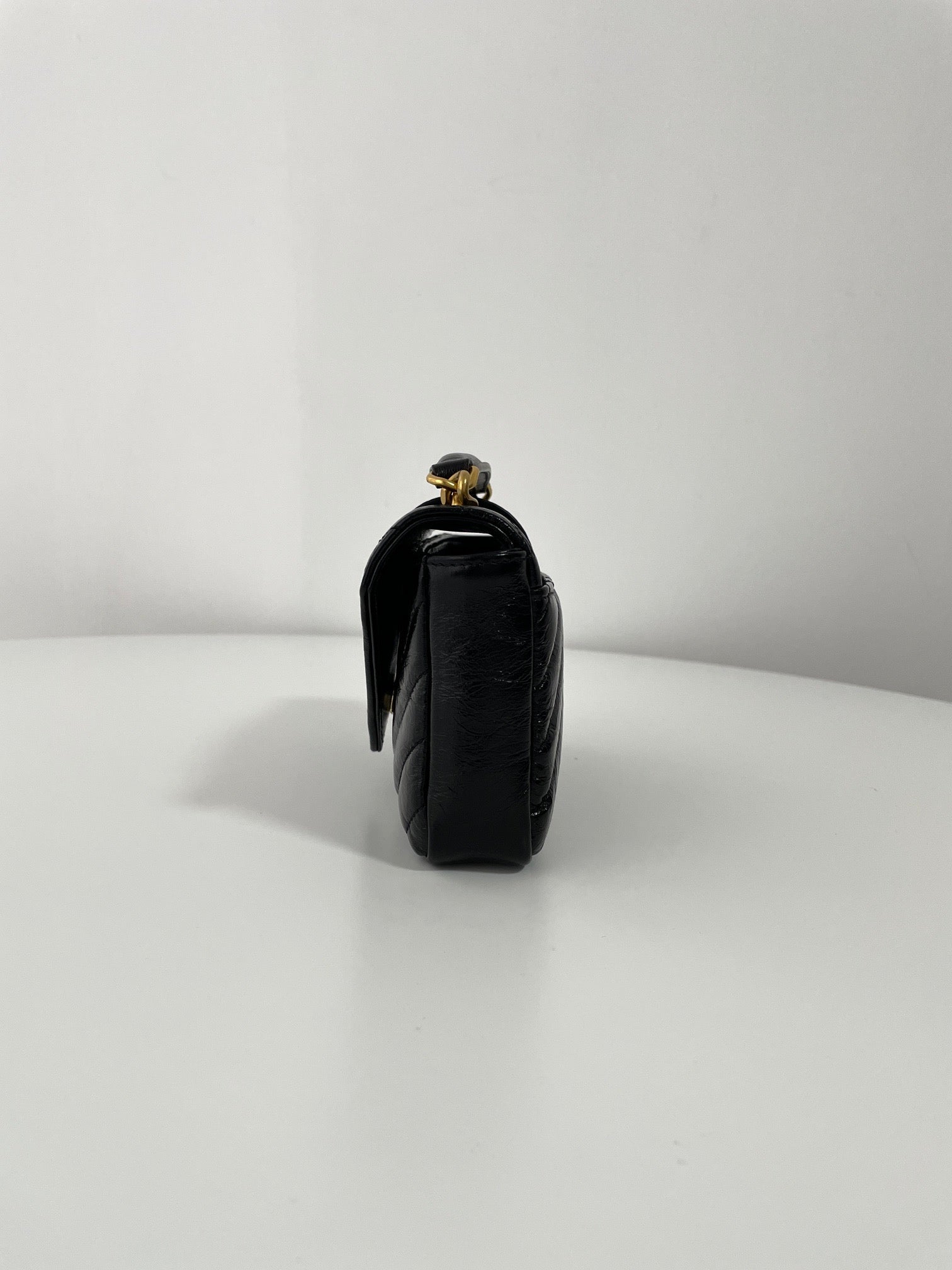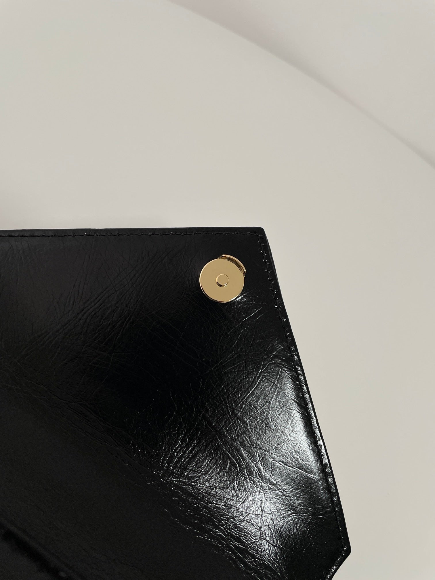블랙 가죽과 골드 하드웨어 조합은 어떤 룩에도 자연스럽게 어우러지며, 포멀한 자리에서도 세련된 인상을 줍니다. 클래식한 디테일 속에 트렌디한 감각이 살아 있어 다양한 연령층에게 사랑받는 디자인입니다.