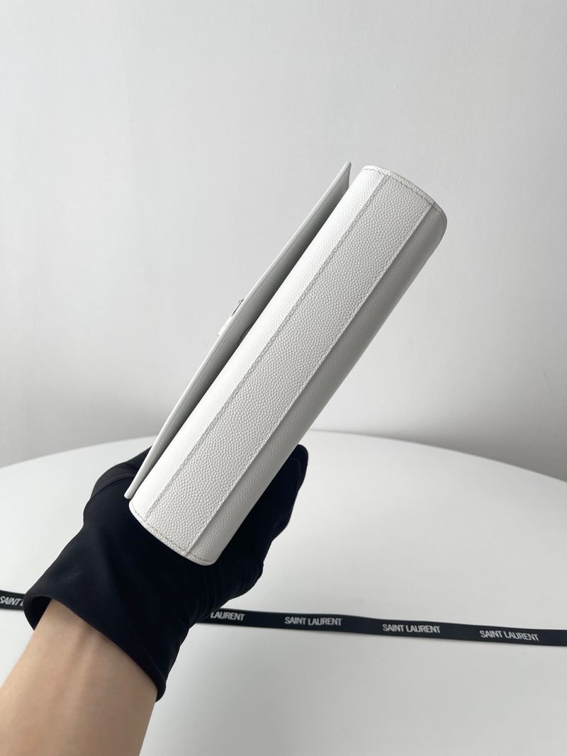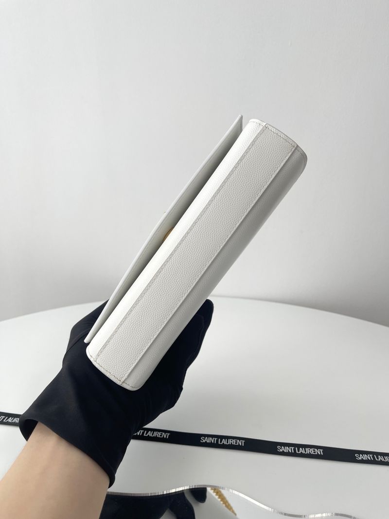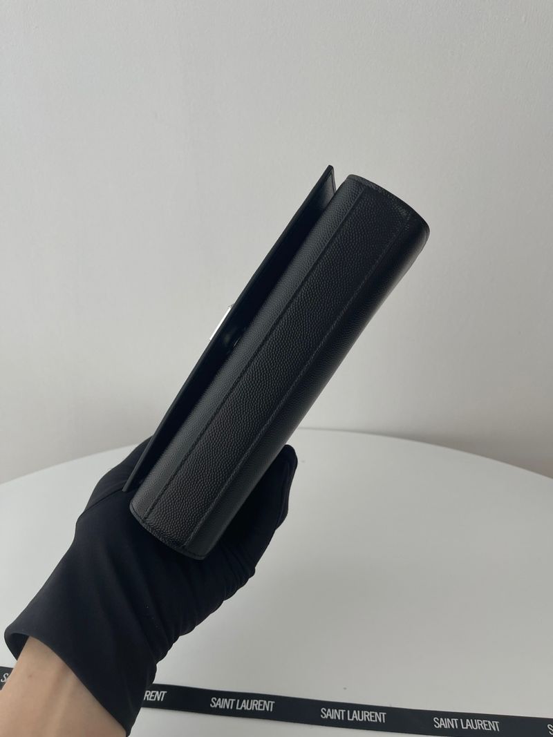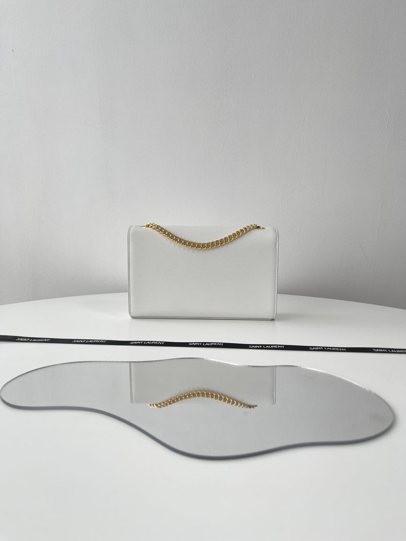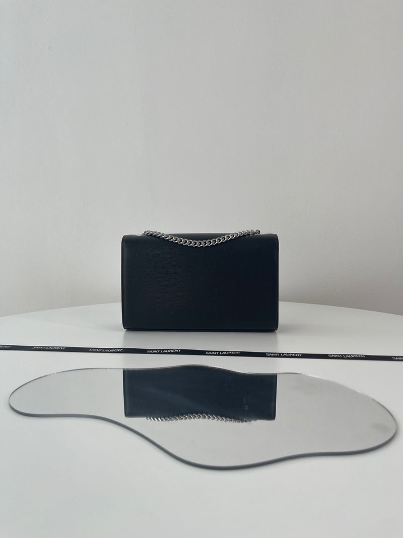 케이트 백은 직사각형 구조에 플랩 클로저 디자인으로 구성되어 있으며, 전면에는 생로랑의 시그니처인 YSL 메탈 로고가 자리잡고 있습니다. 스몰 사이즈는 작고 단정한 비율로 데일리나 이브닝 룩에 잘 어울리며, 롱 체인 스트랩은 숄더 또는 크로스바디로 다양하게 연출할 수 있습니다.
