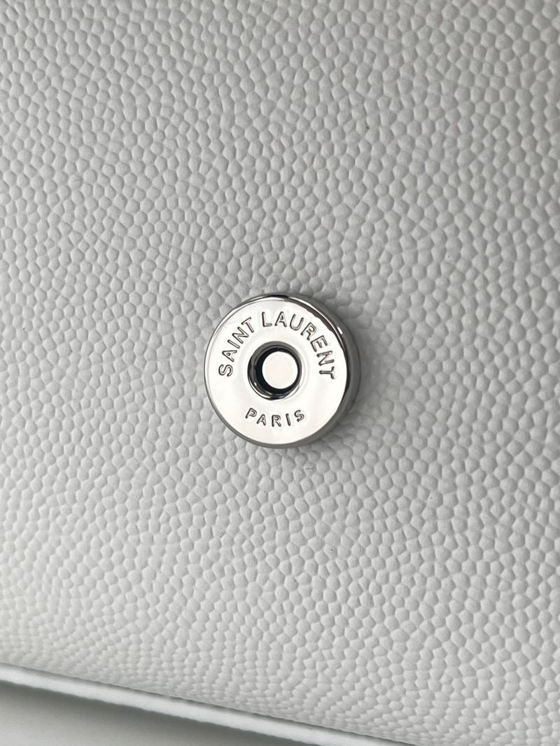 생로랑 케이트 사첼백 스몰(Saint Laurent Kate Satchel Bag Small)은 생로랑의 아이코닉한 체인백 라인 중 하나로, 컴팩트한 사이즈 안에 세련된 디자인과 고급스러운 디테일이 집약된 스몰 숄더백입니다. YSL 로고와 메탈 체인 스트랩이 특징이며, 미니멀한 포멀룩부터 세련된 데일리룩까지 폭넓게 어울립니다.