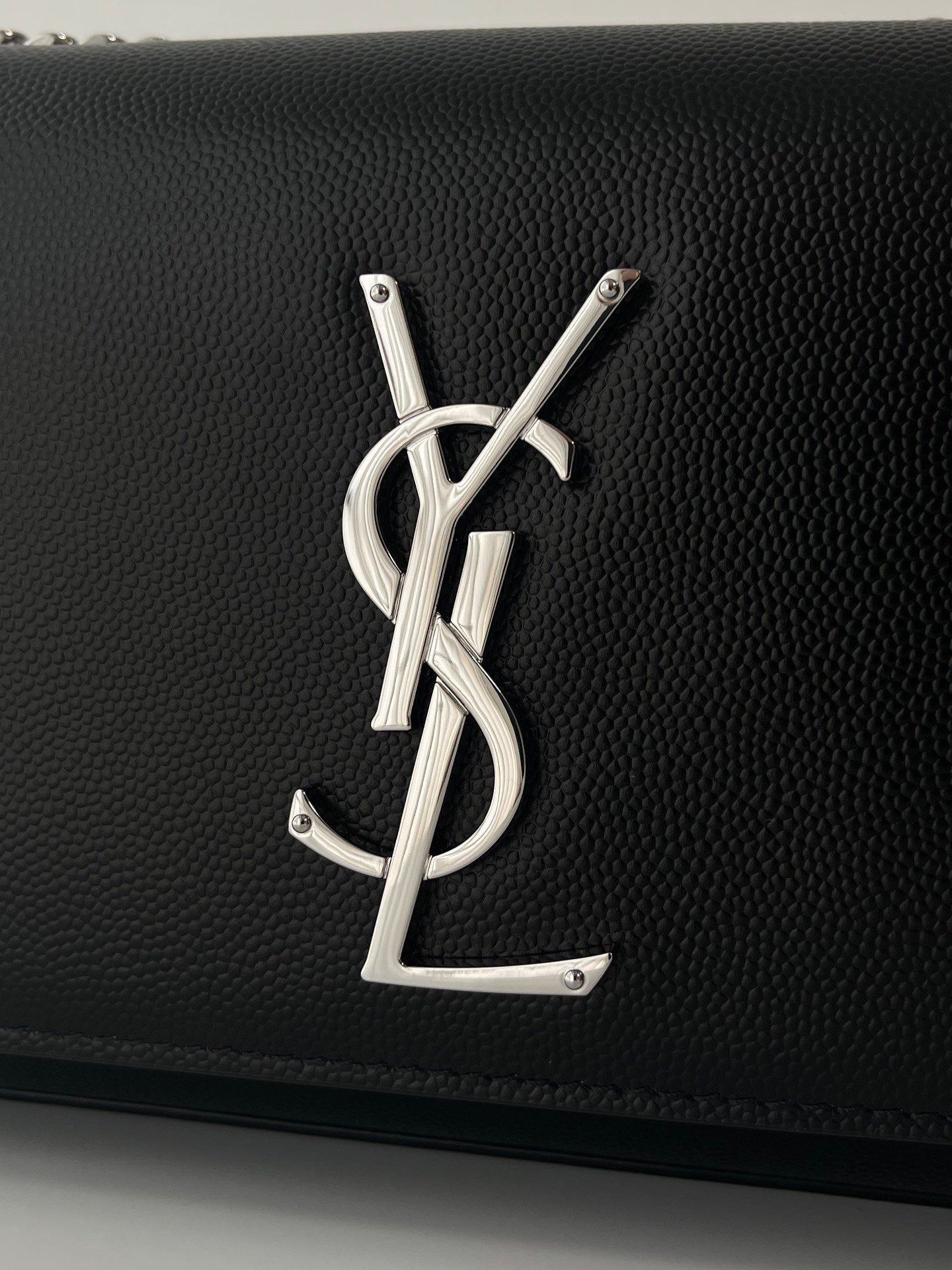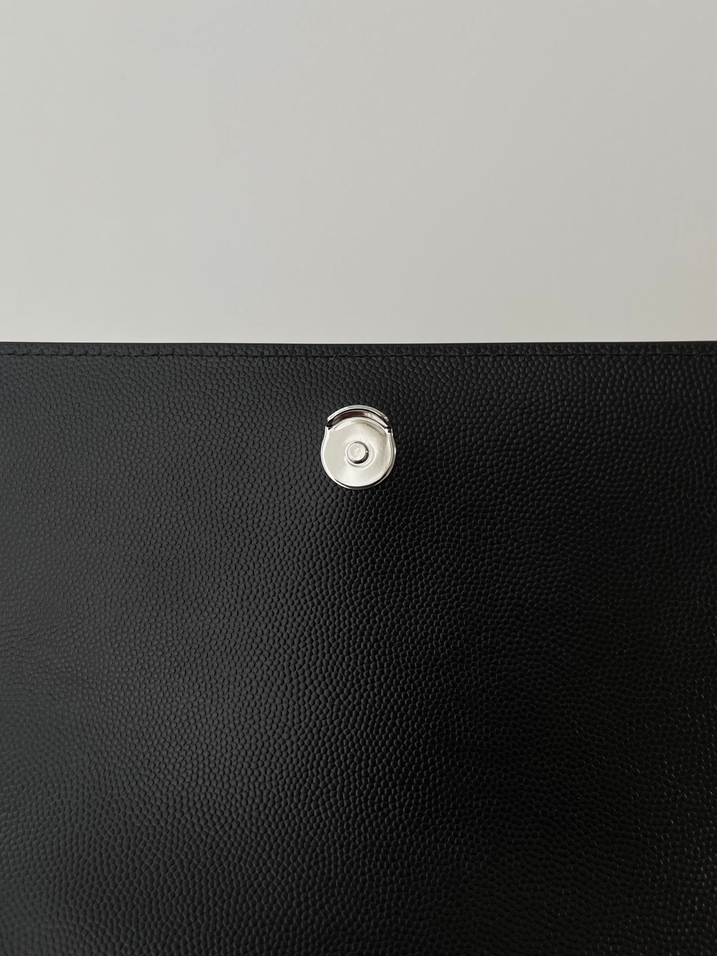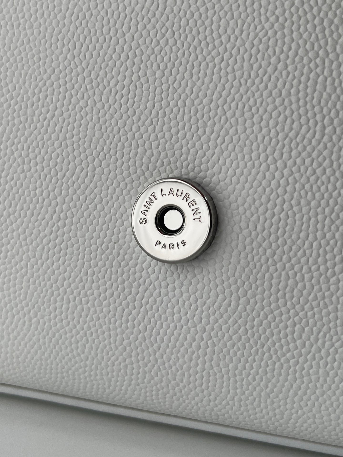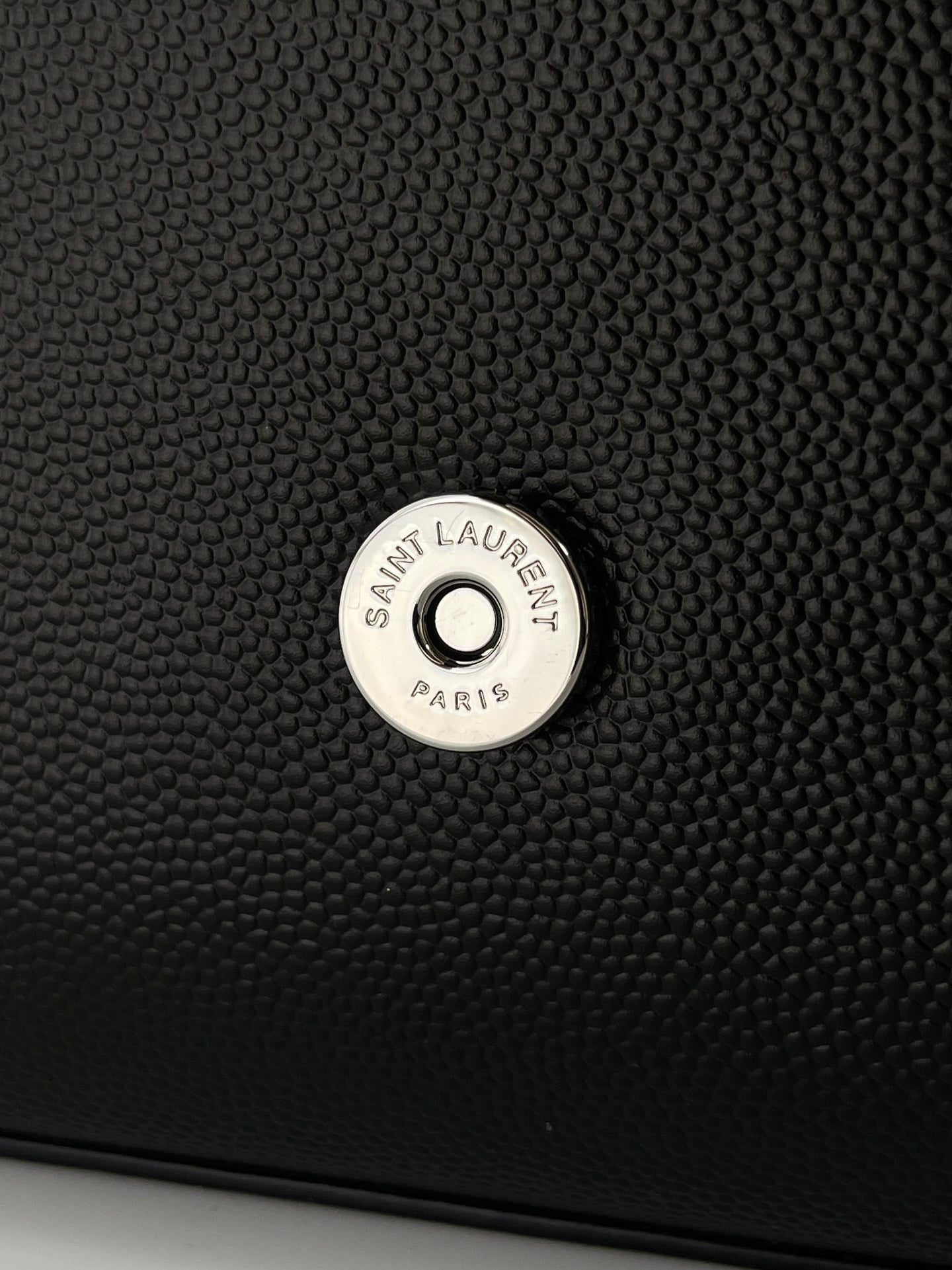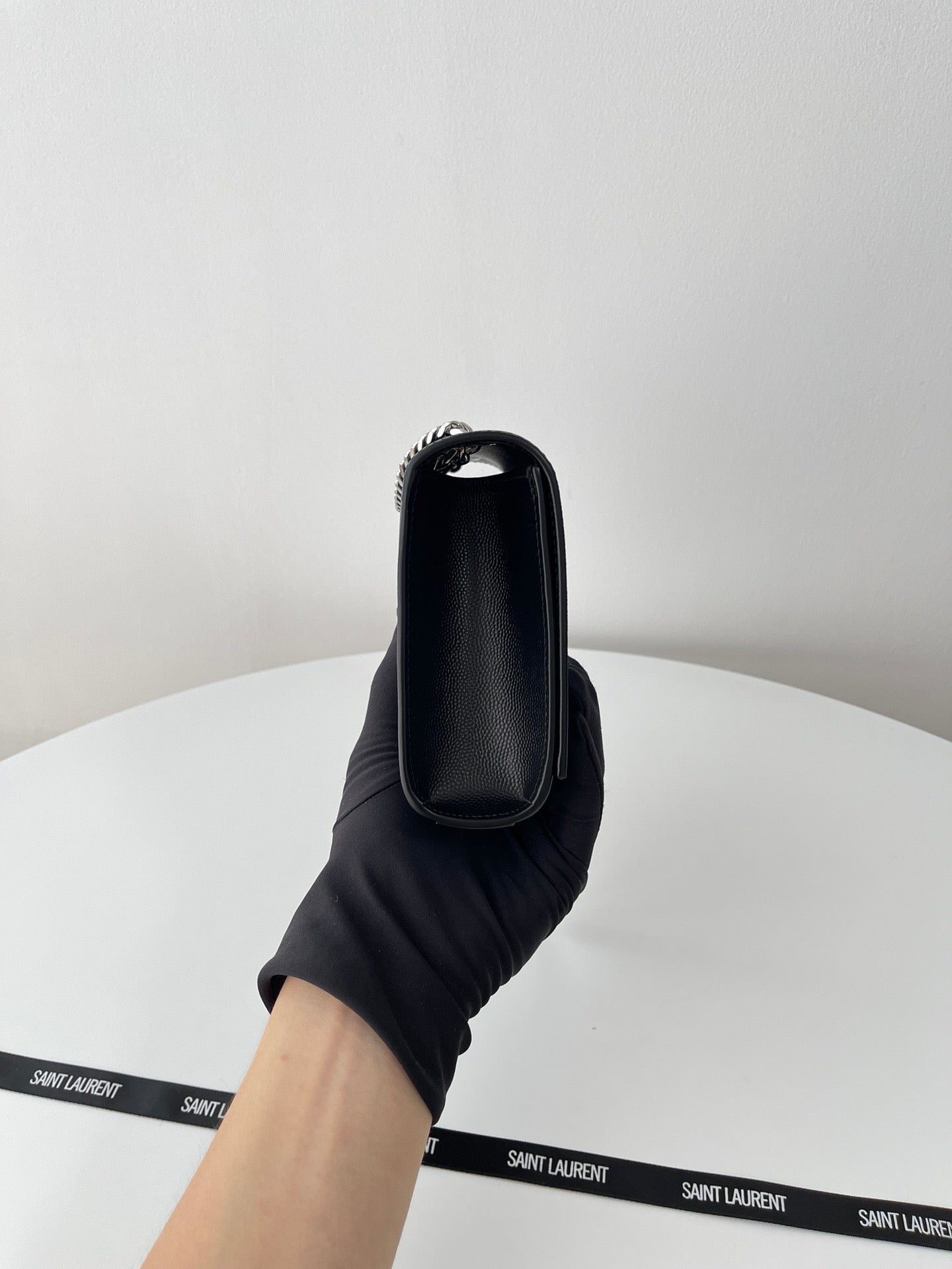 디테일: YSL 메탈 로고, 체인 스트랩, 메탈 테슬 장식, 마그네틱 플랩 클로저