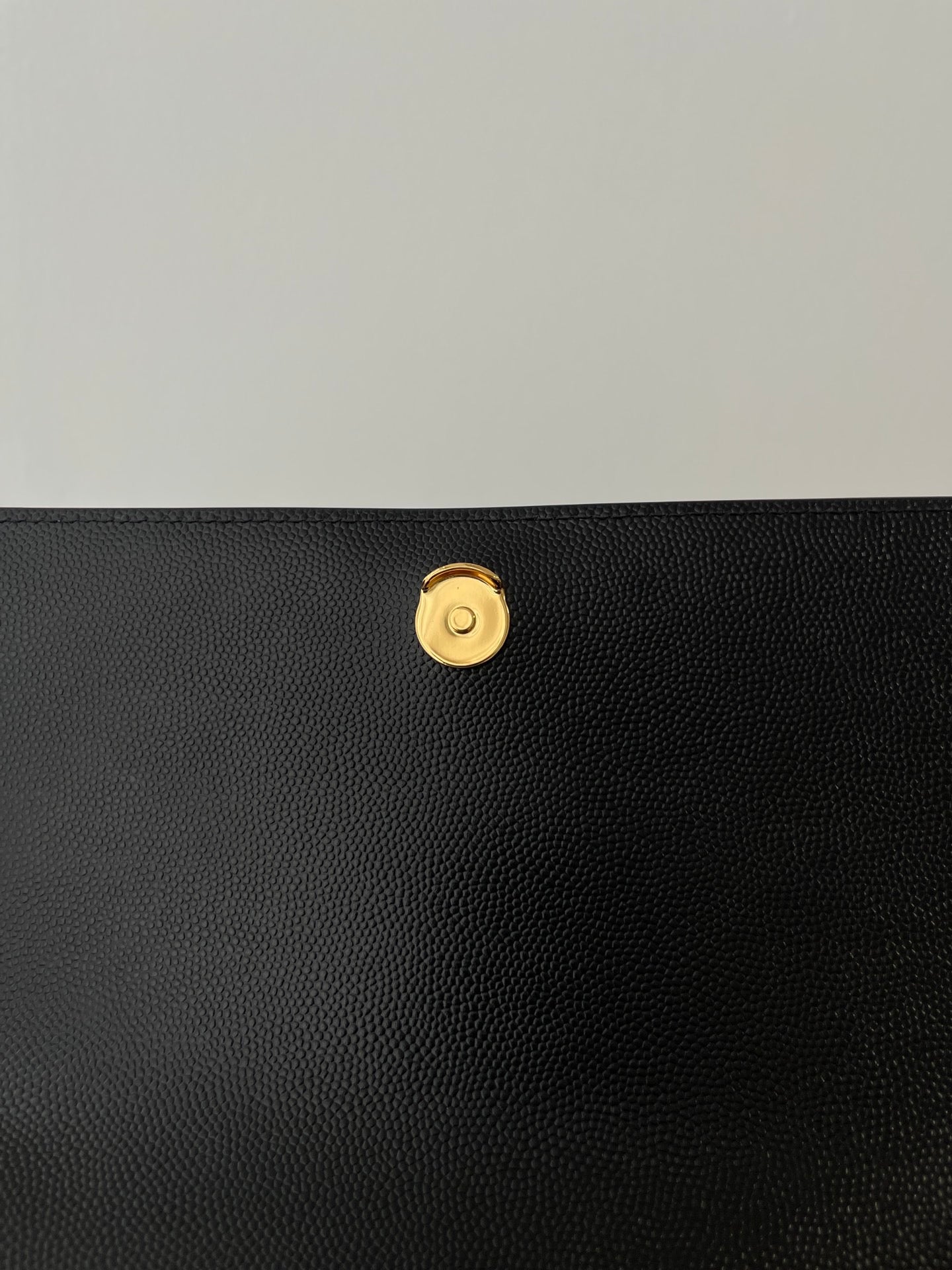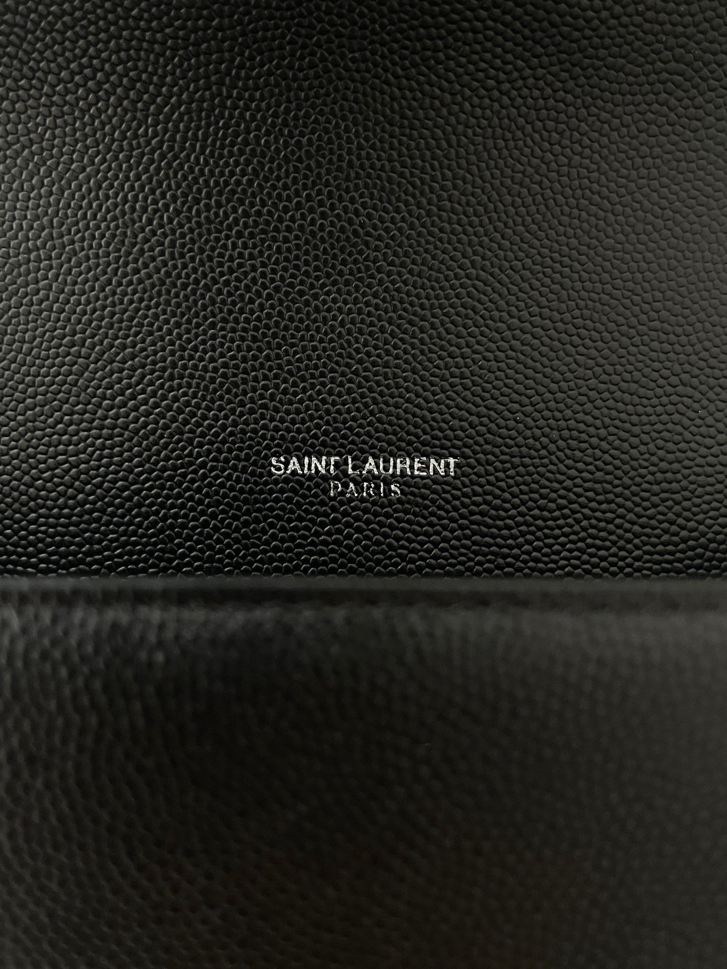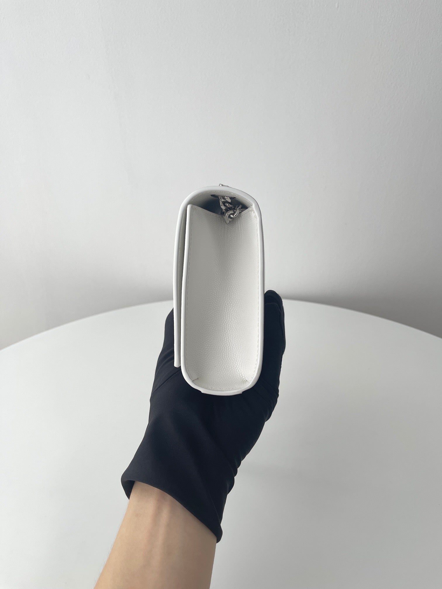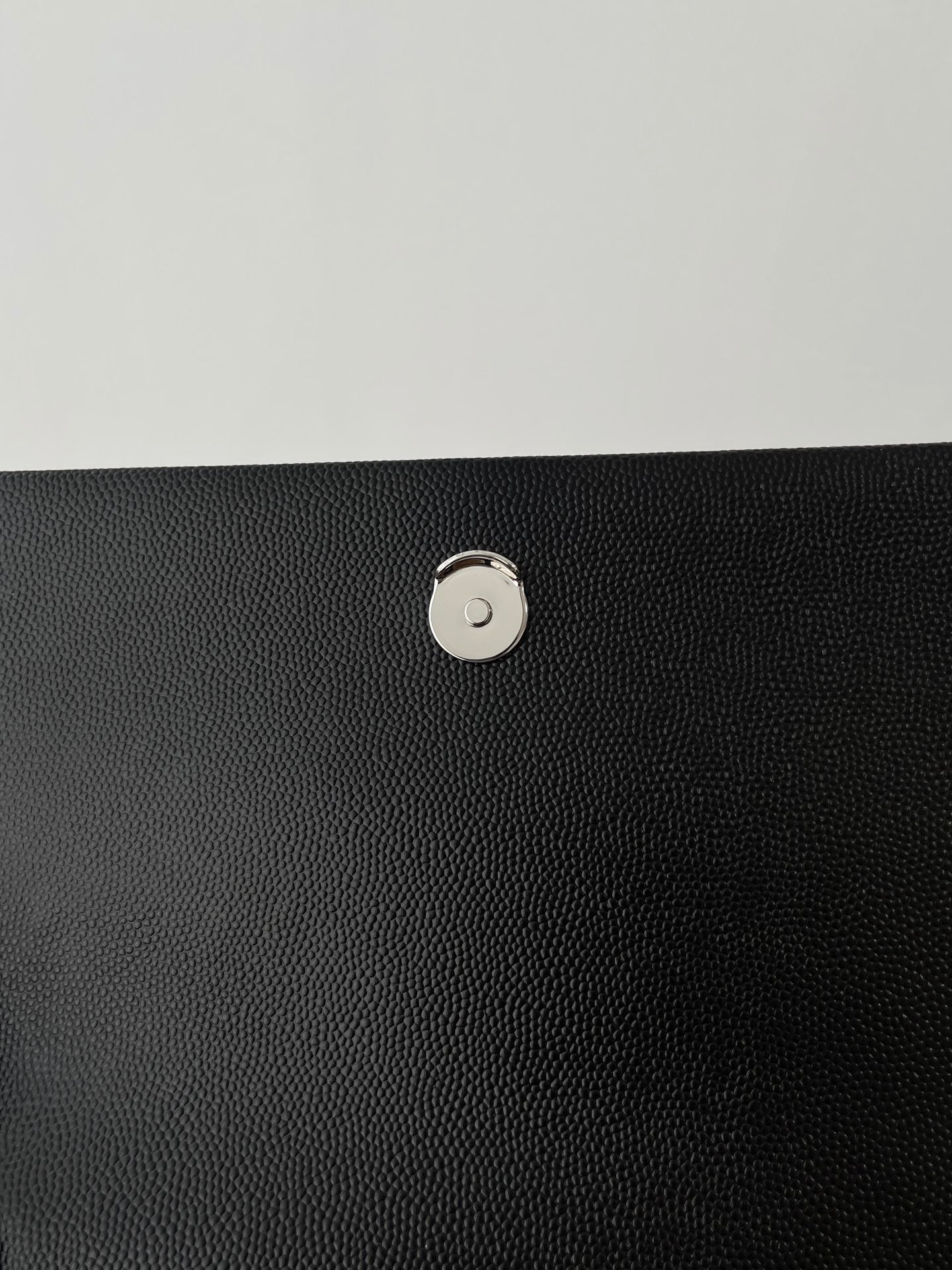디테일: YSL 메탈 로고, 체인 스트랩, 메탈 테슬 장식, 마그네틱 플랩 클로저
