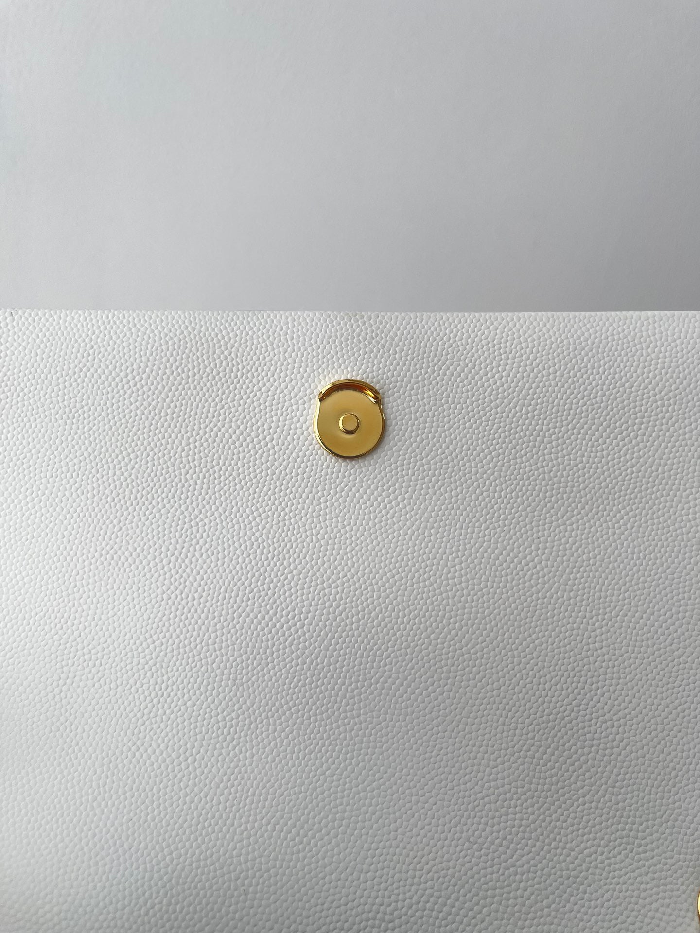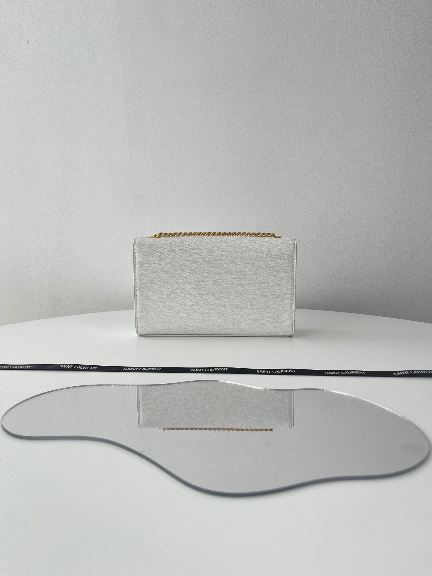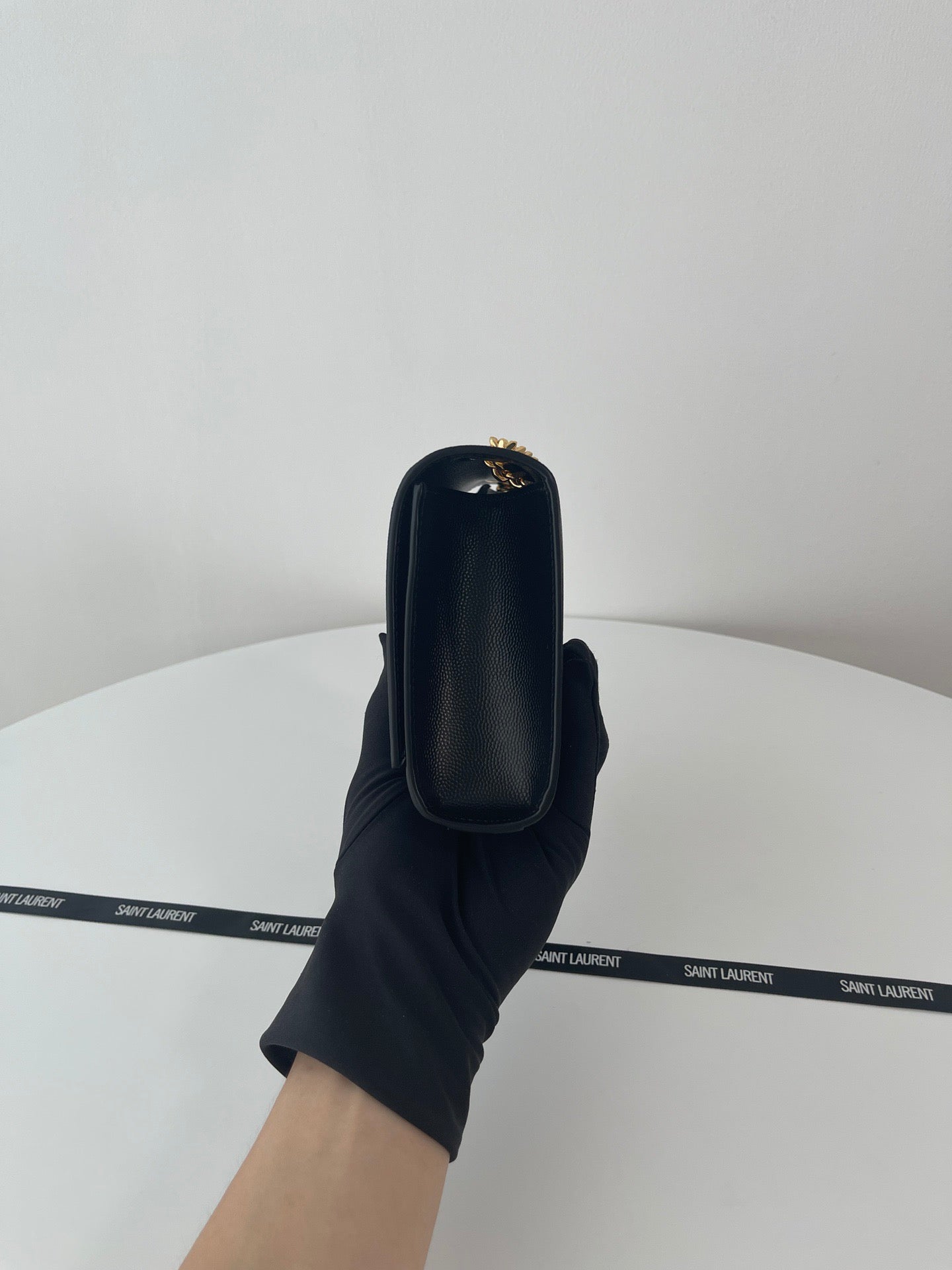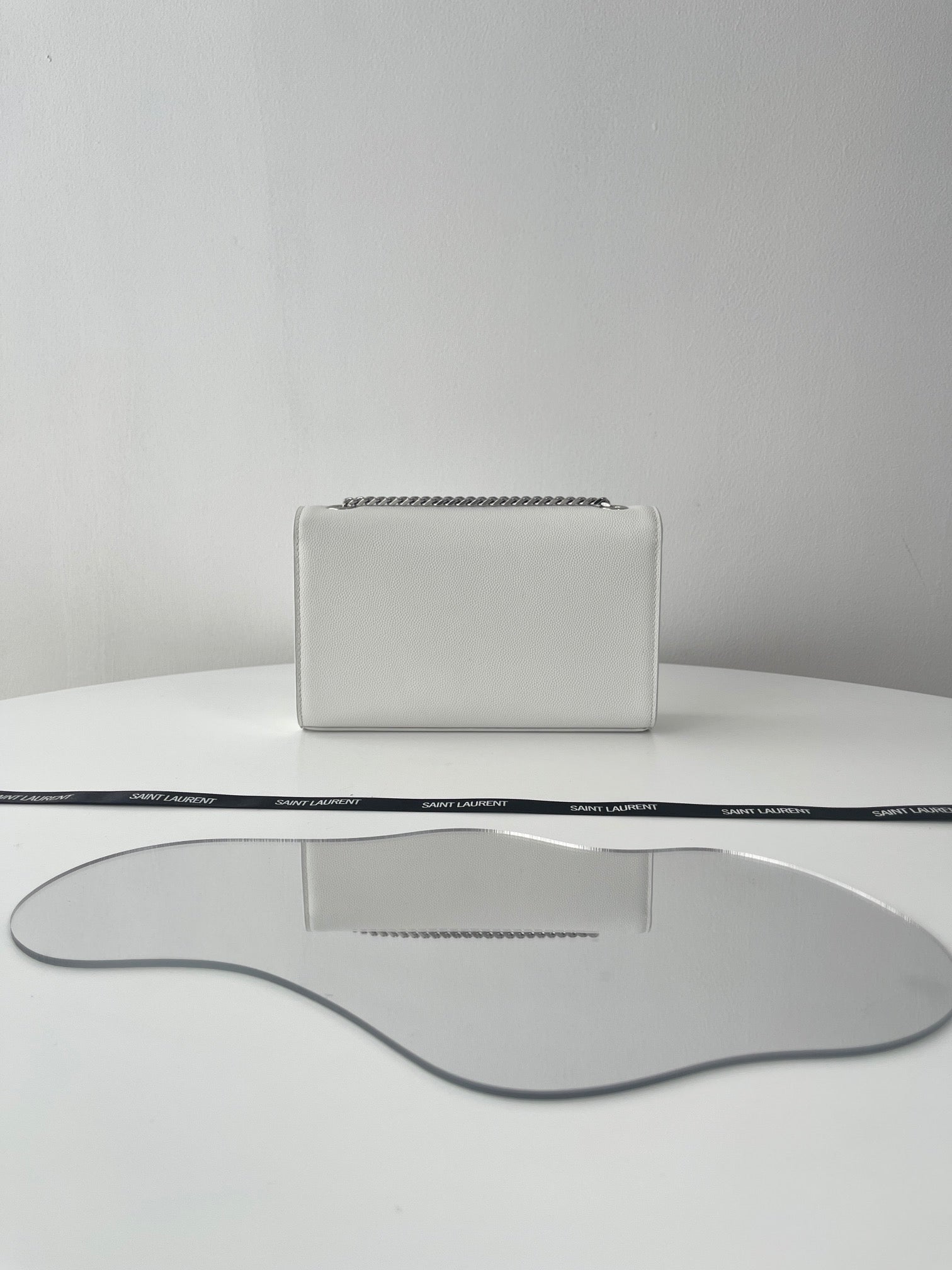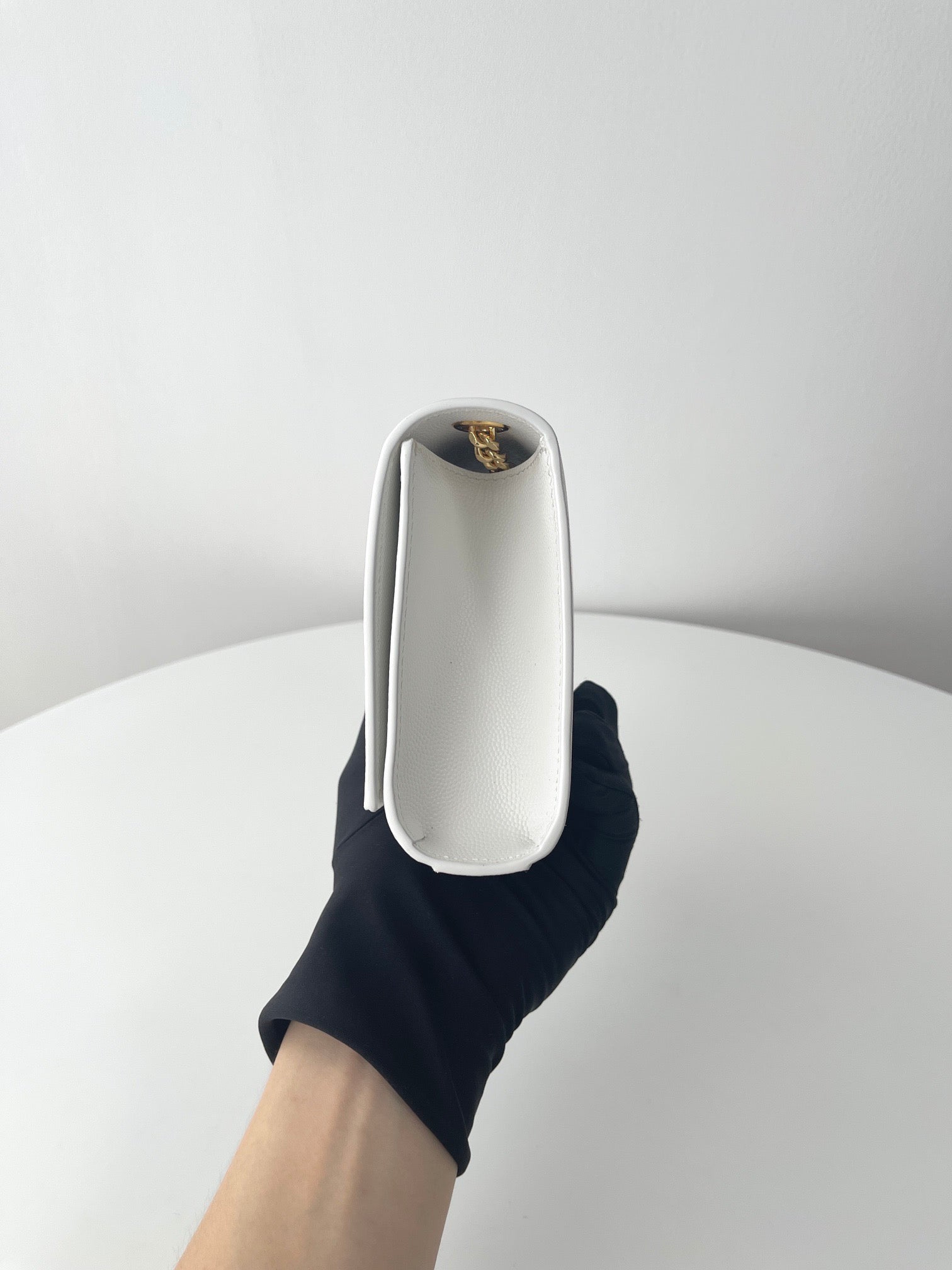 디테일: YSL 메탈 로고, 체인 스트랩, 메탈 테슬 장식, 마그네틱 플랩 클로저
