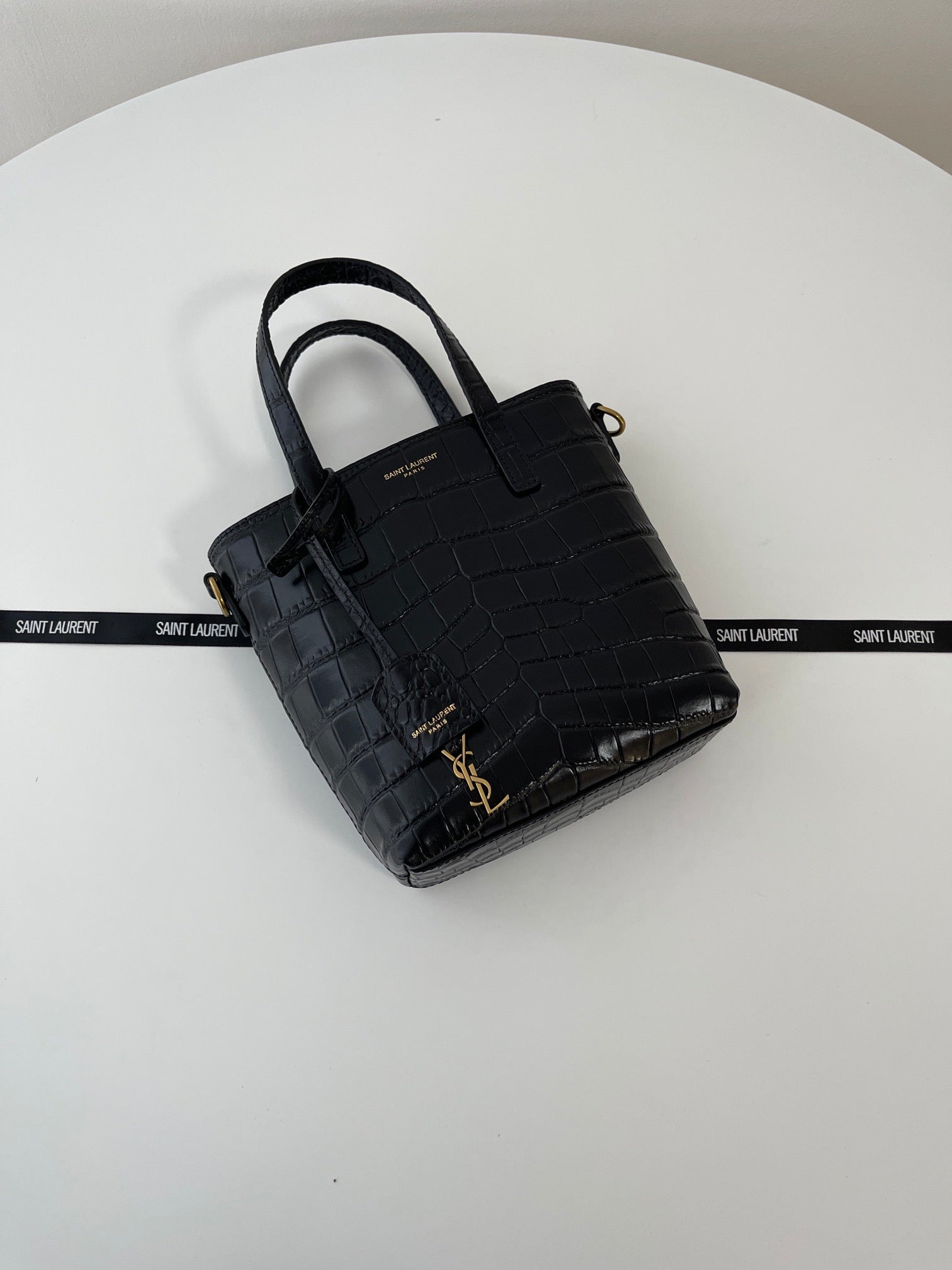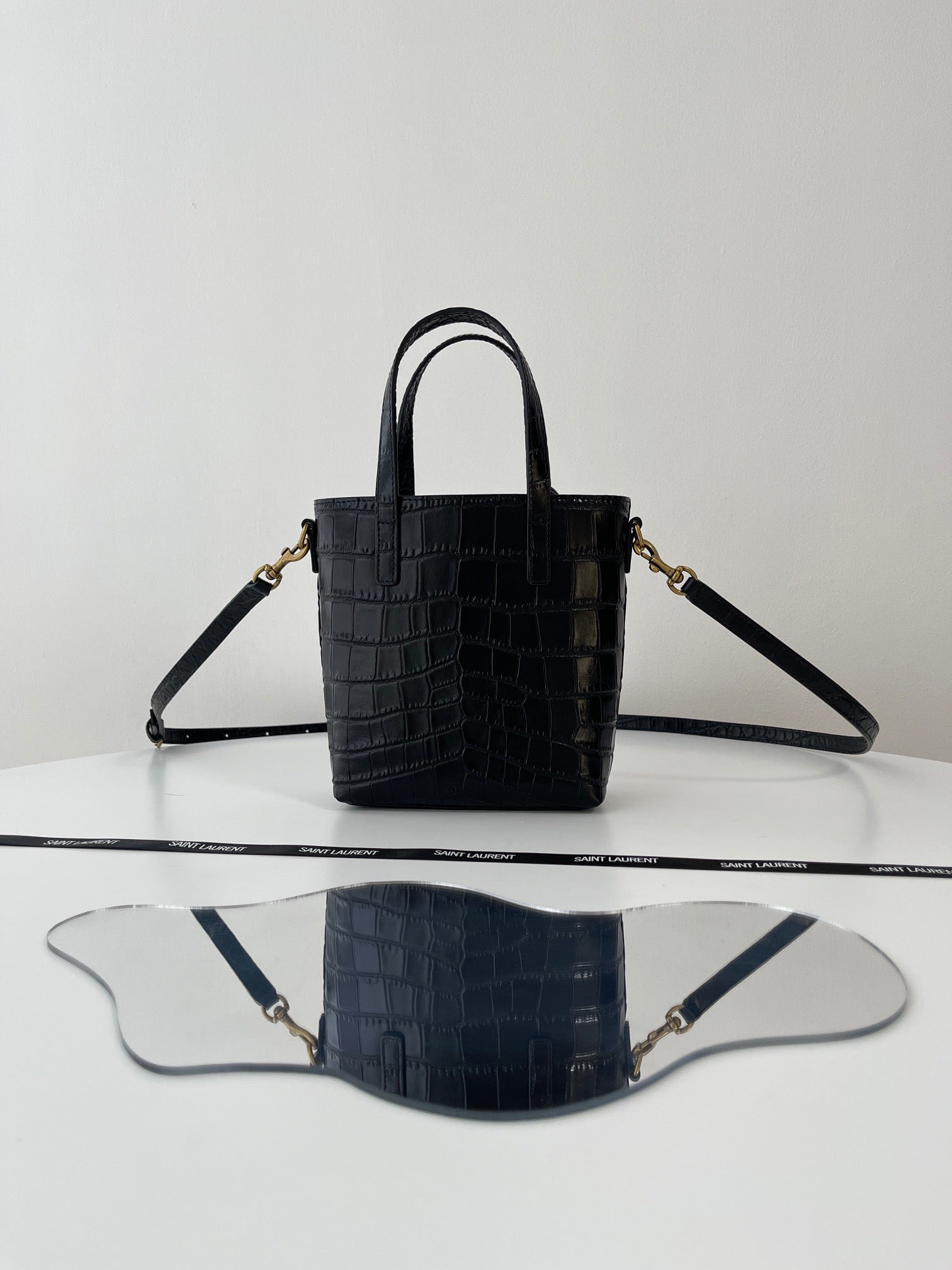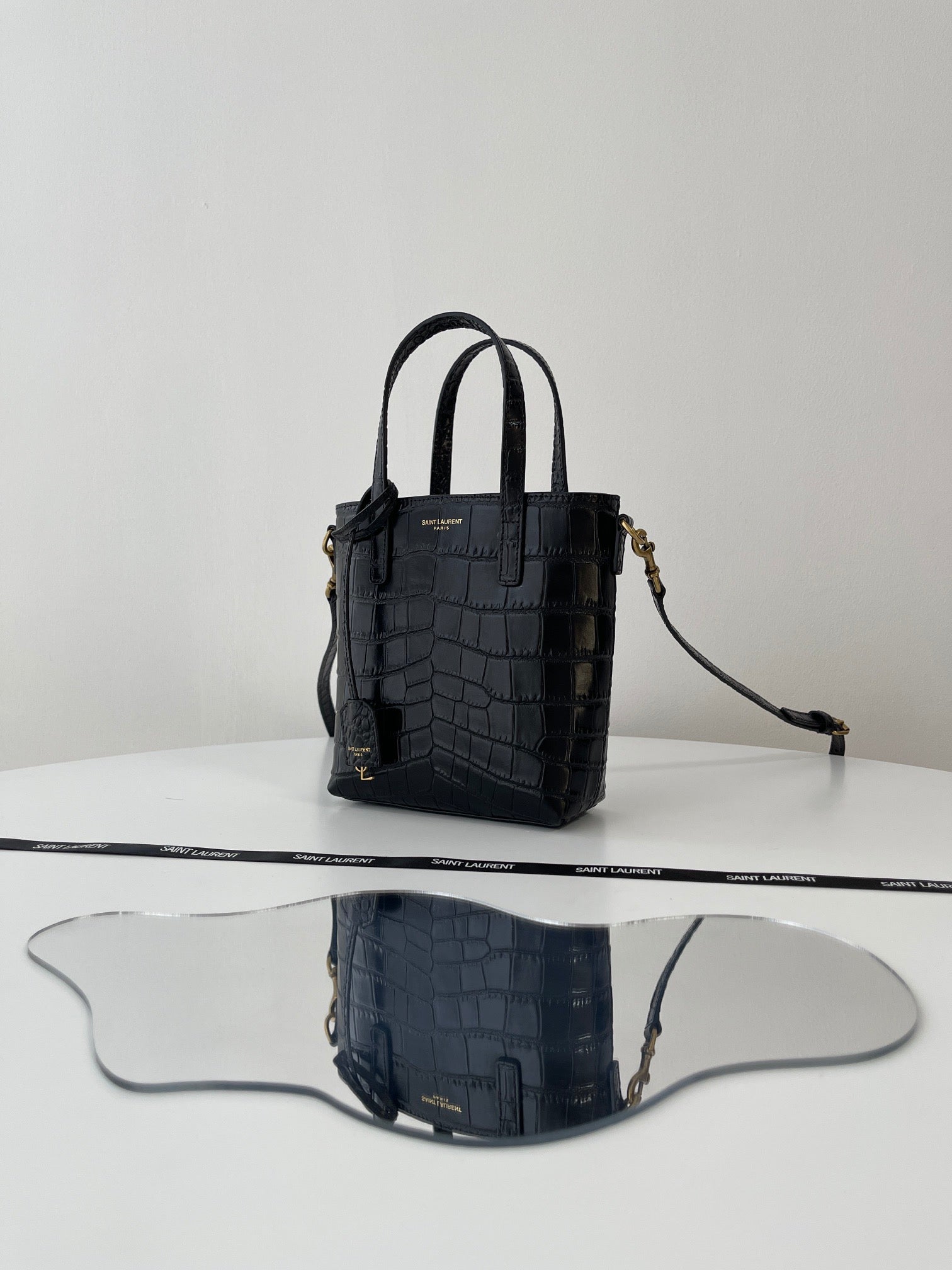 생로랑 토이 쇼퍼 악어 미니 - 엠보싱 텍스처와 구조적 디자인의 조화