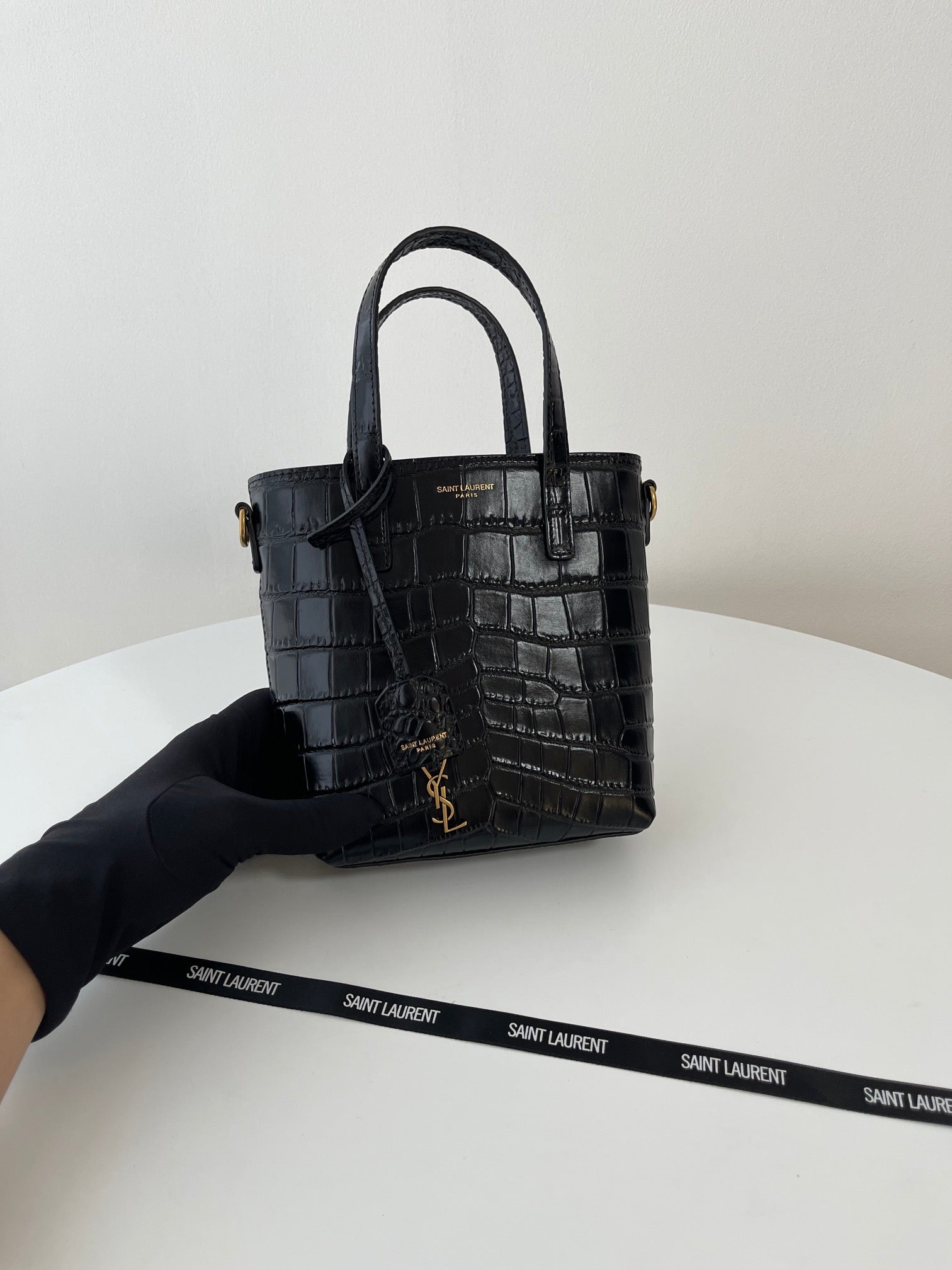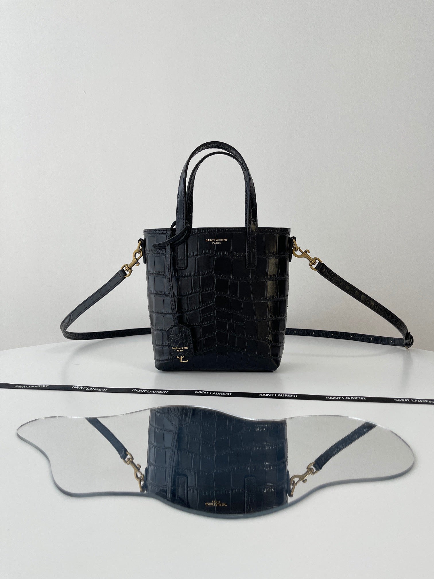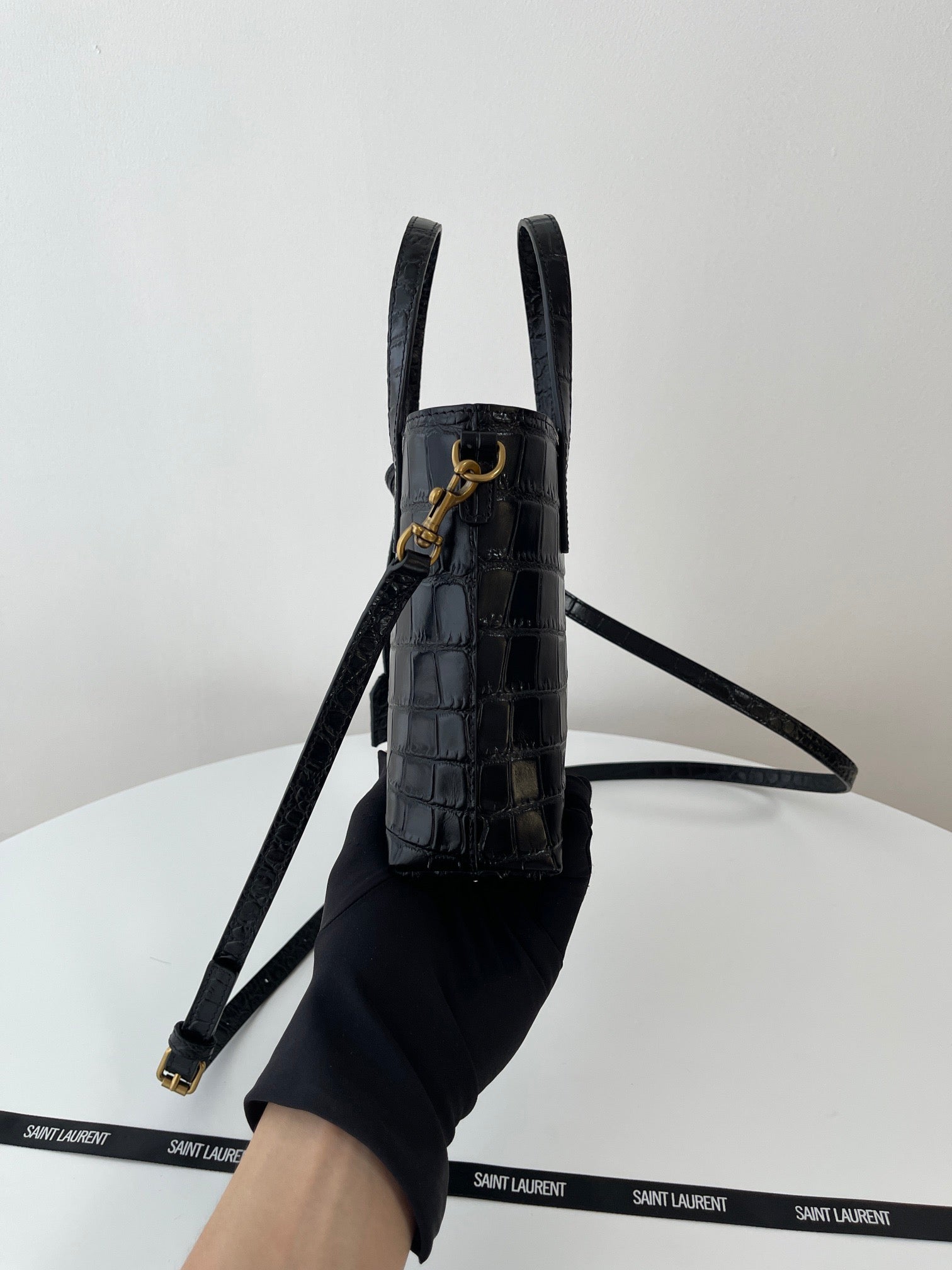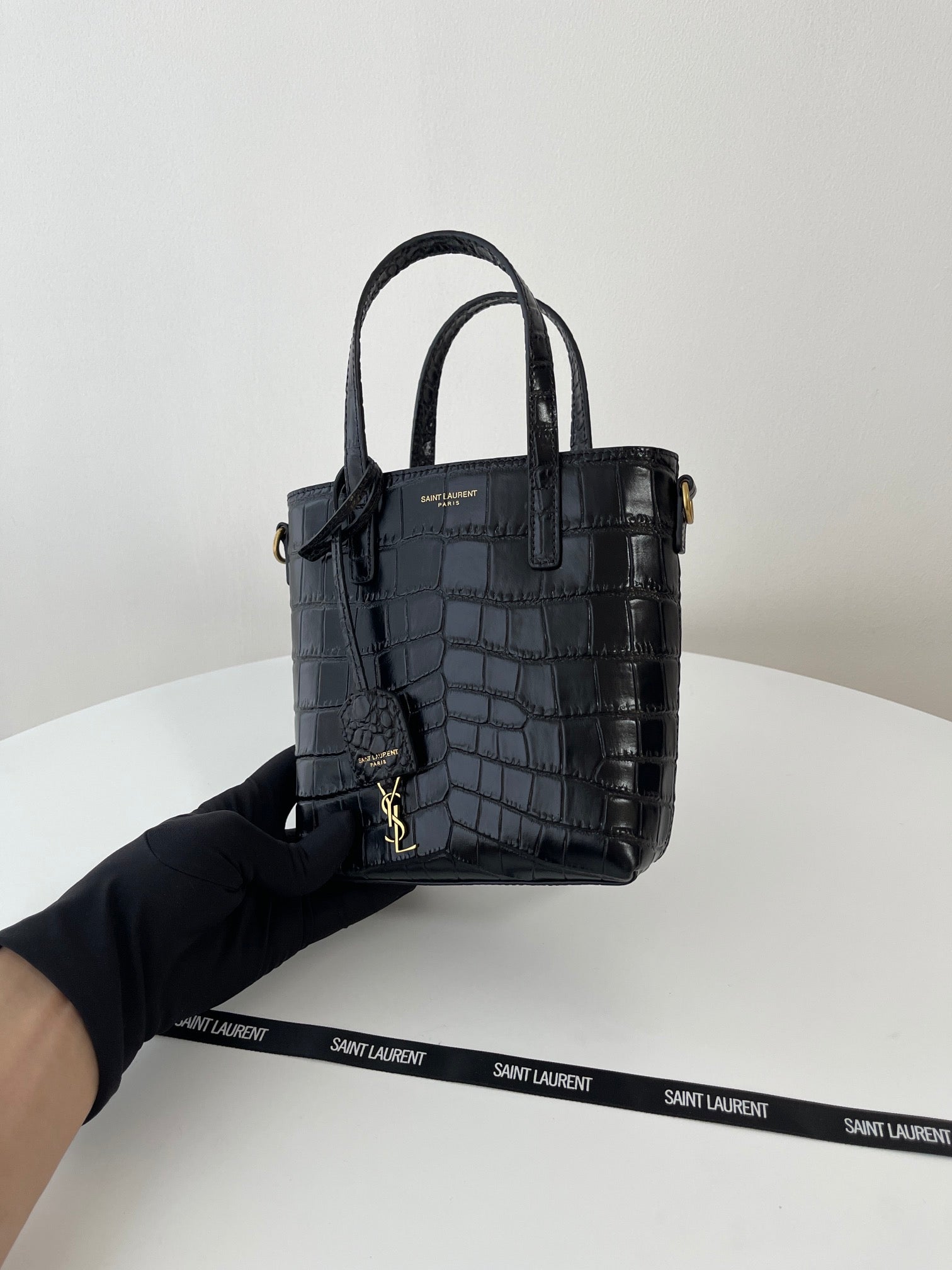 생로랑 토이 쇼퍼 악어 미니 - 엠보싱 텍스처와 구조적 디자인의 조화