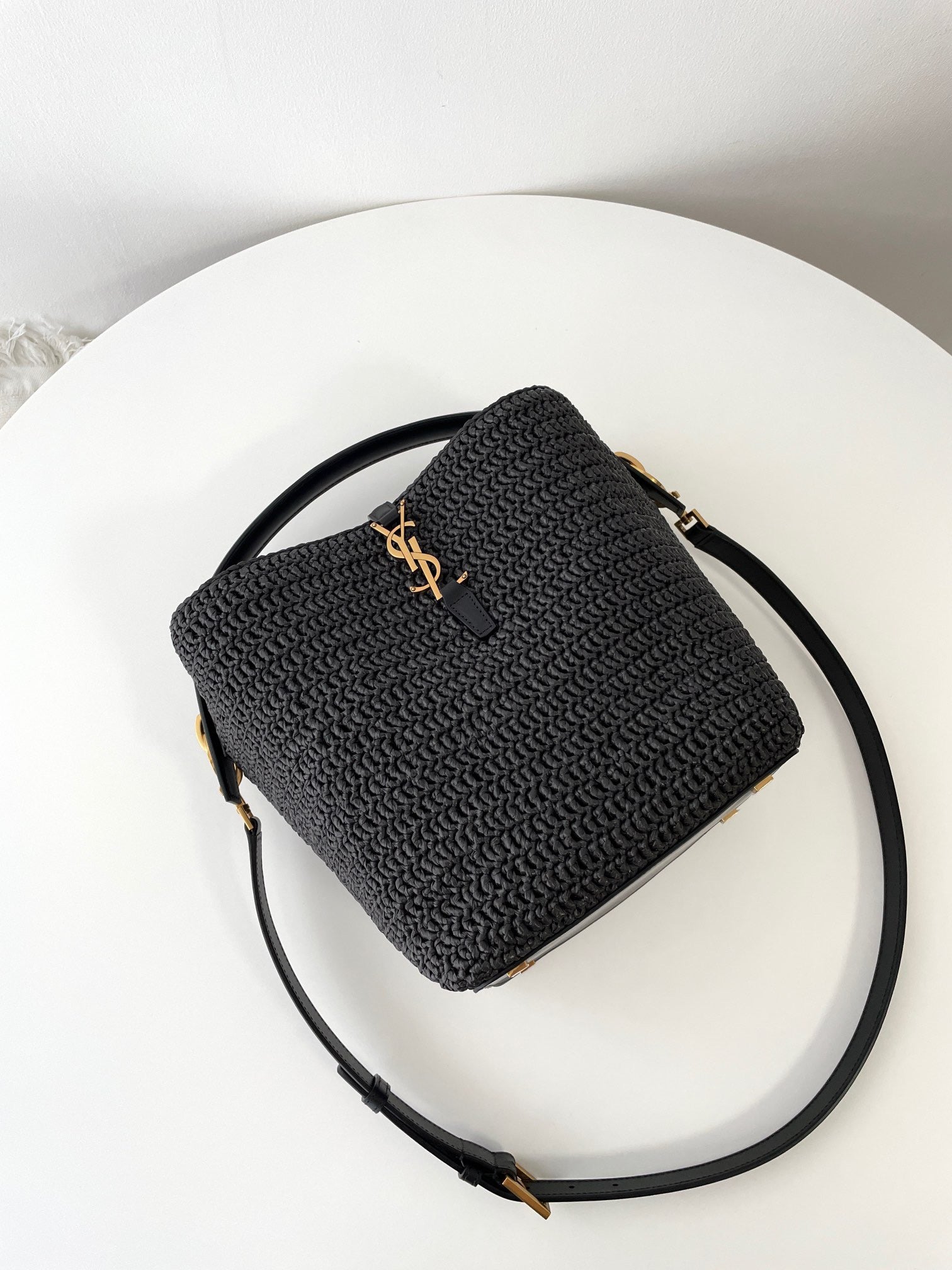 생로랑 LE 37 버킷백 우븐 라피아 스타일링 팁