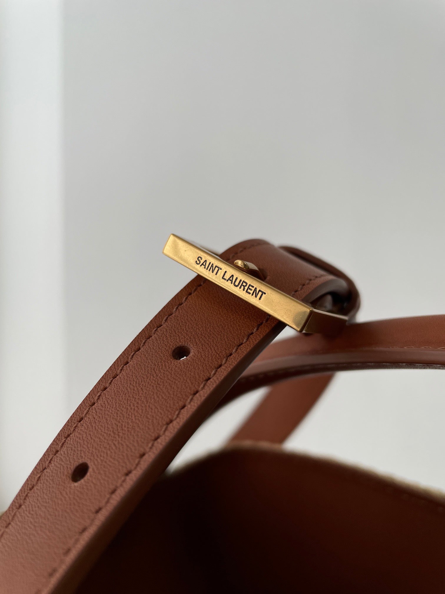 특징: 스트링 클로저, YSL 메탈 로고, 조절 가능한 스트랩, 내부 파우치 포함
