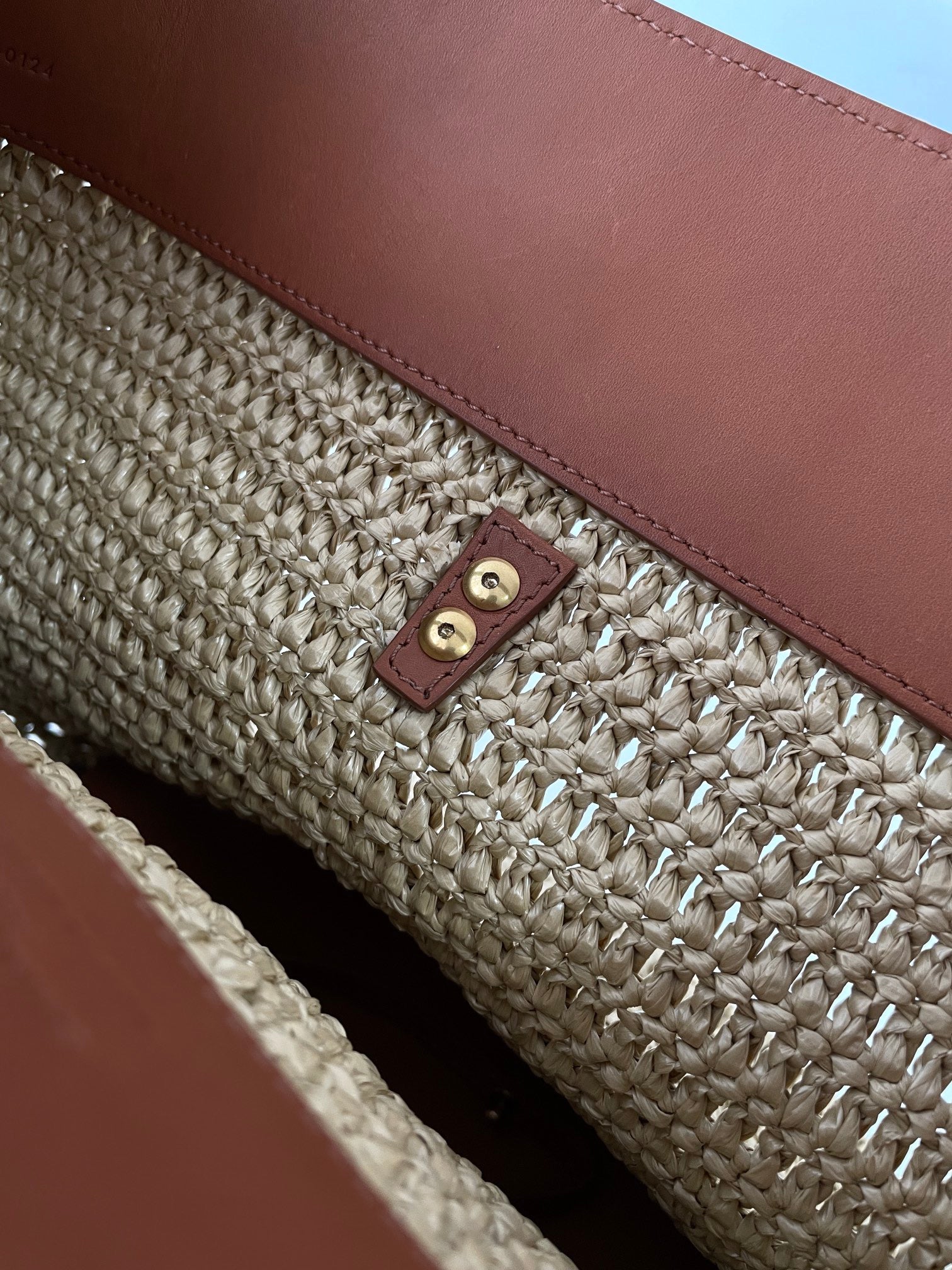 소재: 우븐 라피아 + 가죽 트리밍