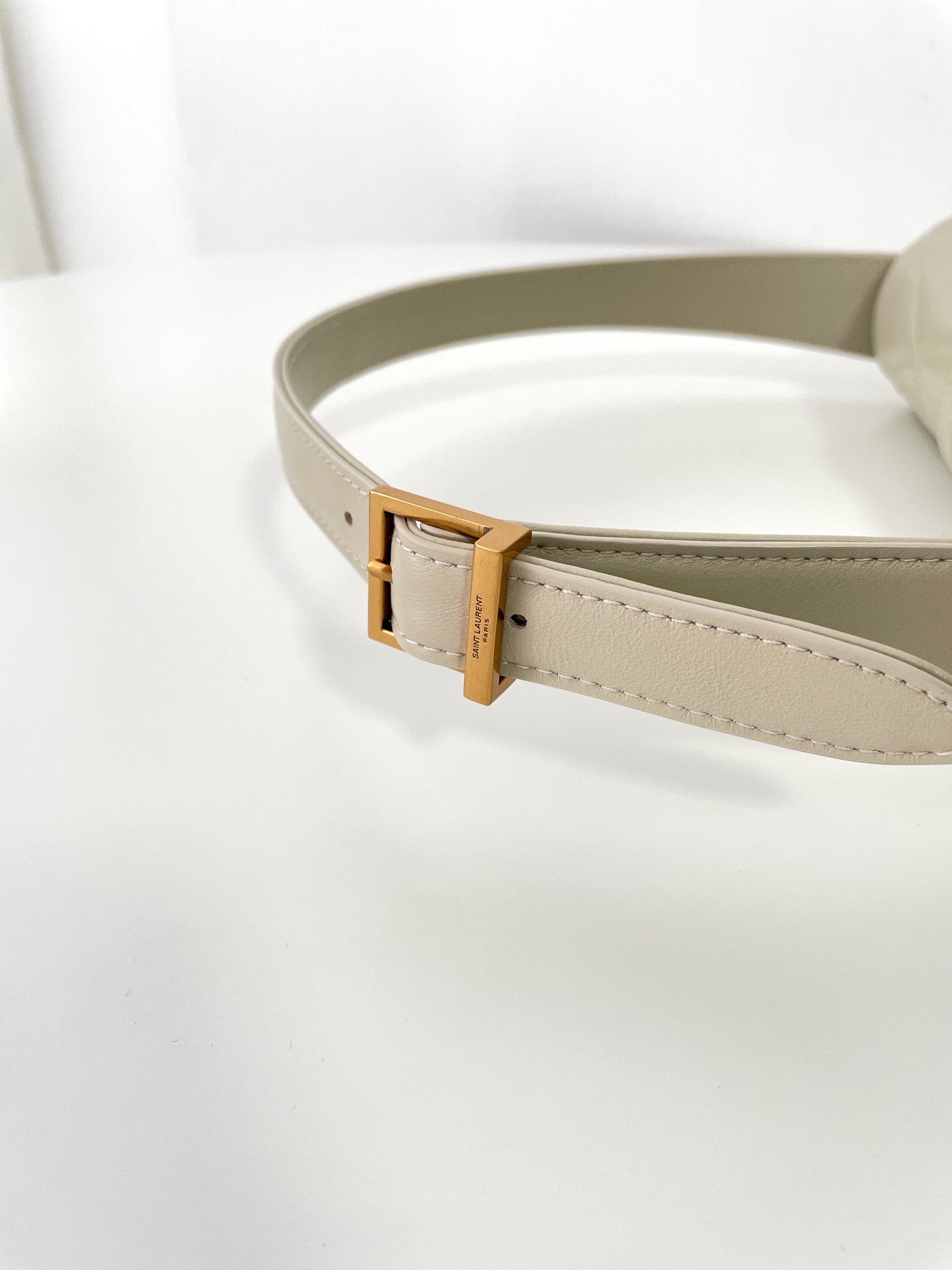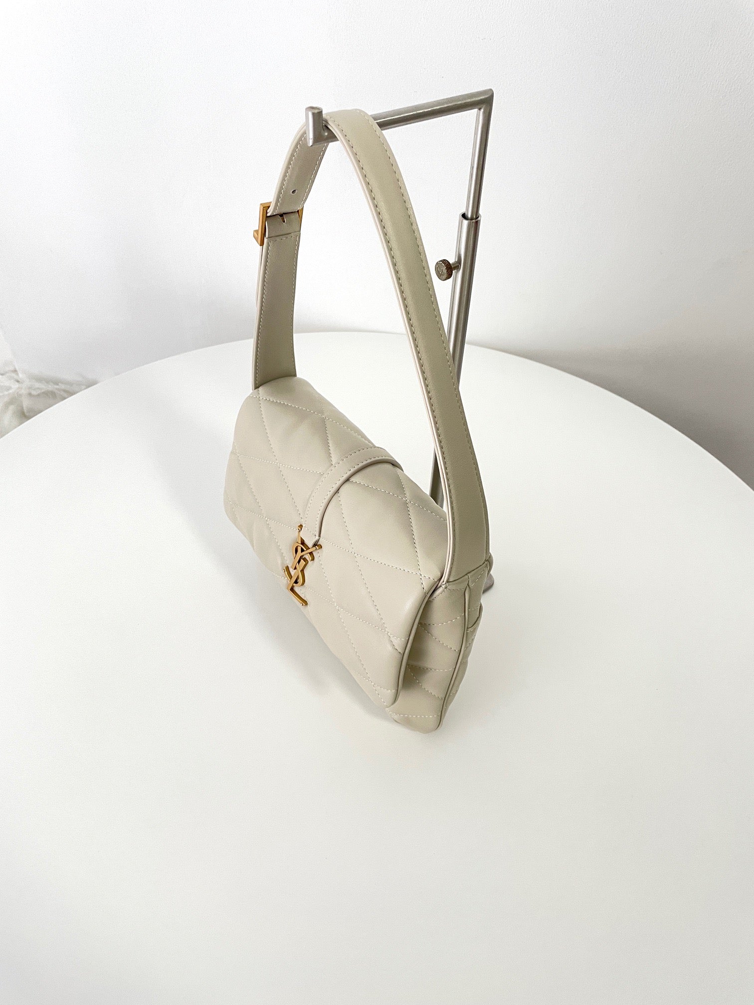수직 퀼팅이 가미된 직사각형 실루엣에 정면 YSL 로고가 고급스럽게 배치되어 있으며, 플랩 클로저 디자인이 깔끔한 인상을 줍니다. 길이 조절 가능한 슬림 숄더 스트랩으로 다양한 스타일링이 가능합니다.