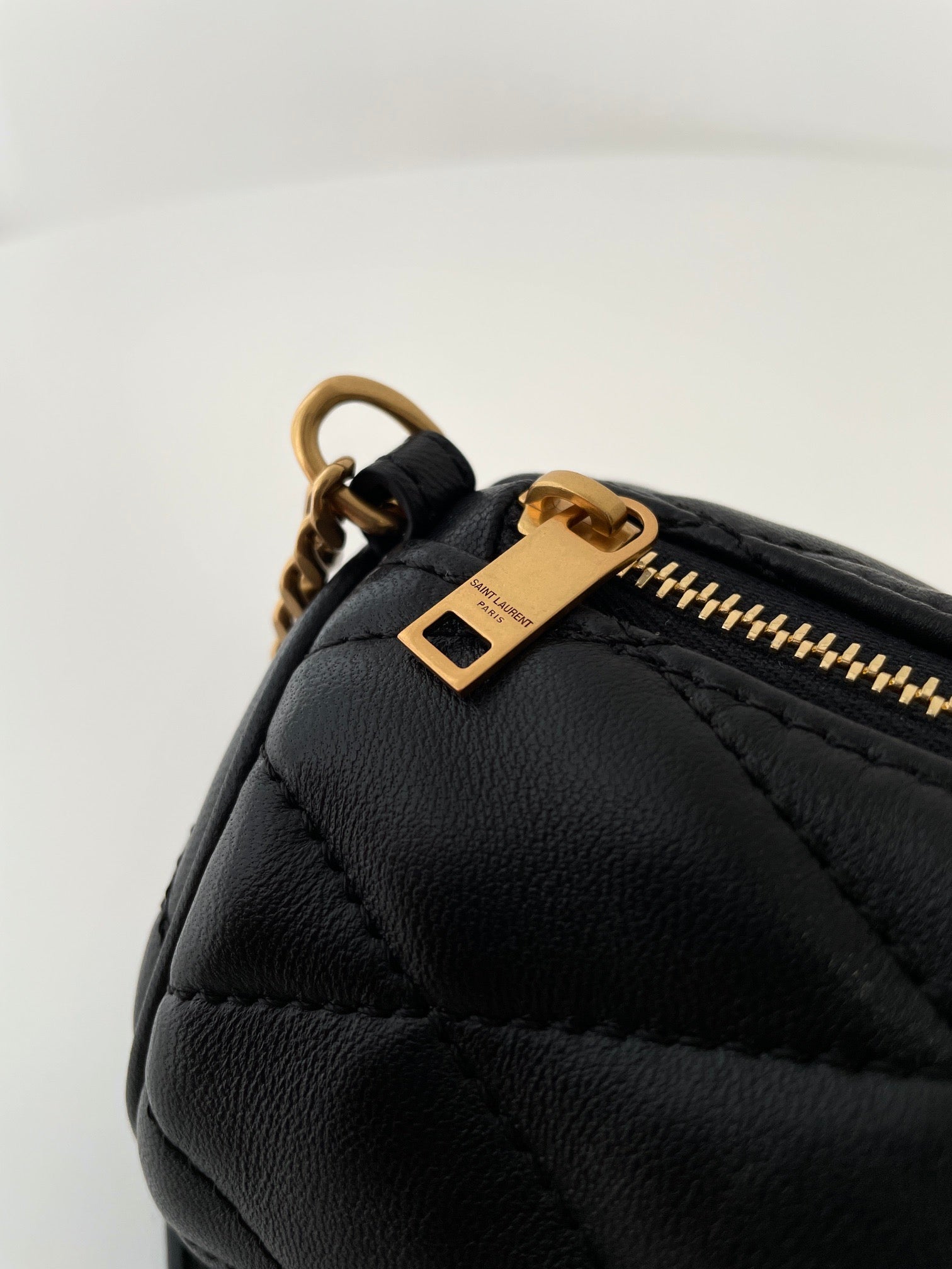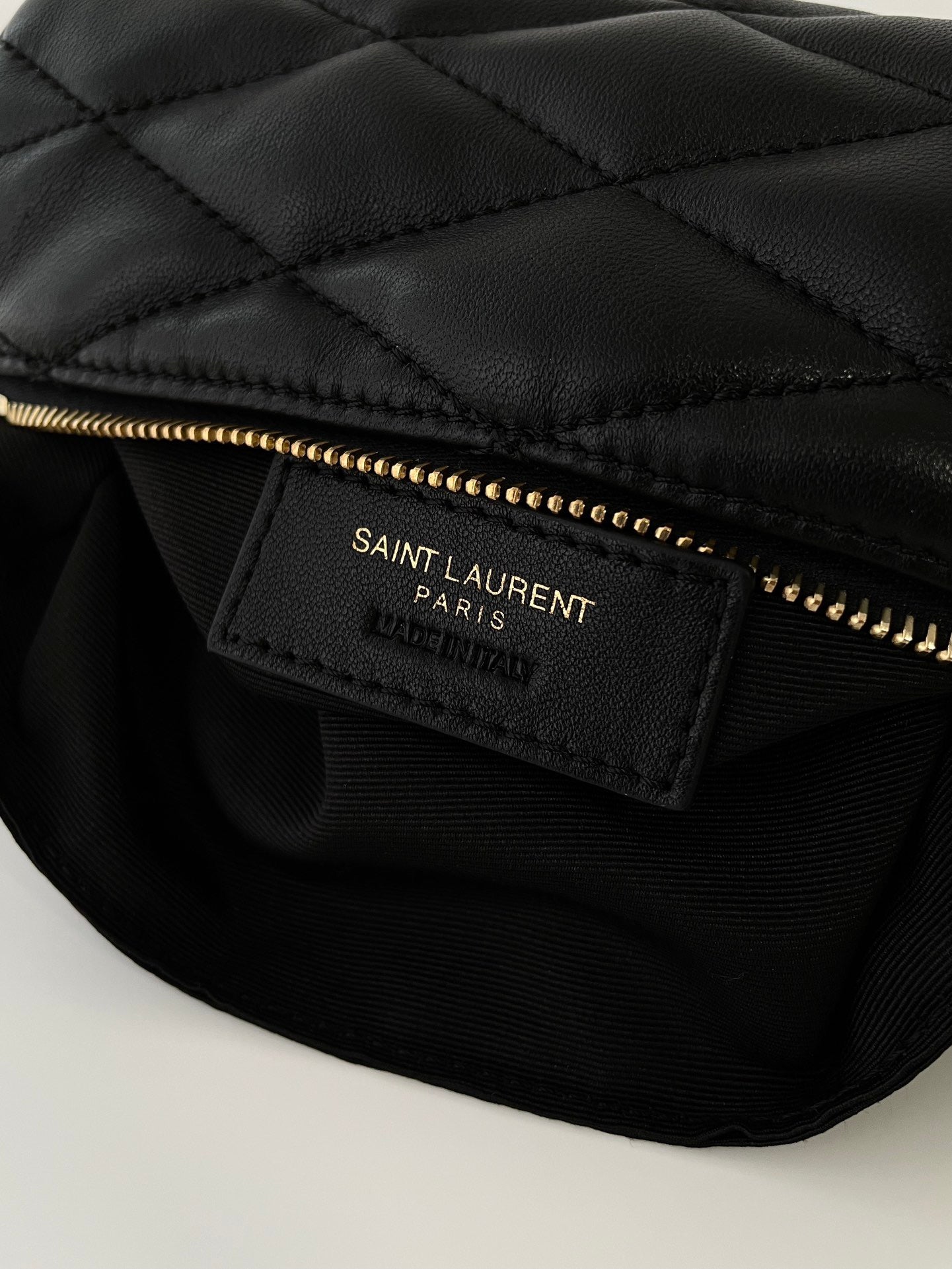 • 특징: 곡선 퀼팅 디테일, YSL 로고, 지퍼 클로저, 카드 포켓, 조절형 스트랩