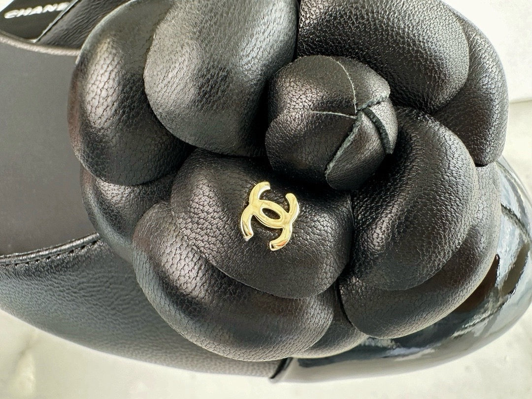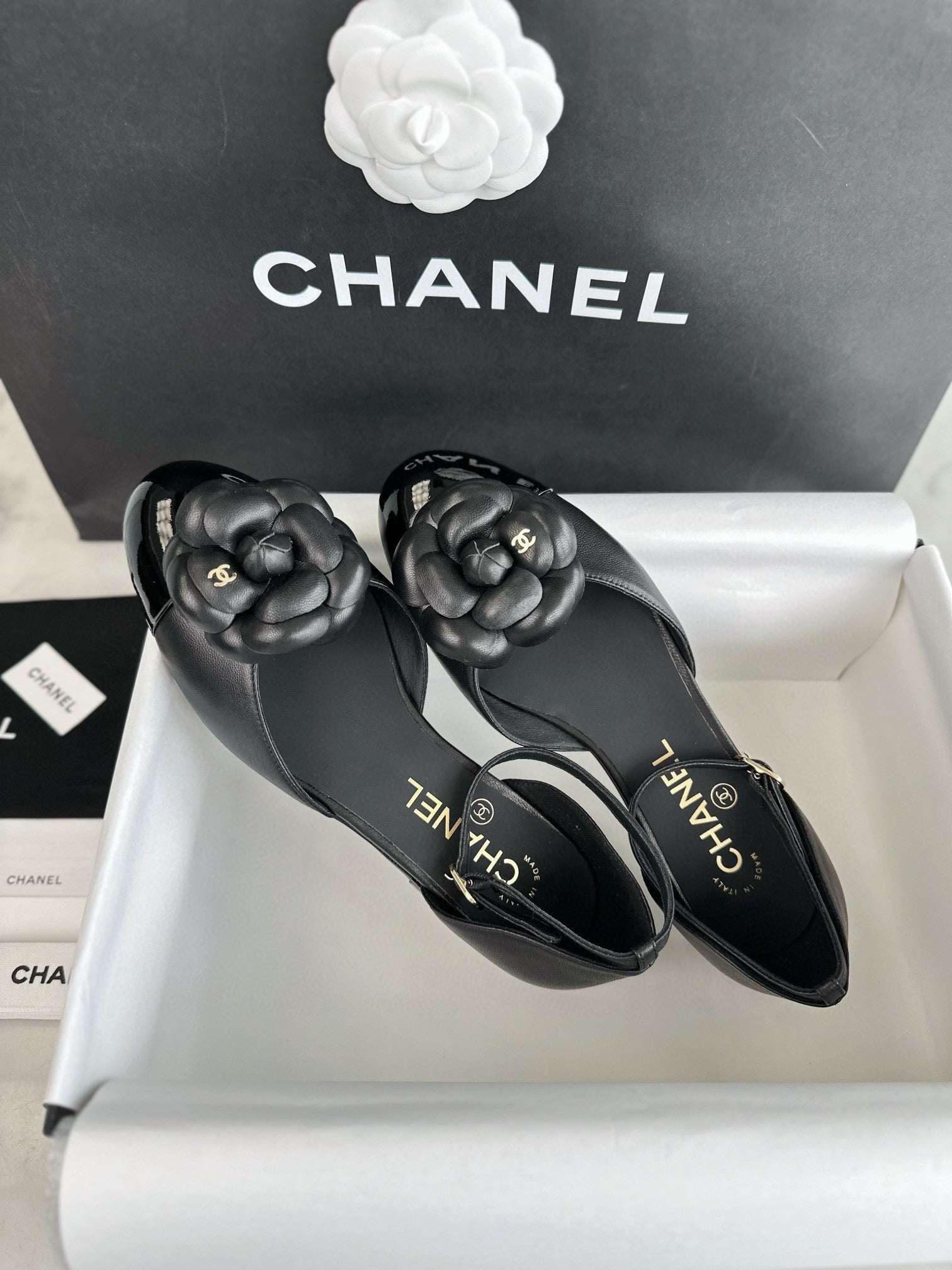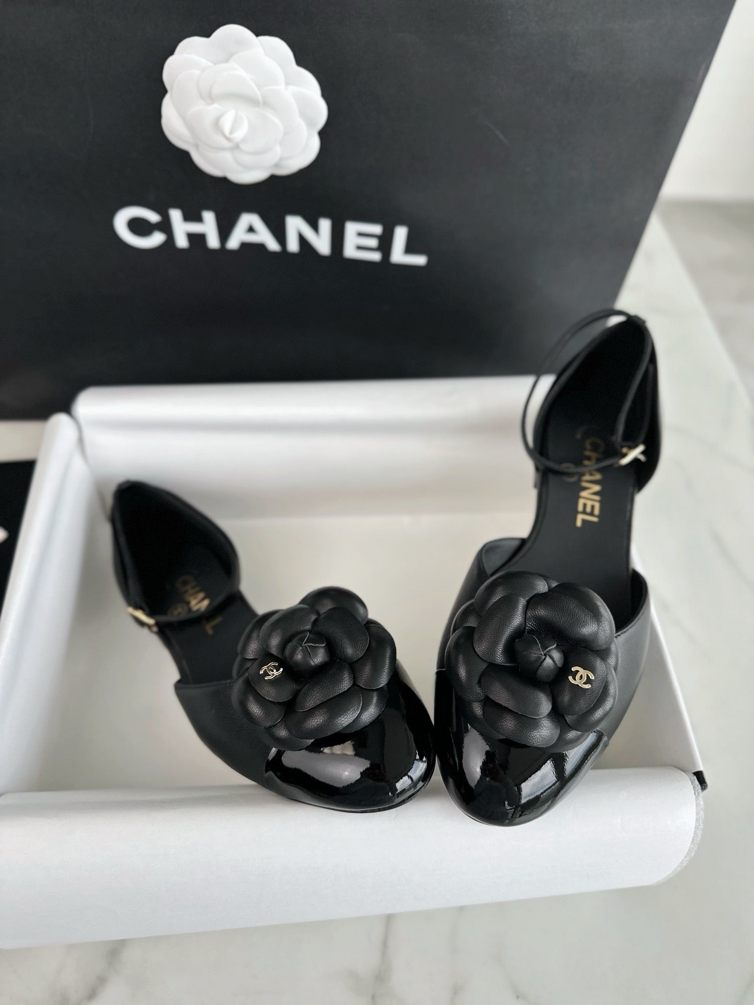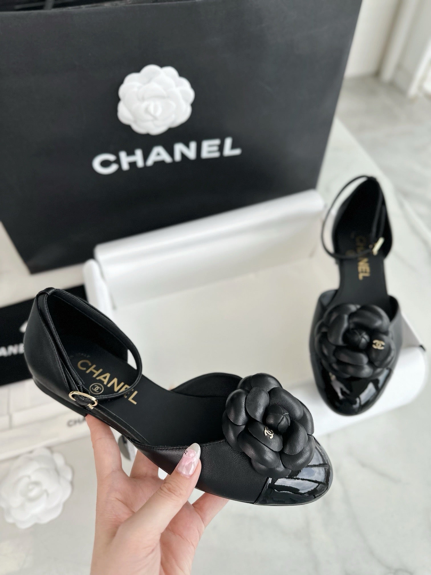 이 제품은 발등을 감싸는 스트랩 디자인과 함께, 슈즈 앞코나 측면에 까멜리아 장식이 더해져 페미닌한 매력을 강조합니다. 샤넬 특유의 감성적인 디테일이 돋보이며, 착화 시 고급스러운 분위기를 자아냅니다. 플랫한 굽과 둥근 앞코는 편안함과 단아함을 동시에 제공합니다.