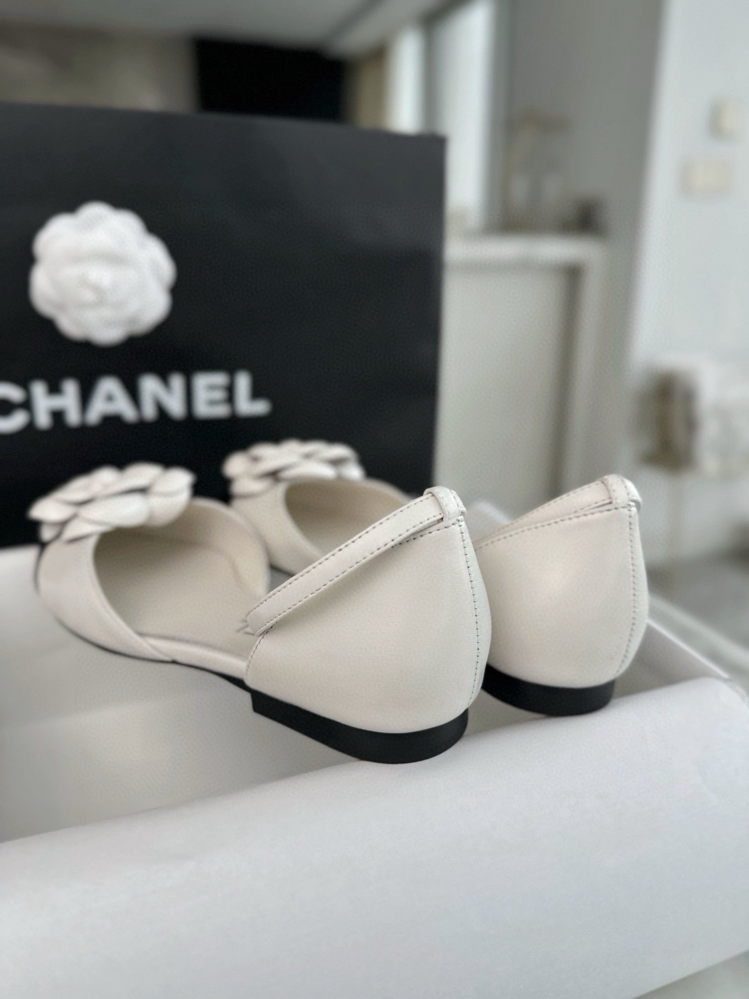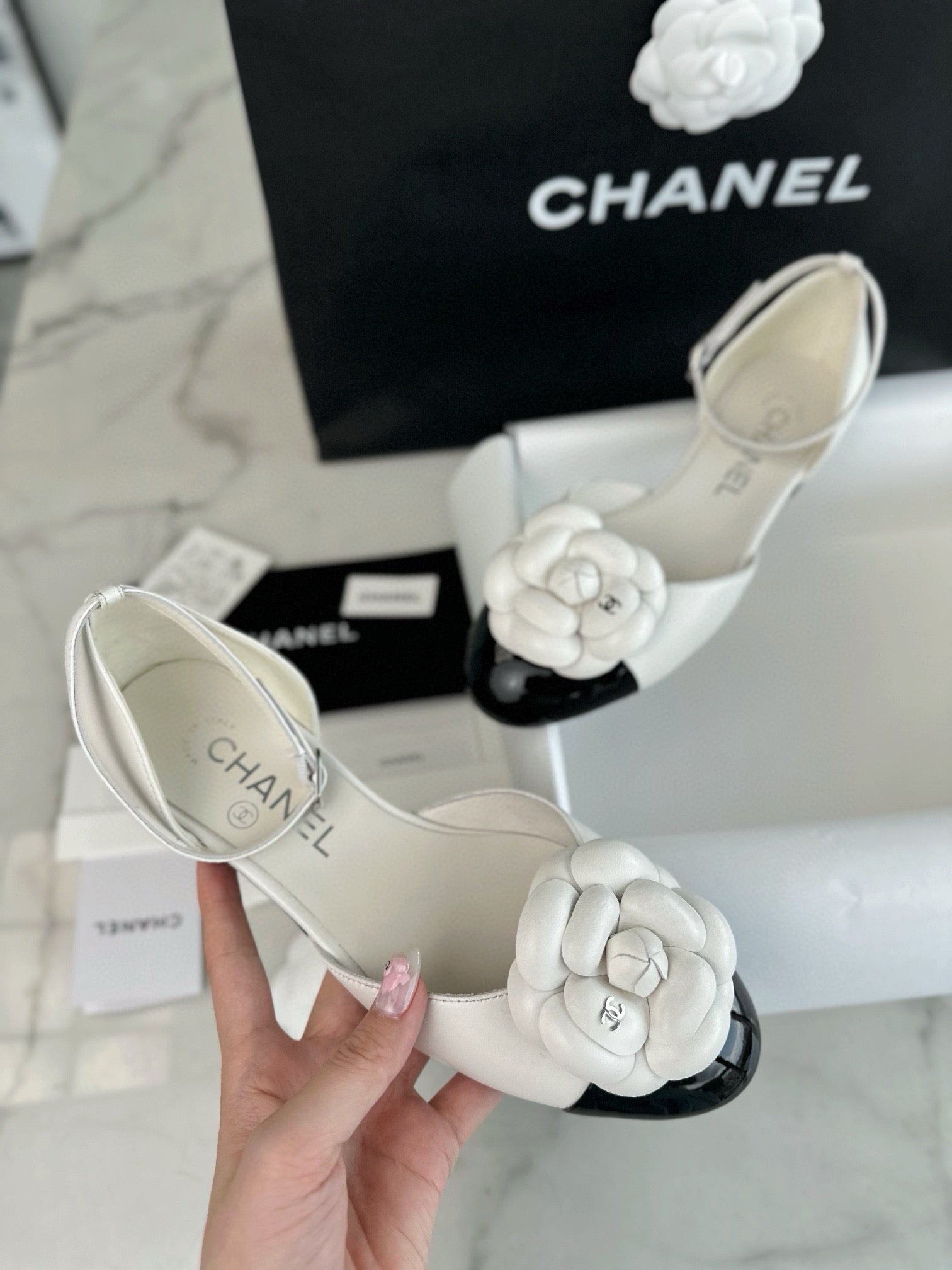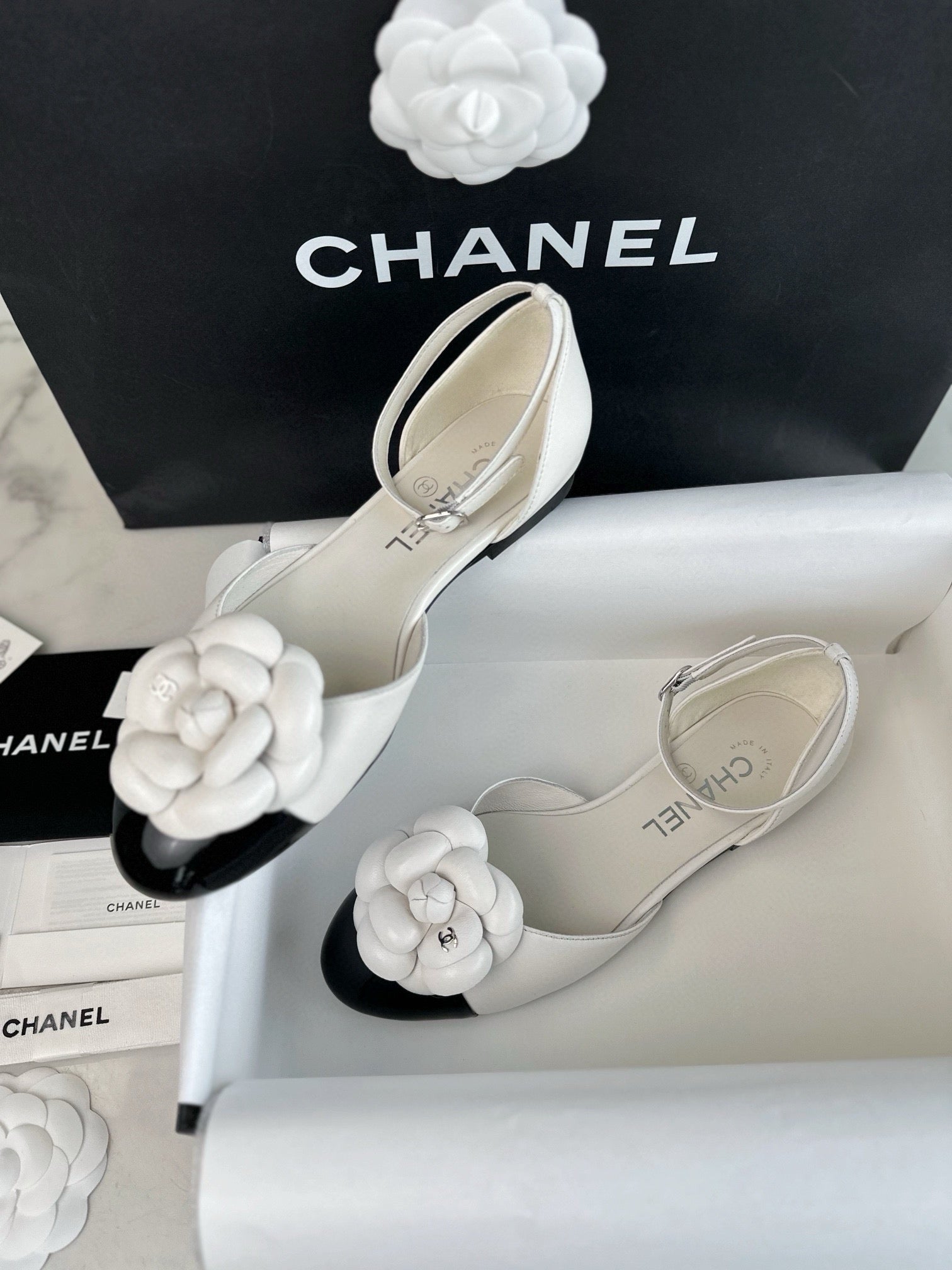 이 제품은 발등을 감싸는 스트랩 디자인과 함께, 슈즈 앞코나 측면에 까멜리아 장식이 더해져 페미닌한 매력을 강조합니다. 샤넬 특유의 감성적인 디테일이 돋보이며, 착화 시 고급스러운 분위기를 자아냅니다. 플랫한 굽과 둥근 앞코는 편안함과 단아함을 동시에 제공합니다.