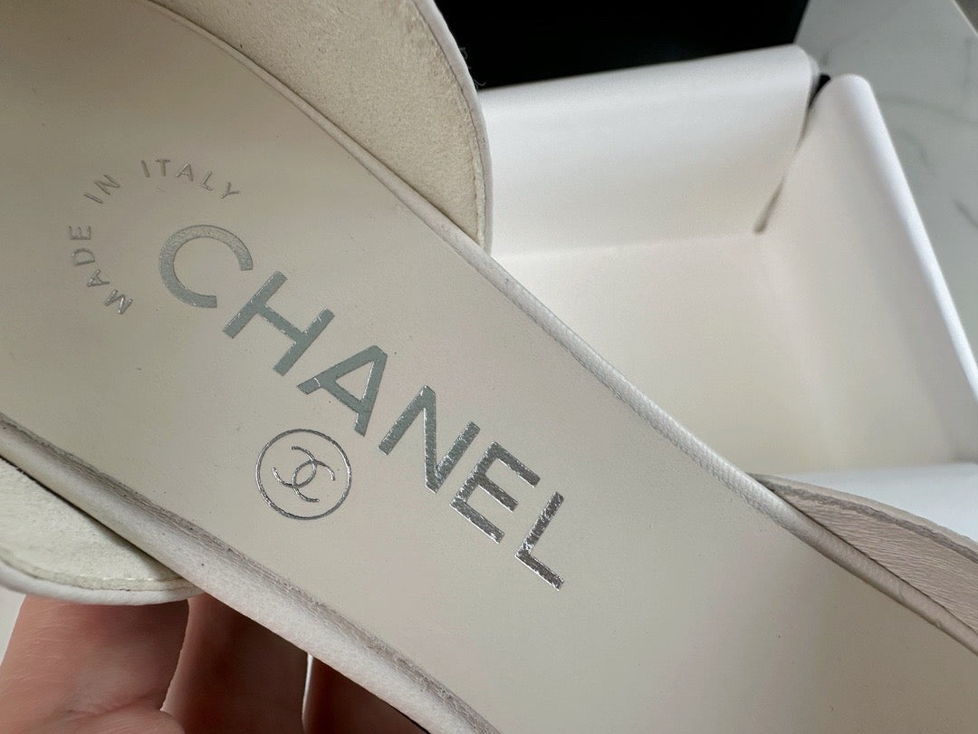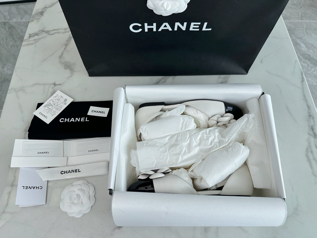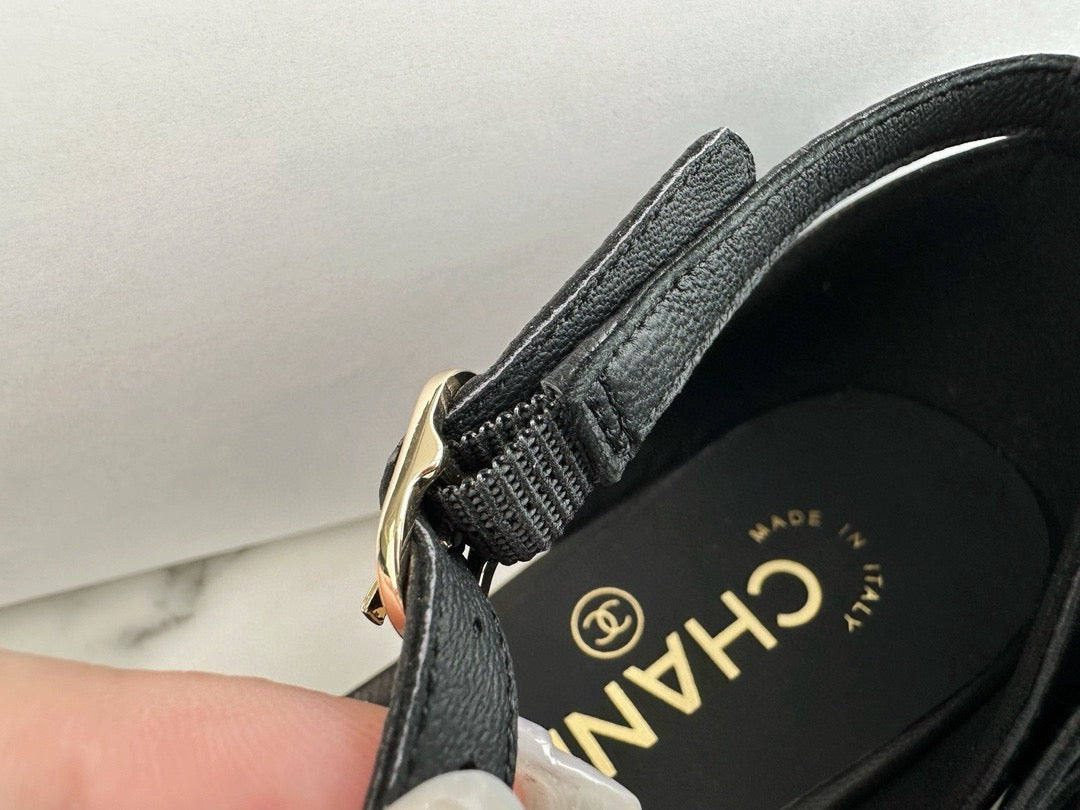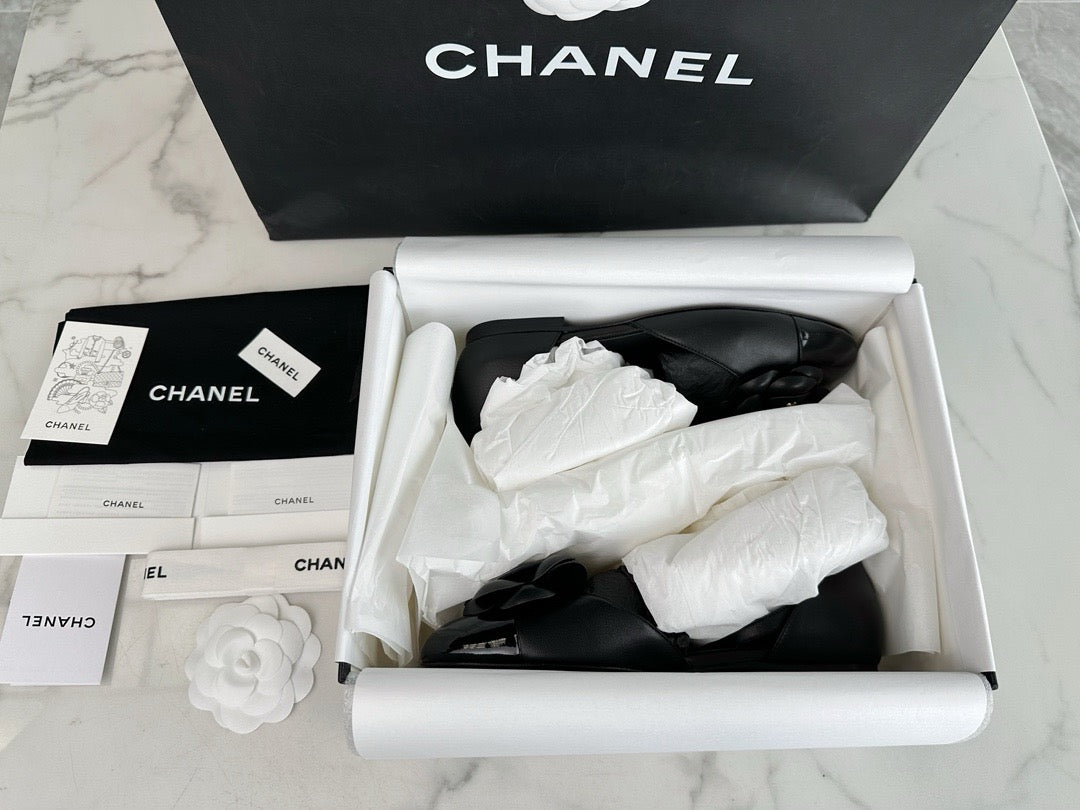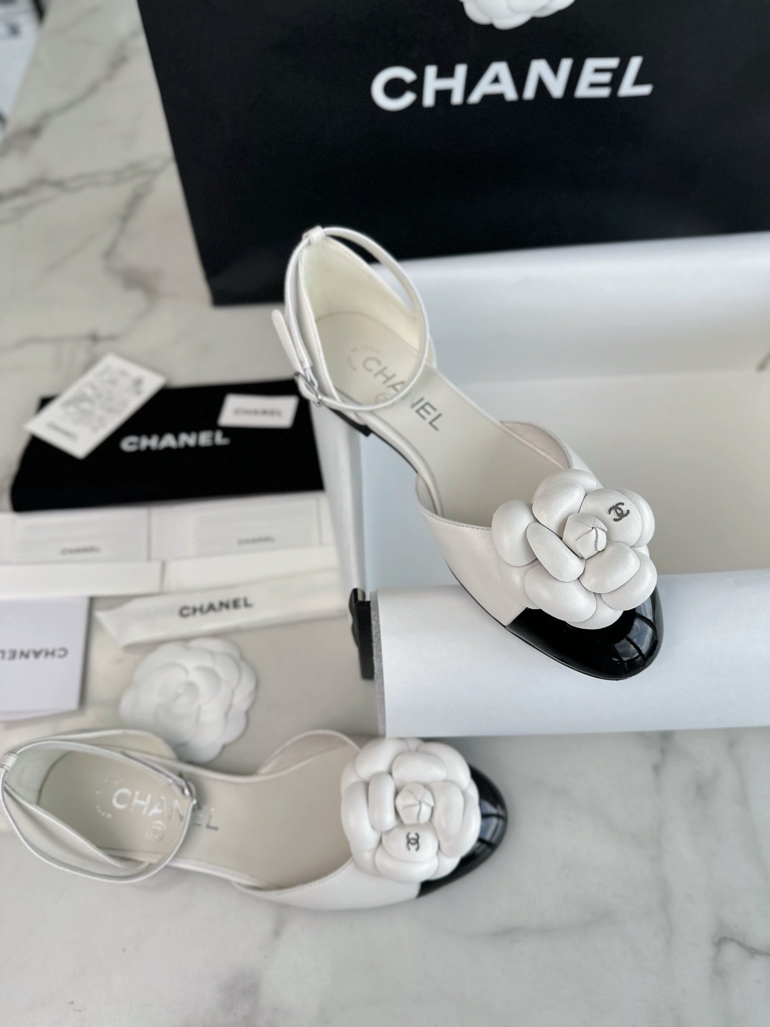 이 제품은 발등을 감싸는 스트랩 디자인과 함께, 슈즈 앞코나 측면에 까멜리아 장식이 더해져 페미닌한 매력을 강조합니다. 샤넬 특유의 감성적인 디테일이 돋보이며, 착화 시 고급스러운 분위기를 자아냅니다. 플랫한 굽과 둥근 앞코는 편안함과 단아함을 동시에 제공합니다.