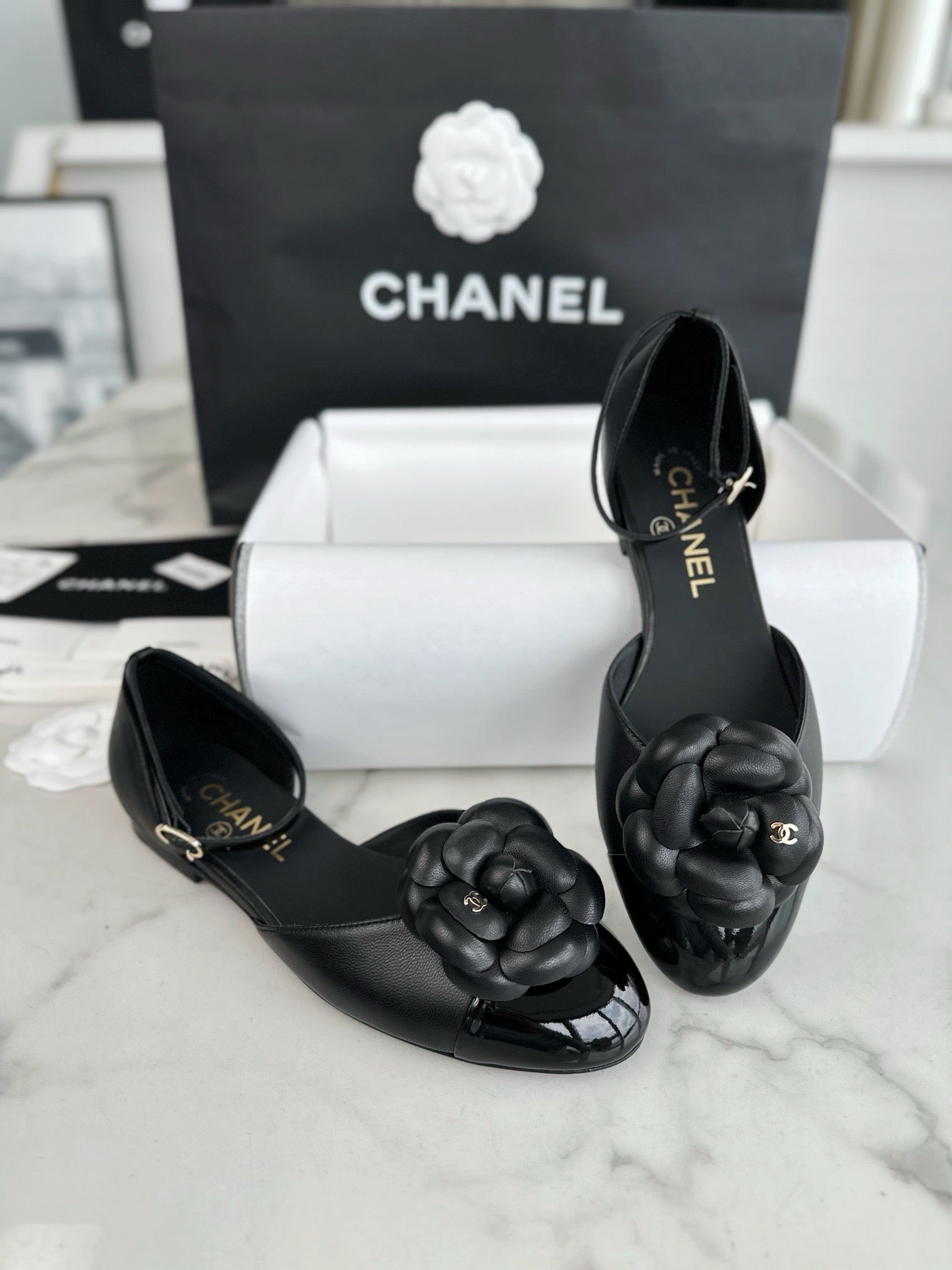 샤넬 까멜리아 메리제인 플랫(Chanel Camellia Mary Jane Flat)은 샤넬의 시그니처 플라워인 까멜리아와 클래식한 메리제인 디자인이 조화롭게 어우러진 플랫 슈즈입니다. 단정하면서도 로맨틱한 분위기를 연출할 수 있는 이 슈즈는 특별한 날은 물론, 일상 속에서도 우아한 스타일을 완성시켜줍니다.