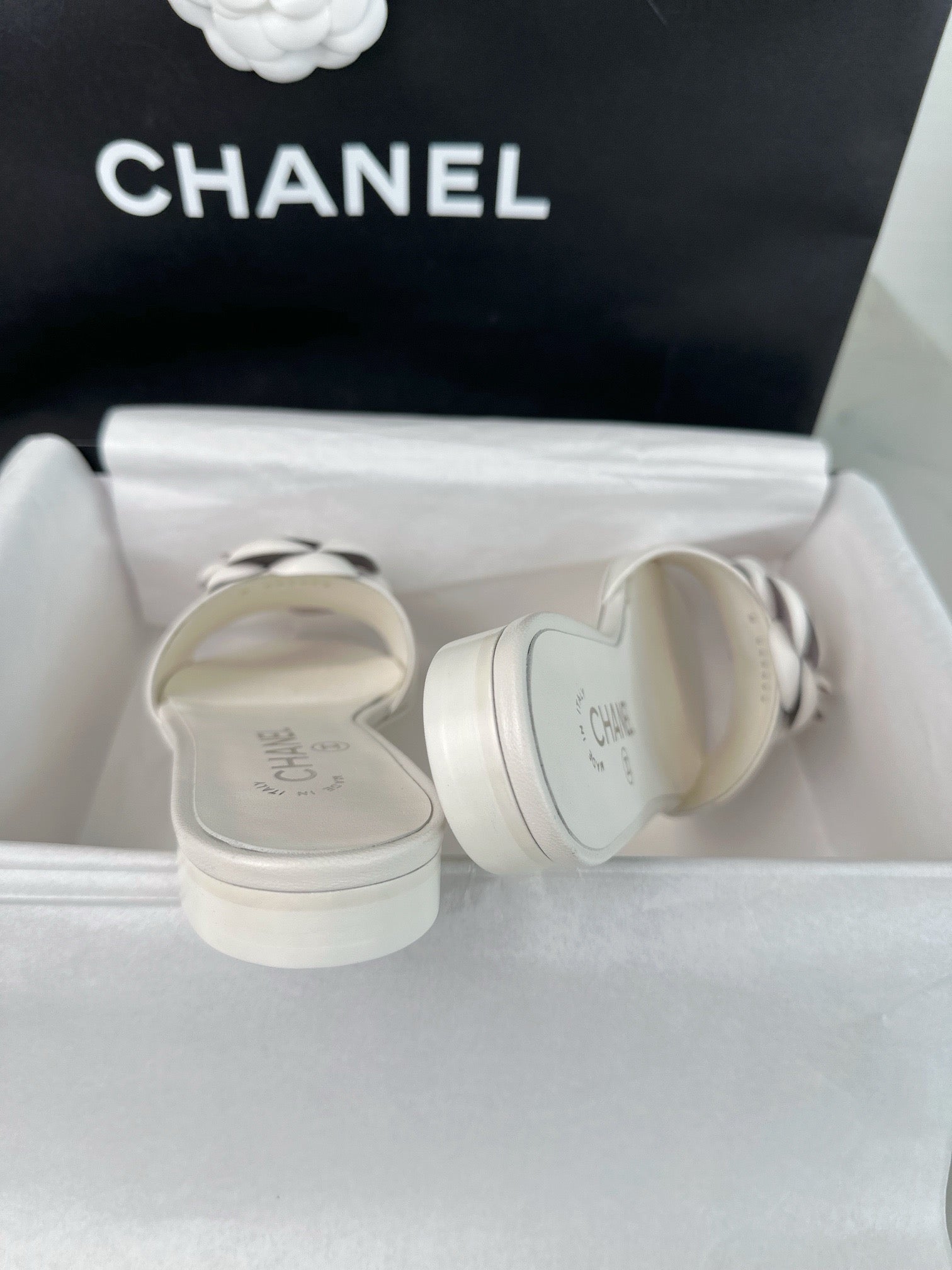 뒷굽이 없는 디자인 덕분에 신고 벗기 쉬우며, 도시적인 감성과 여성미를 동시에 표현할 수 있는 아이템입니다. 샤넬 로고가 함께 포함된 금속 또는 자수 디테일이 더해져 브랜드의 아이덴티티를 강조합니다. 가볍고 유연한 착화감으로 실내외 모두에서 활용 가능합니다.