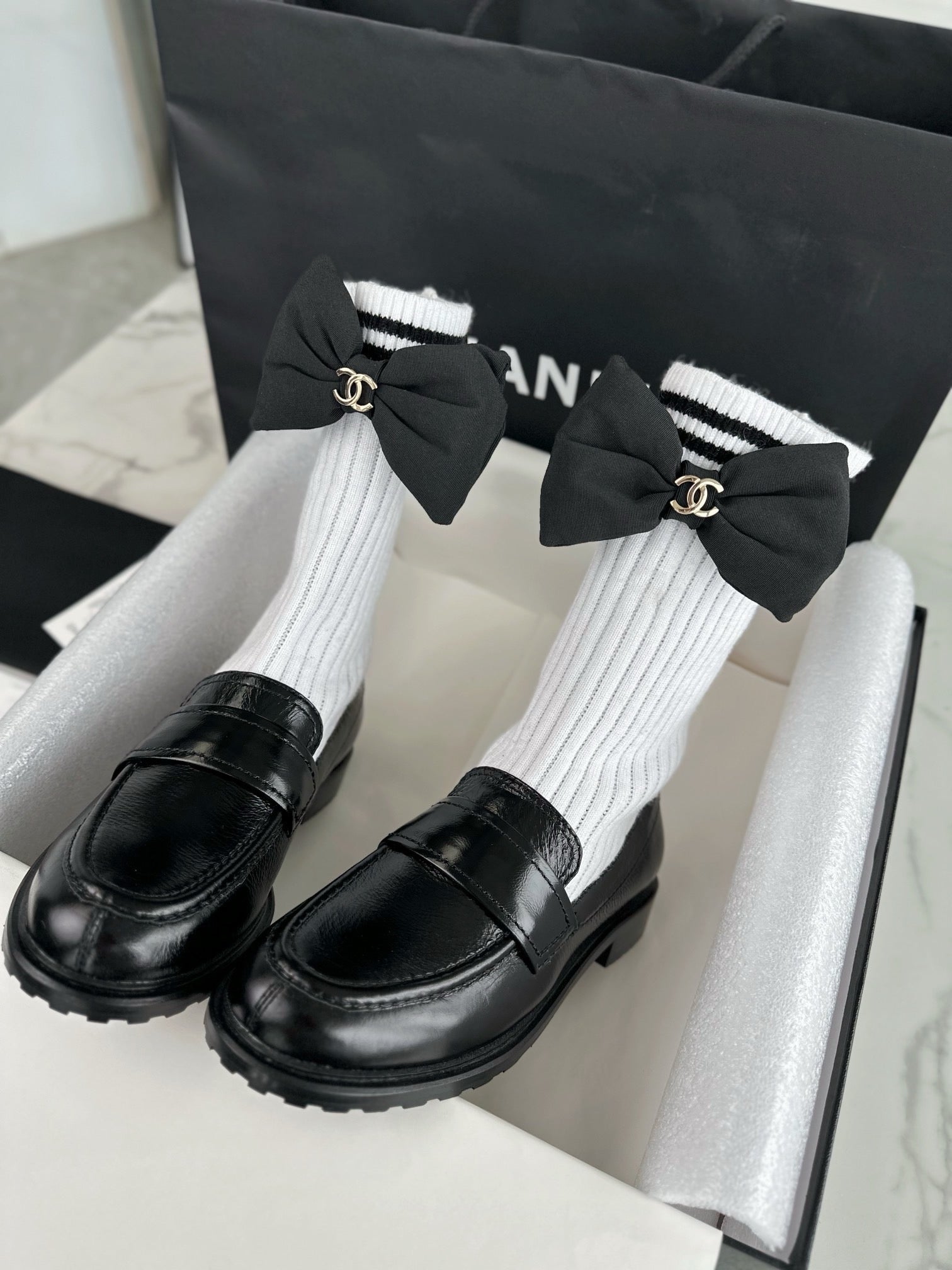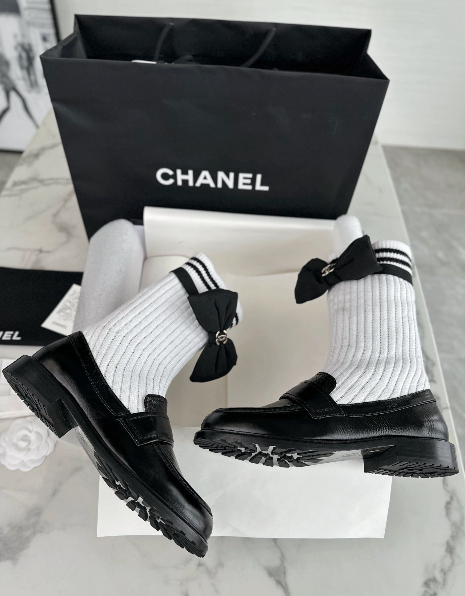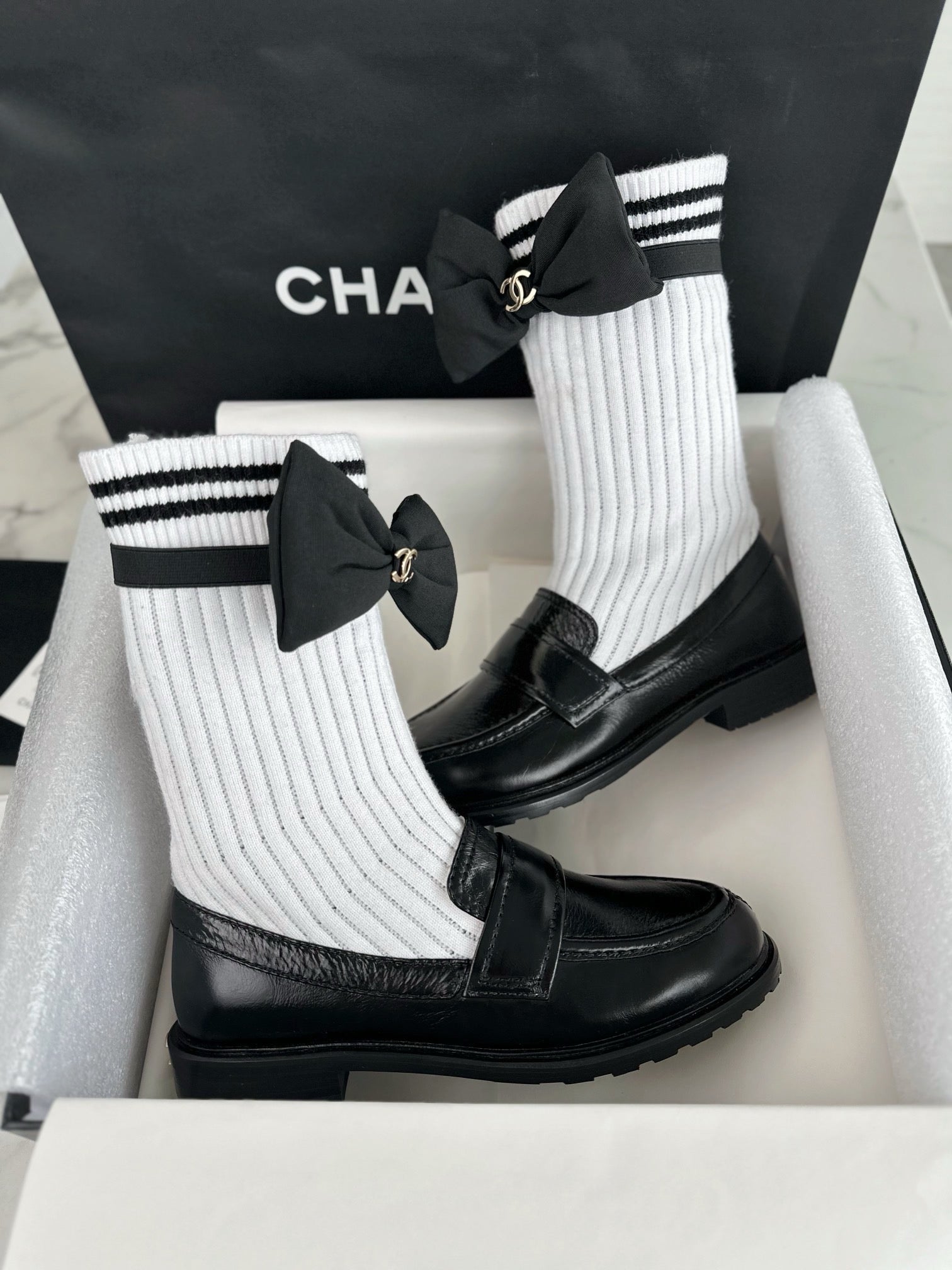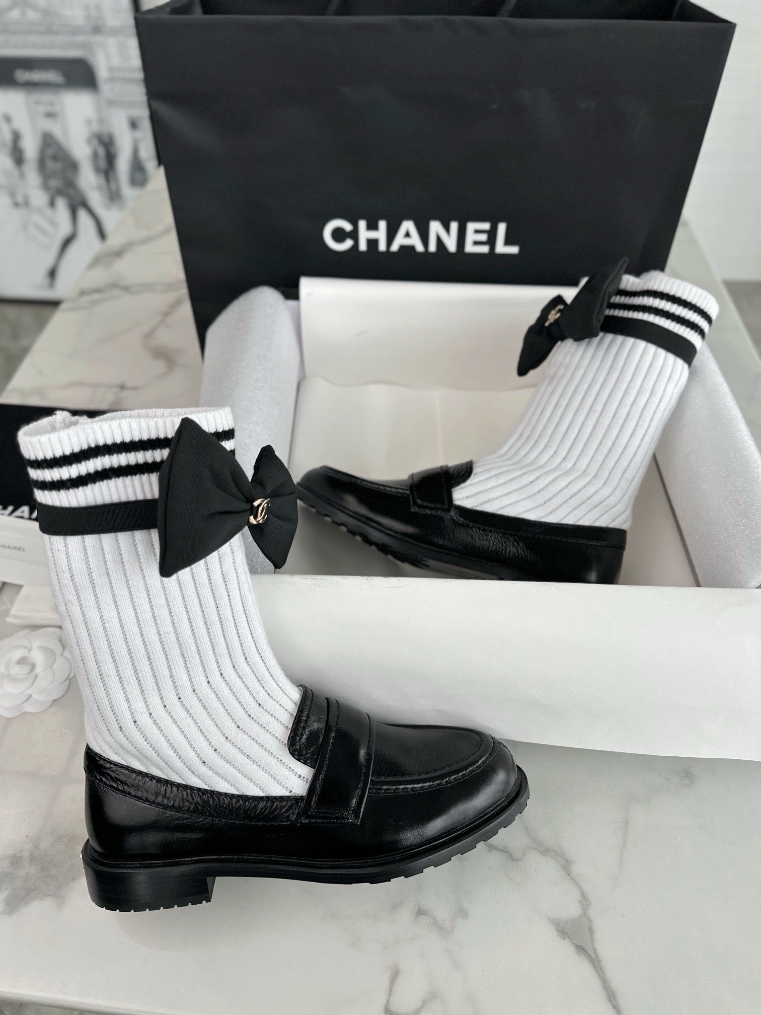 샤넬 리본 삭스 컴바인 모카신(Chanel Ribbon Socks Combine Moccasin) - 우아함과 개성의 믹스