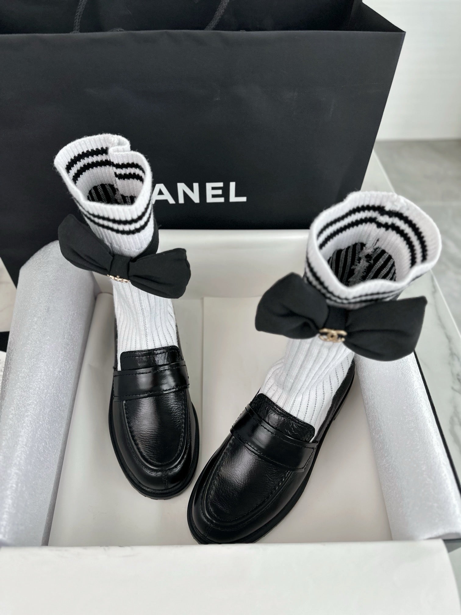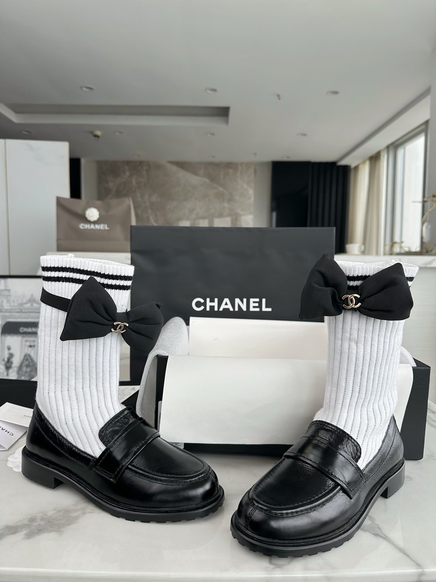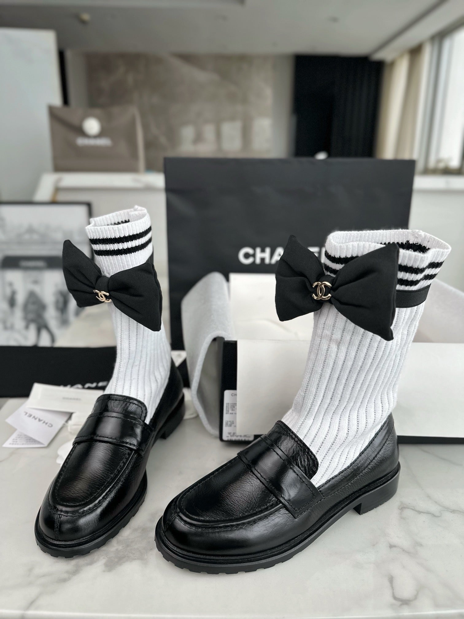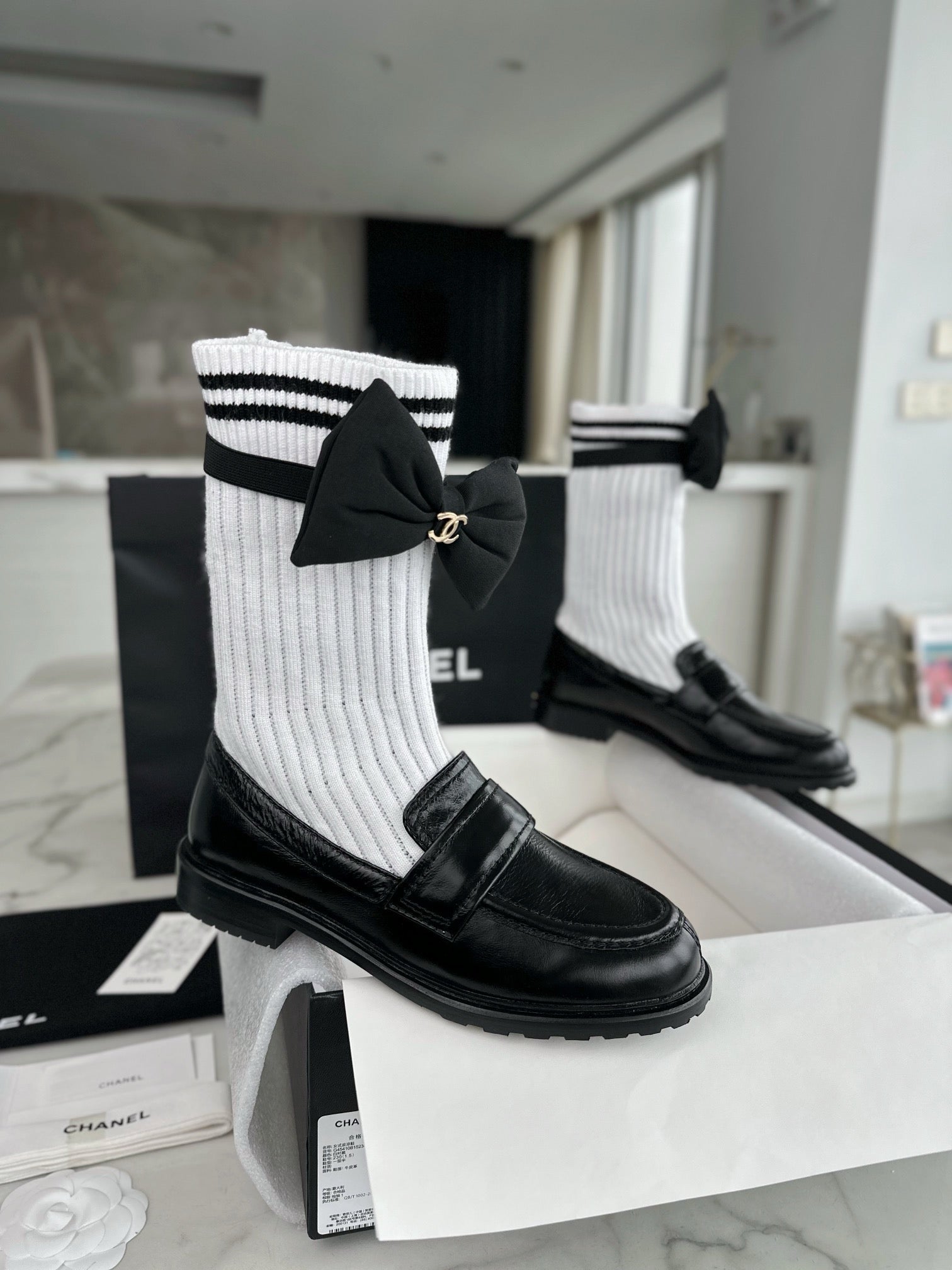 샤넬 리본 삭스 컴바인 모카신(Chanel Ribbon Socks Combine Moccasin) - 우아함과 개성의 믹스