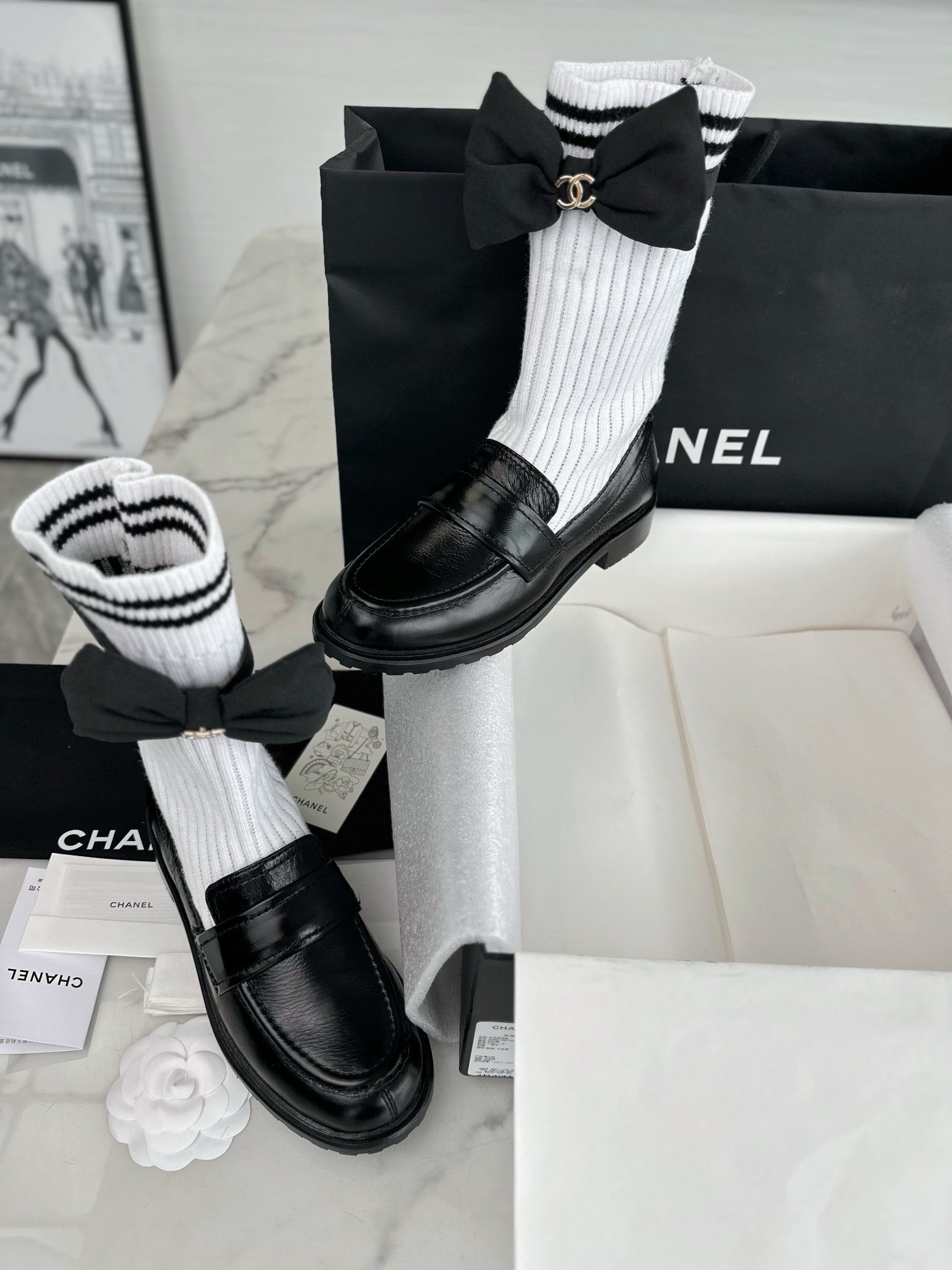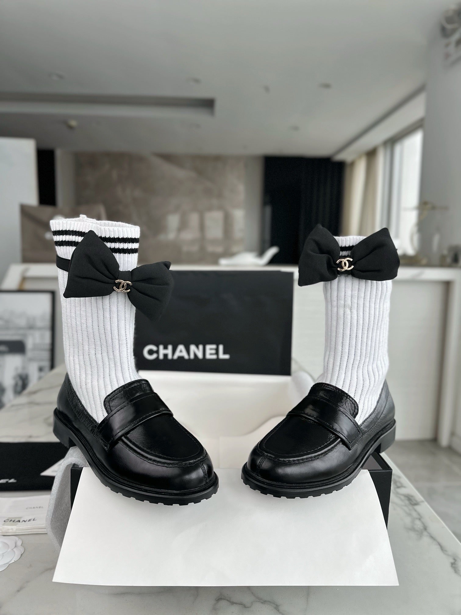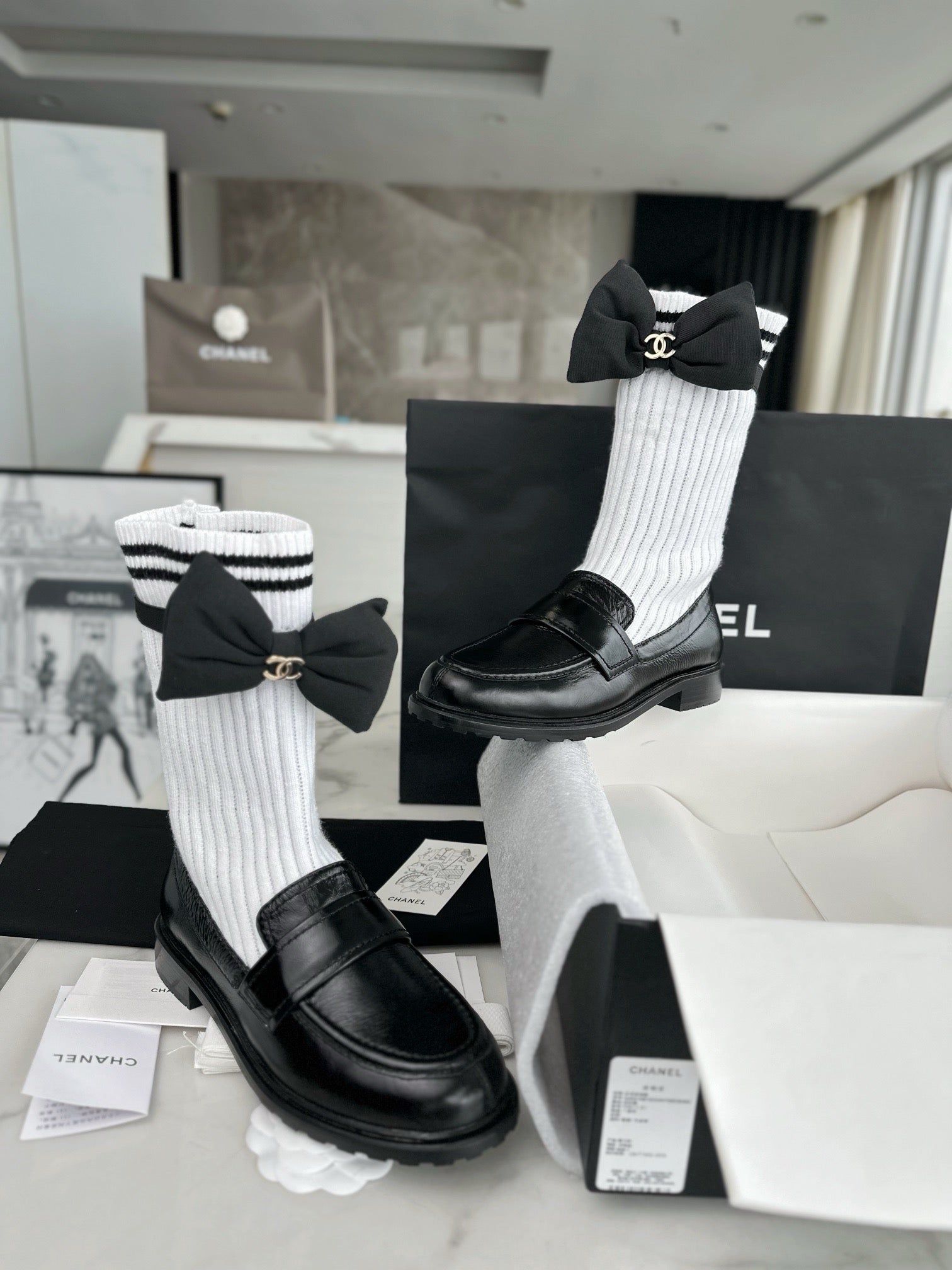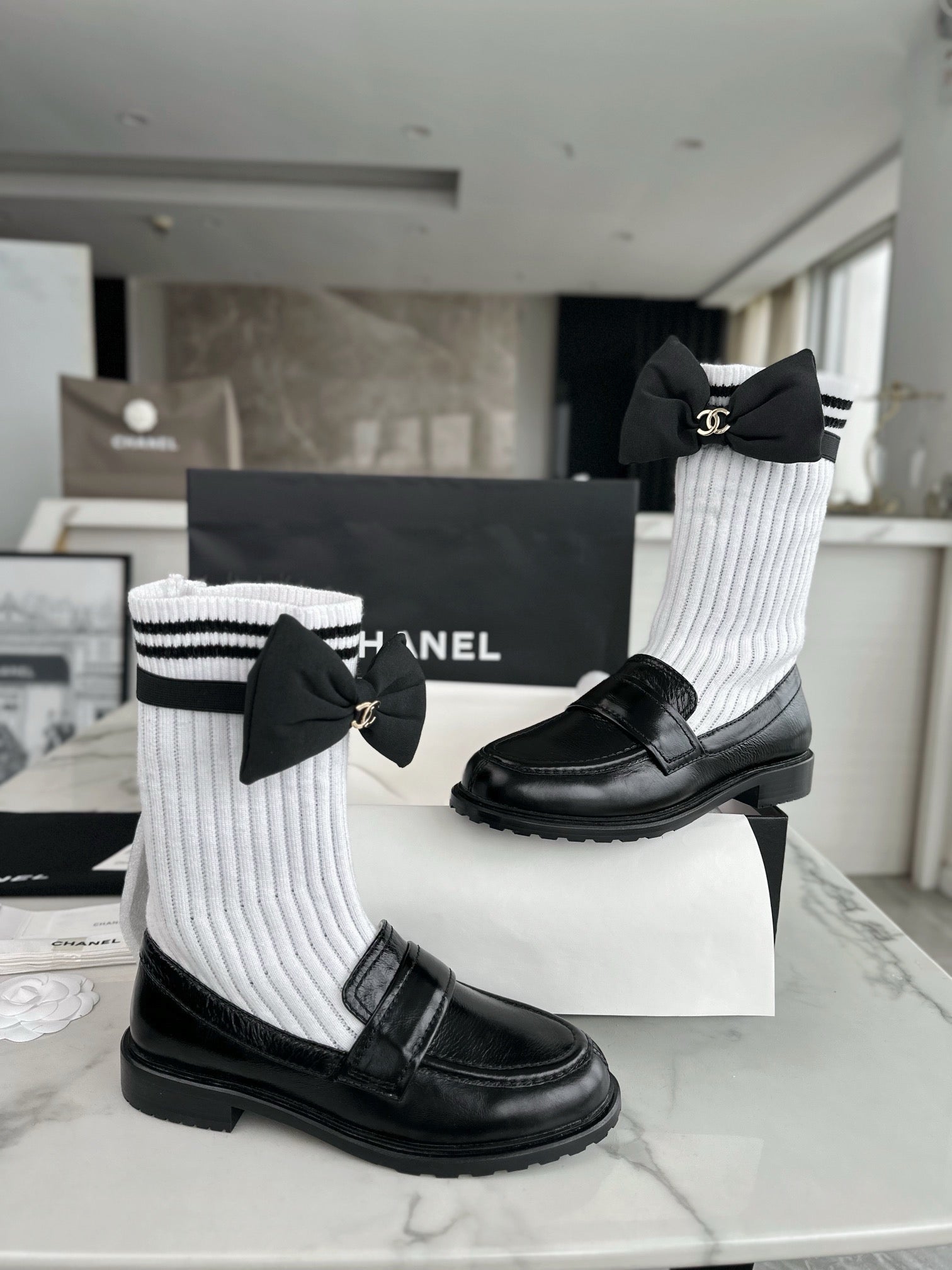 샤넬 리본 삭스 컴바인 모카신(Chanel Ribbon Socks Combine Moccasin) - 우아함과 개성의 믹스