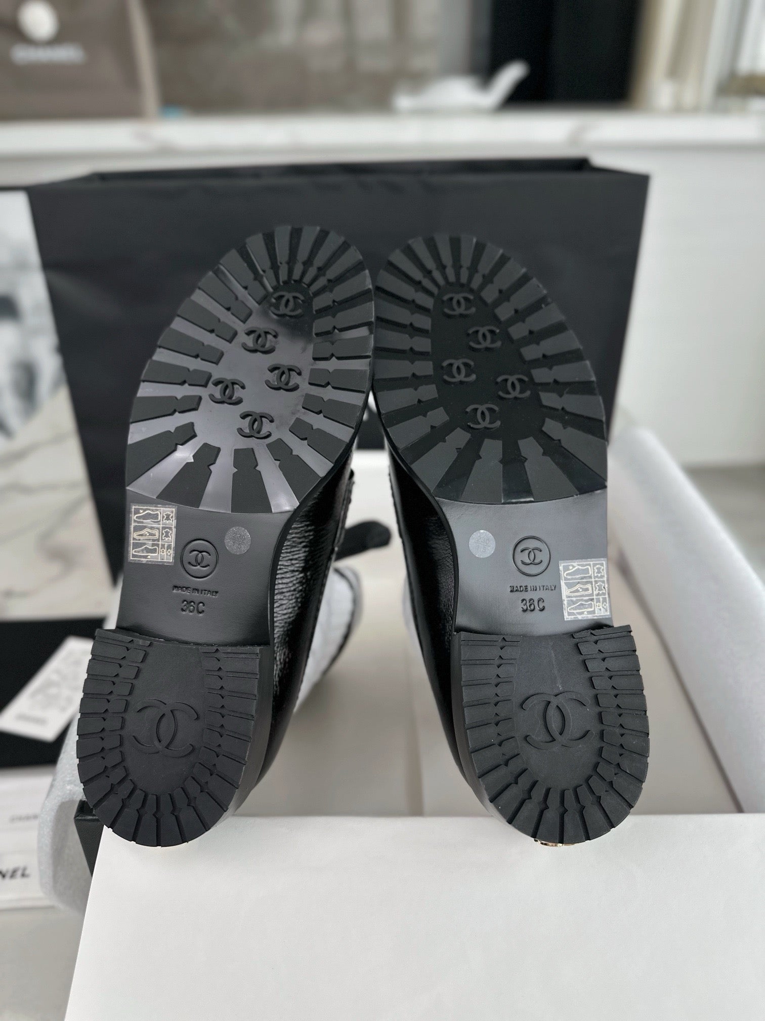 샤넬 리본 삭스 컴바인 모카신