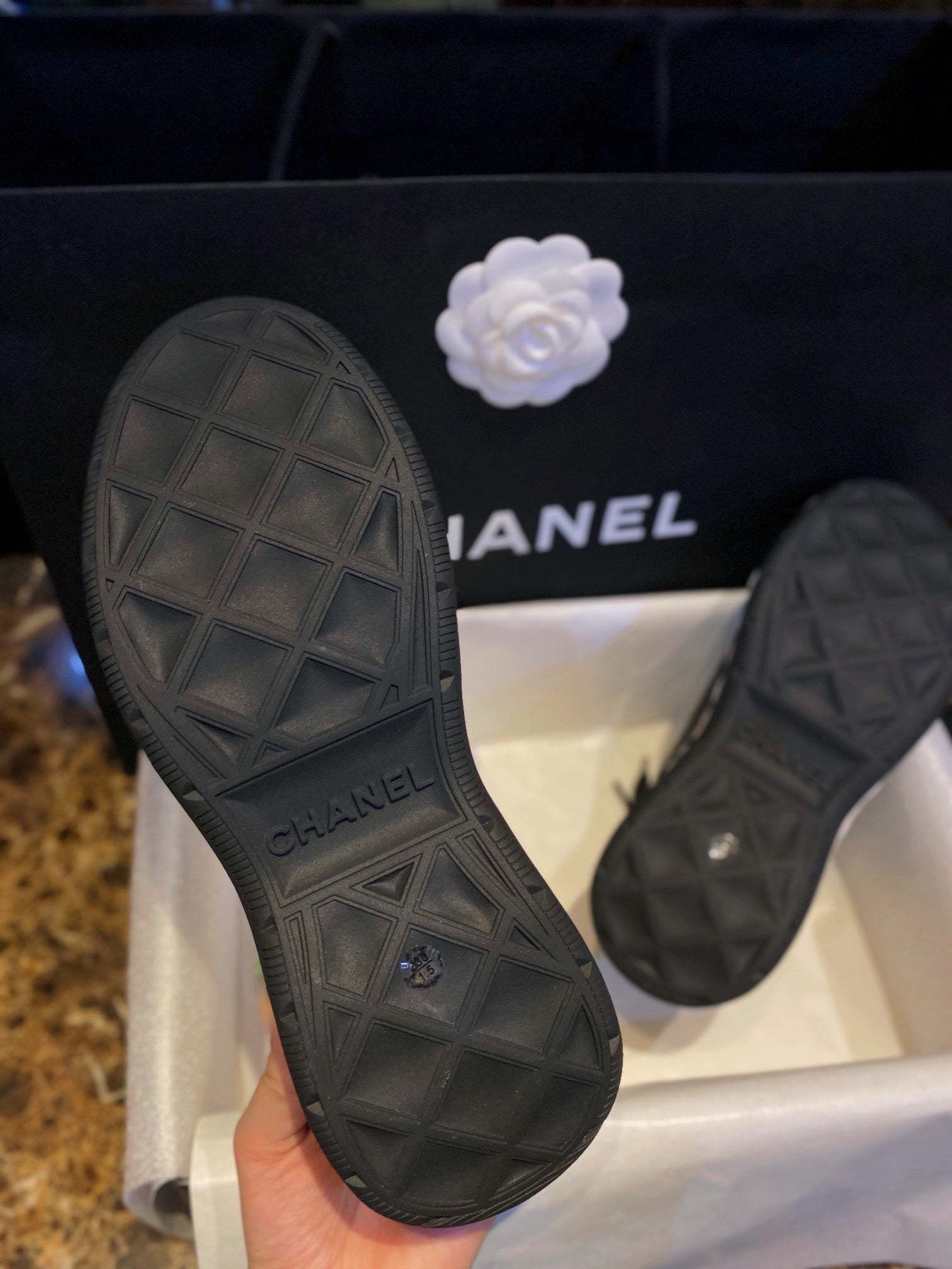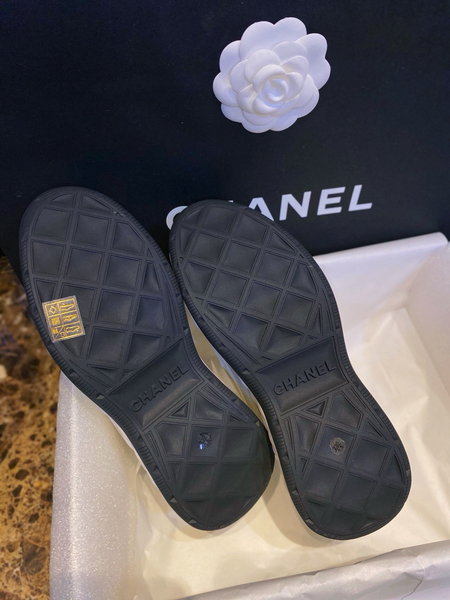 디테일: 대비 소재 조합, 샤넬 로고 자수 또는 프린트, 대비 컬러 아웃솔