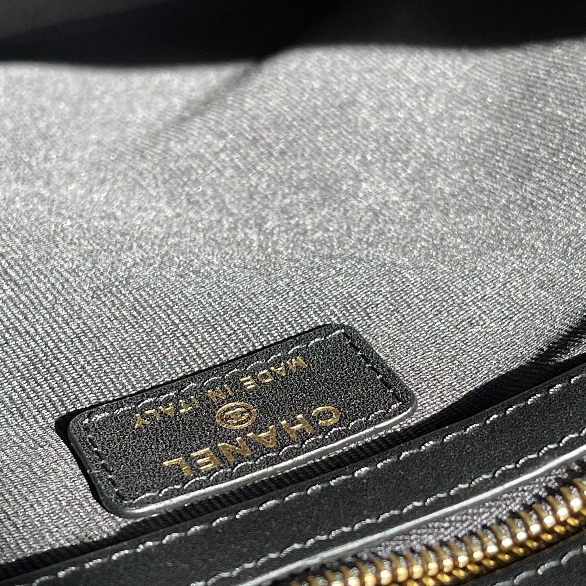 이 클러치는 보이 샤넬 라인의 시그니처 직선적인 디자인과 V자 쉐브론 퀼팅 패턴이 특징입니다. 전면에는 아이코닉한 보이 샤넬 잠금장치가 자리하며, 골드 또는 실버 톤 메탈 하드웨어가 고급스러운 포인트를 더합니다.
