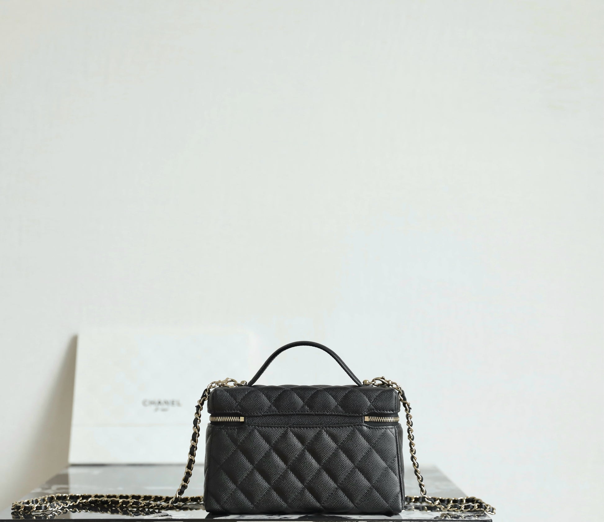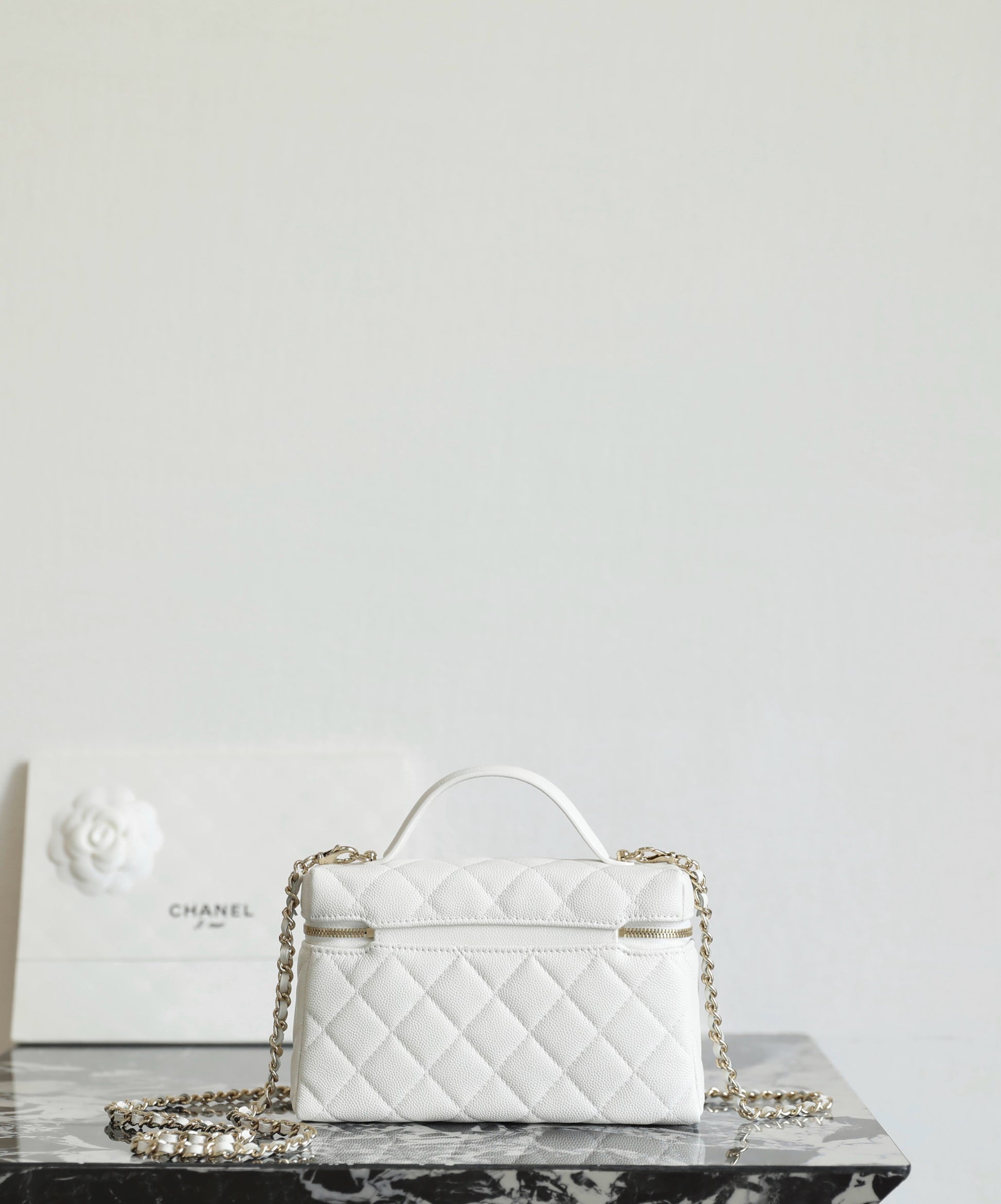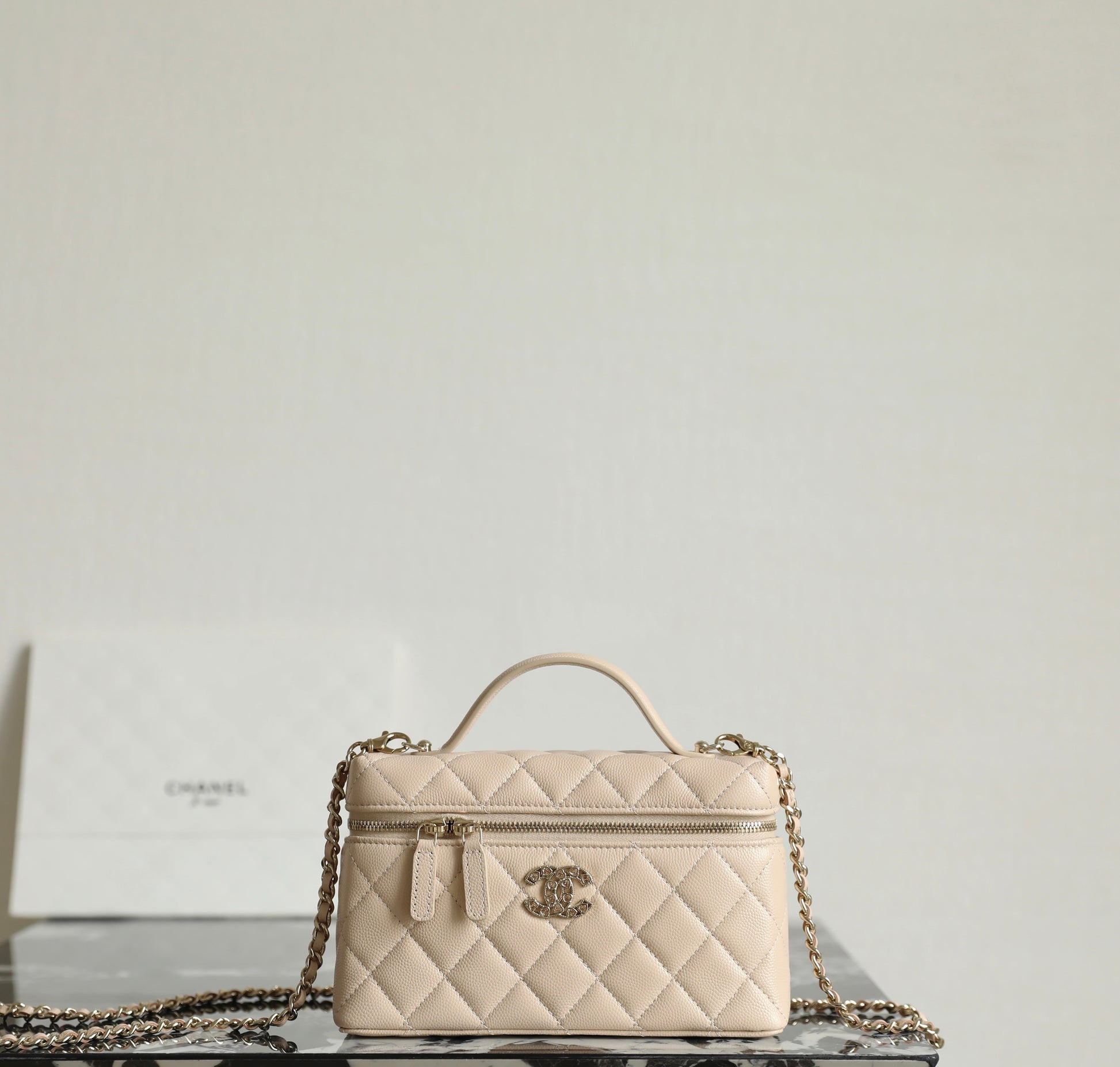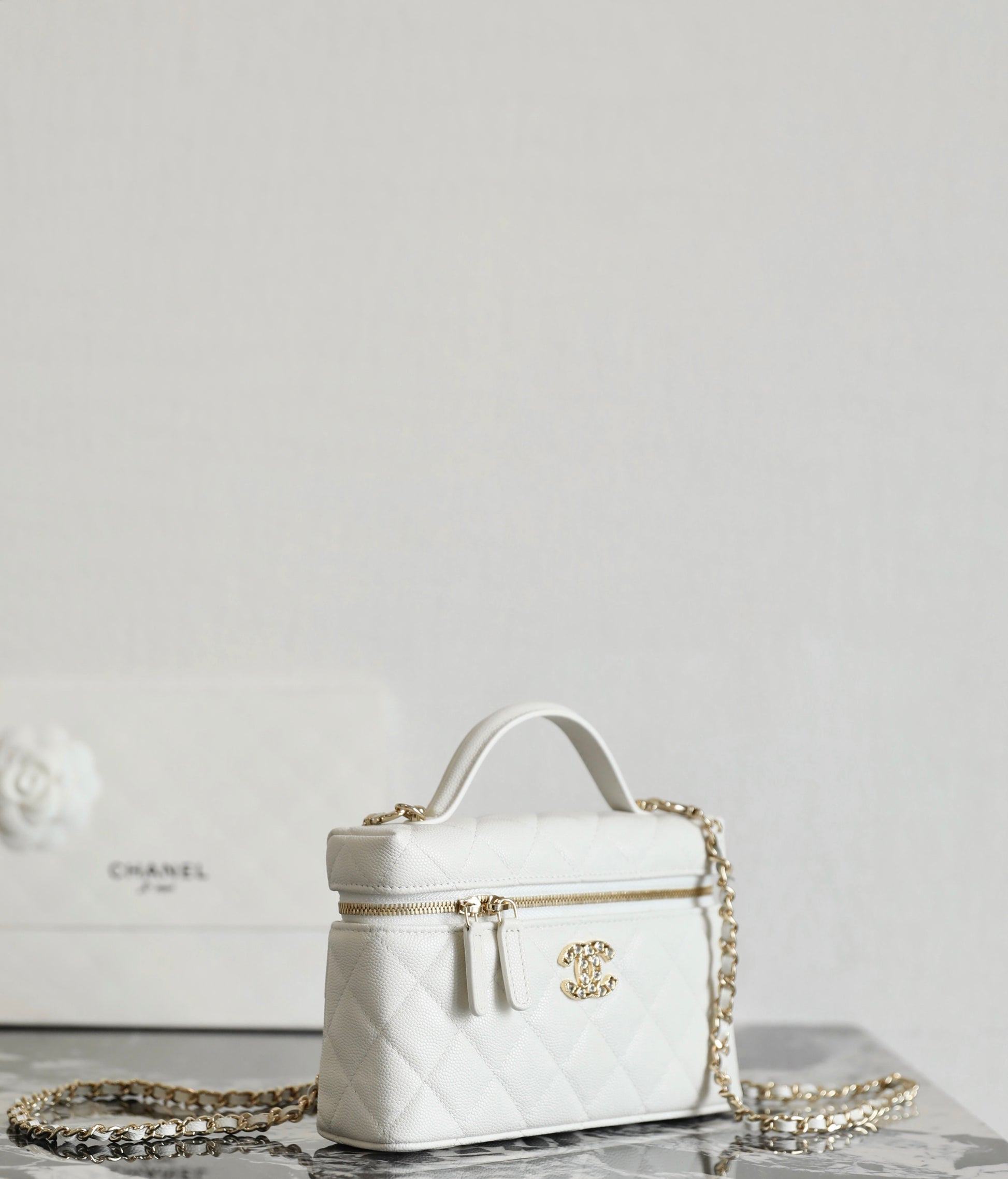샤넬 빅로고 베니티 탑핸들 - 미니멀 수납과 존재감 있는 연출