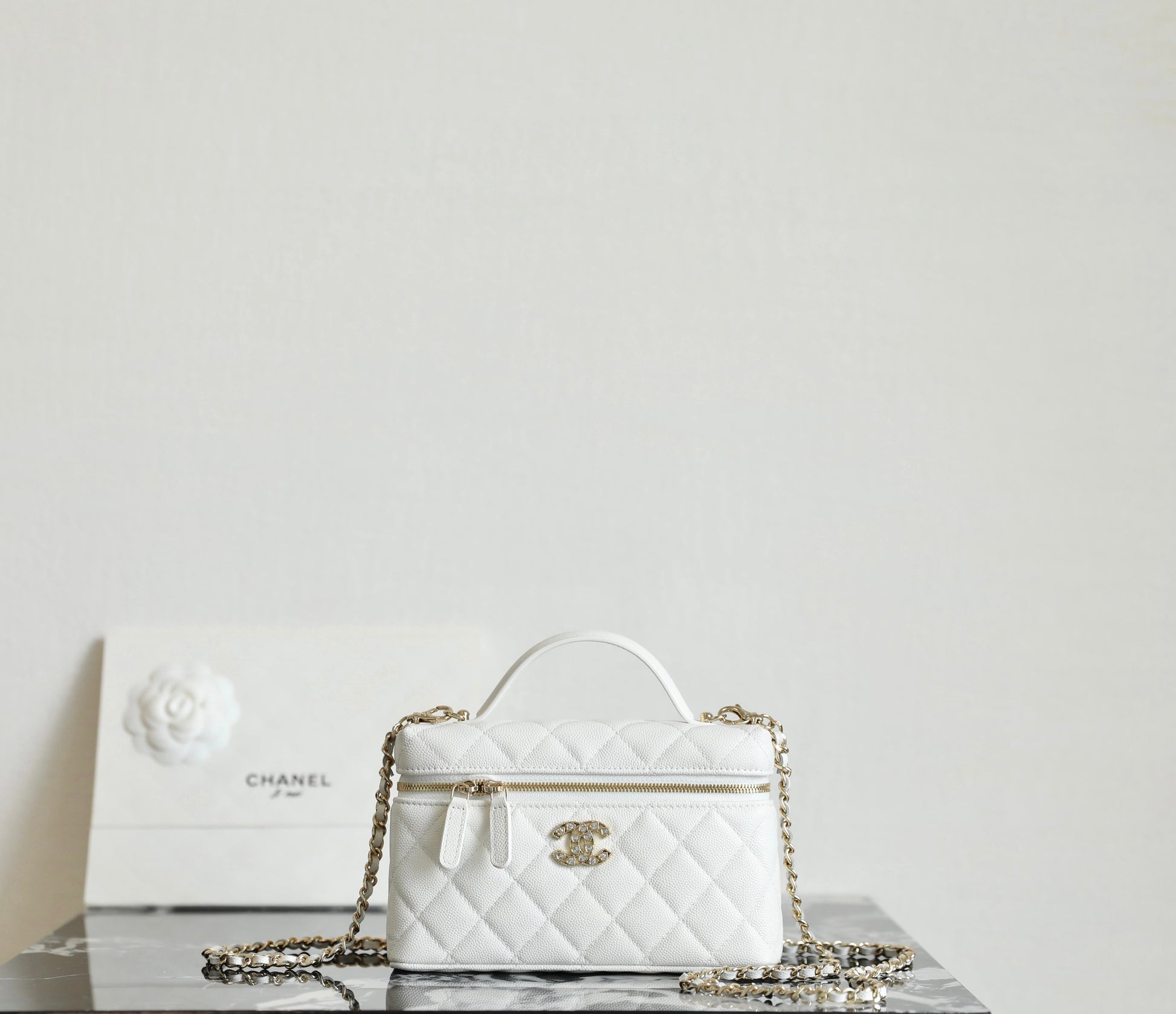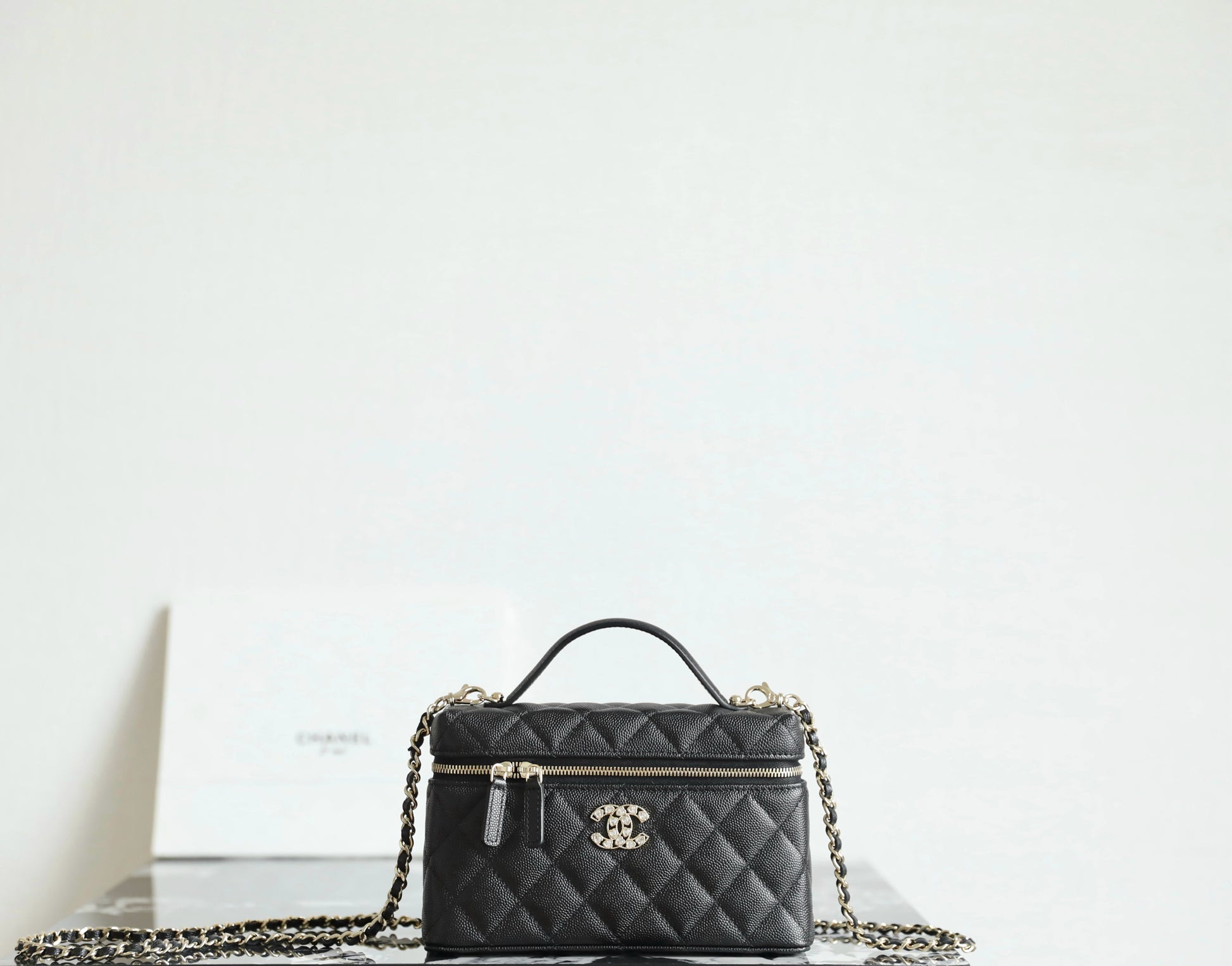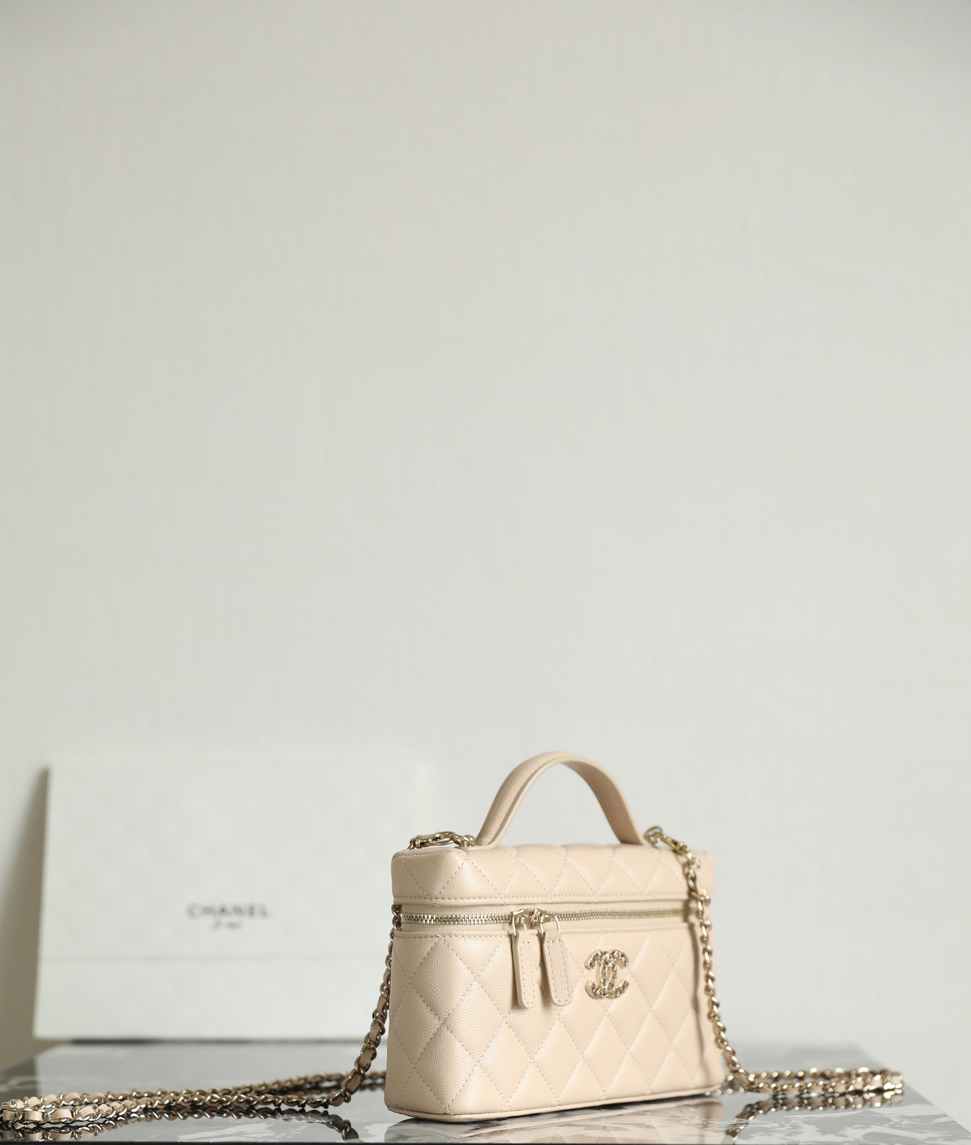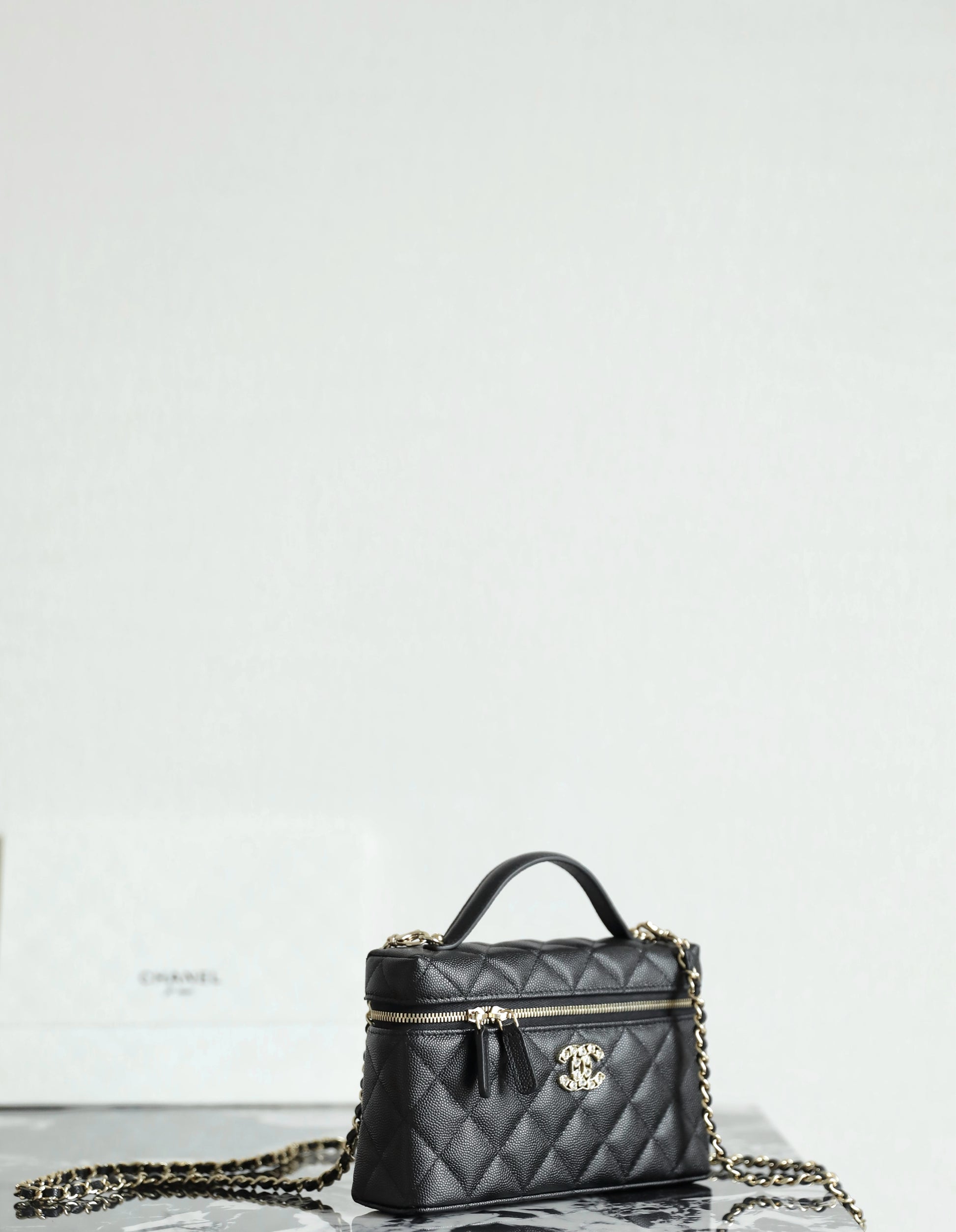 샤넬 빅로고 베니티 탑핸들 - 미니멀 수납과 존재감 있는 연출