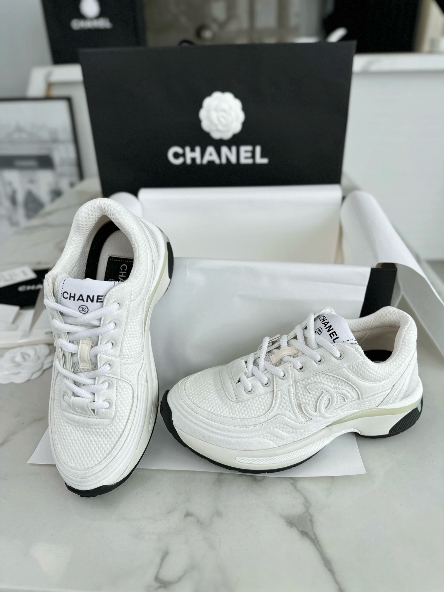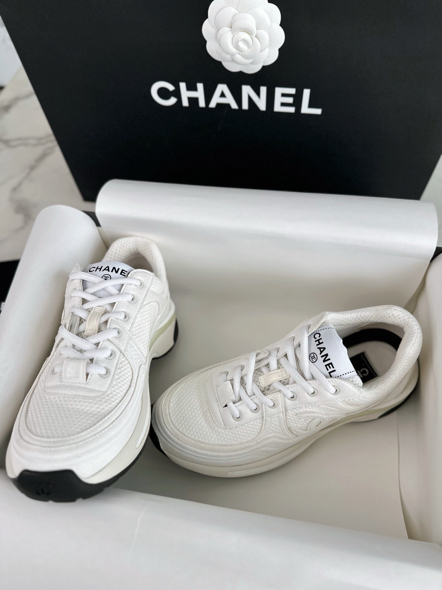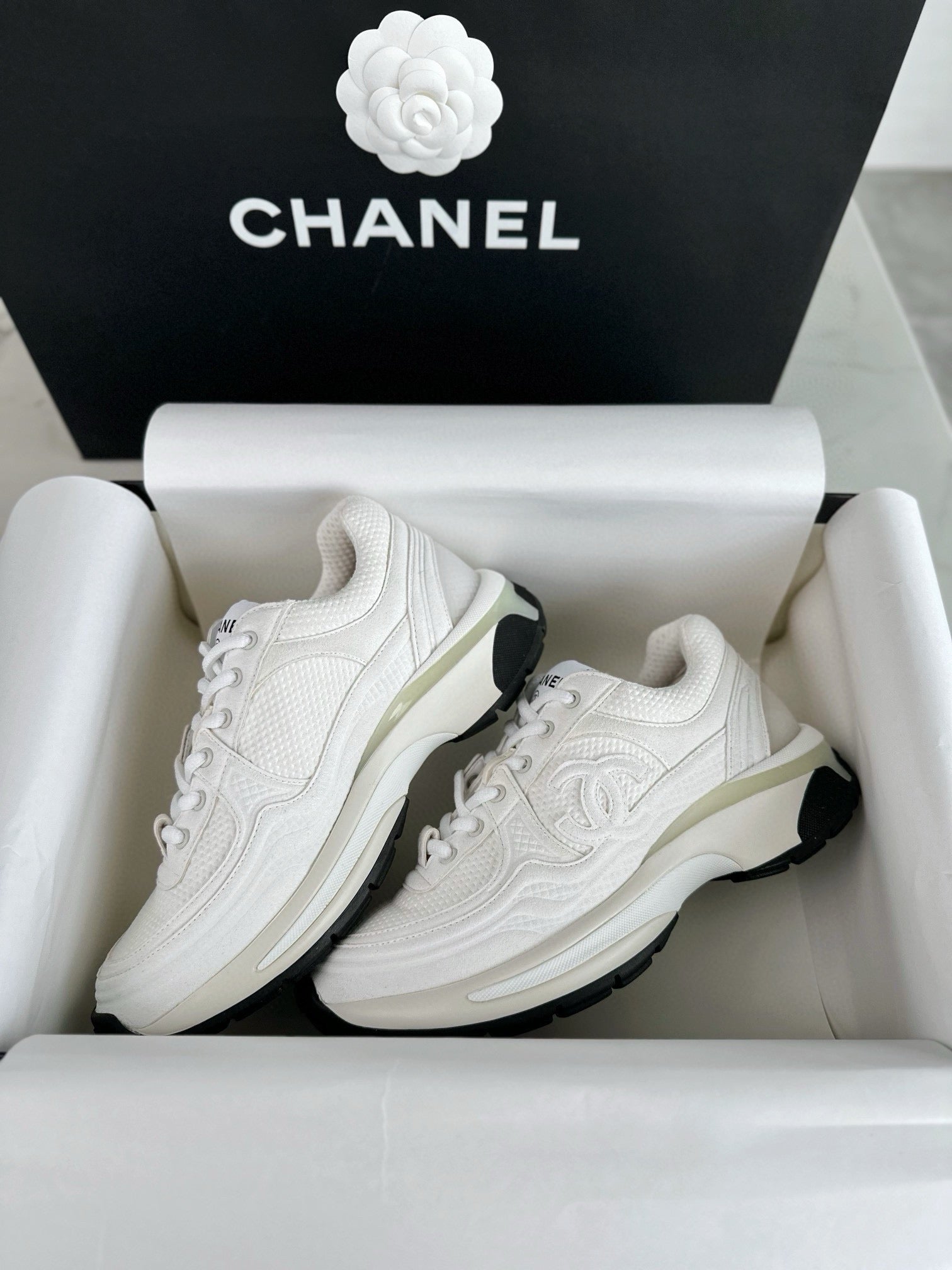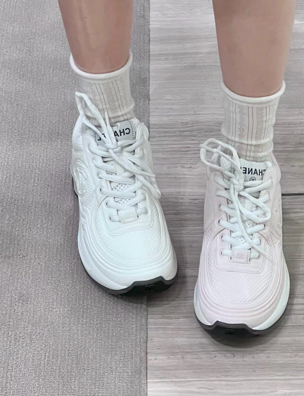 샤식스는 스니커즈와 플랫슈즈의 중간 형태로, 간결한 실루엣과 부드러운 곡선 라인이 조화를 이룹니다. 가볍고 유연한 패브릭 소재가 사용되어 장시간 착용해도 편안함을 제공하며, 샤넬 로고와 디테일은 절제된 고급스러움을 더합니다.