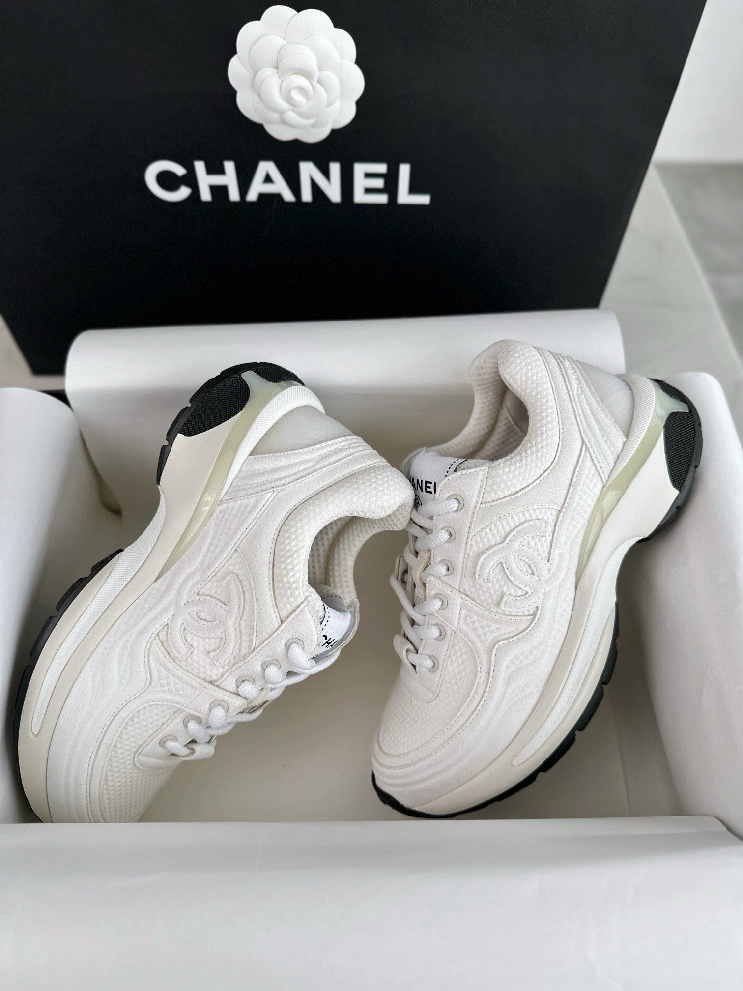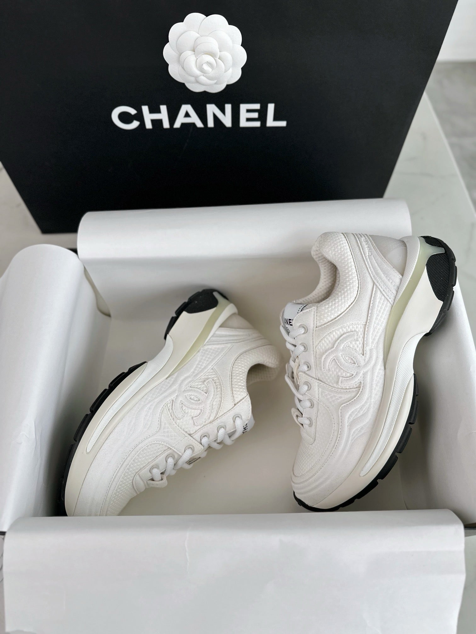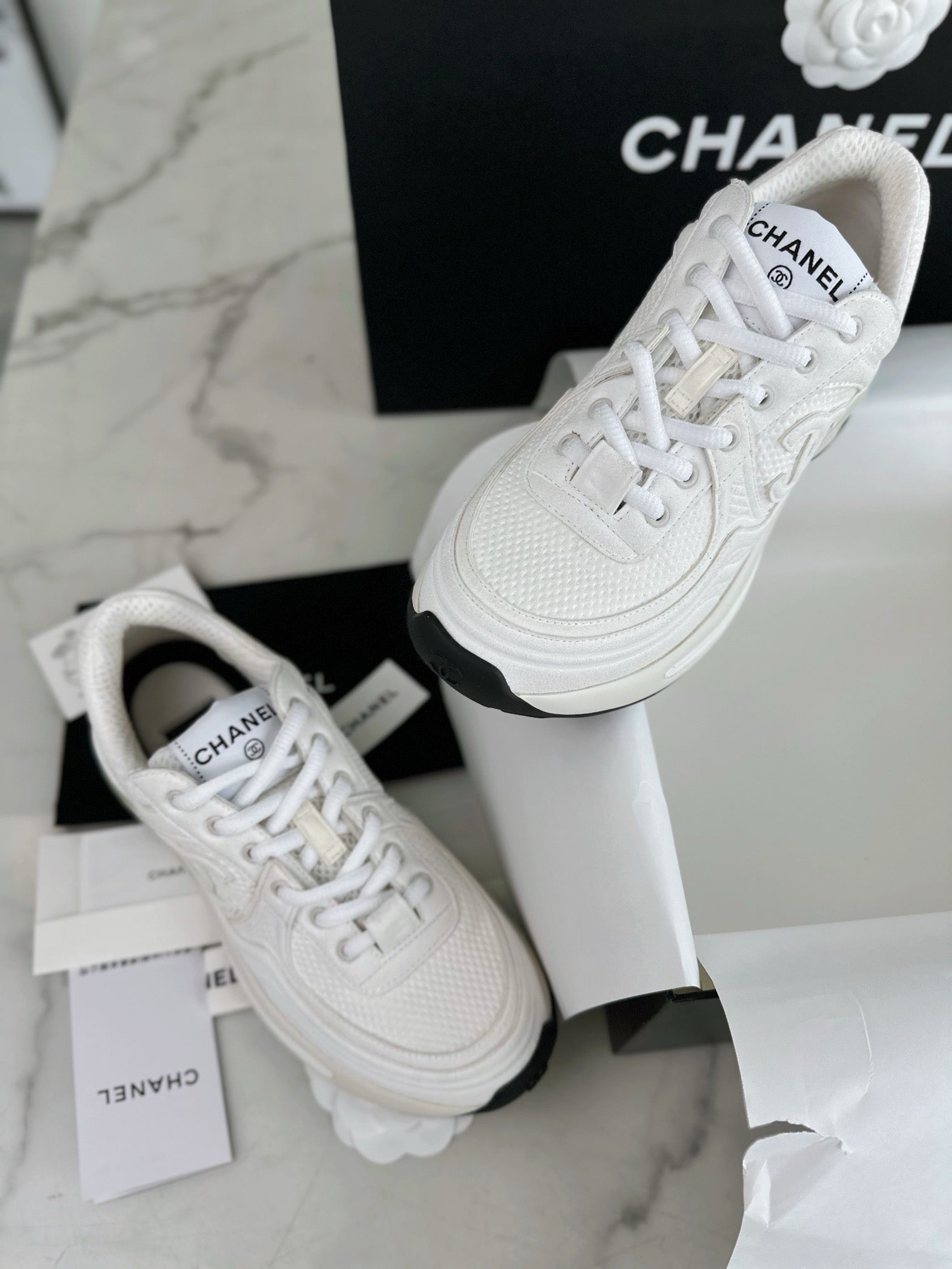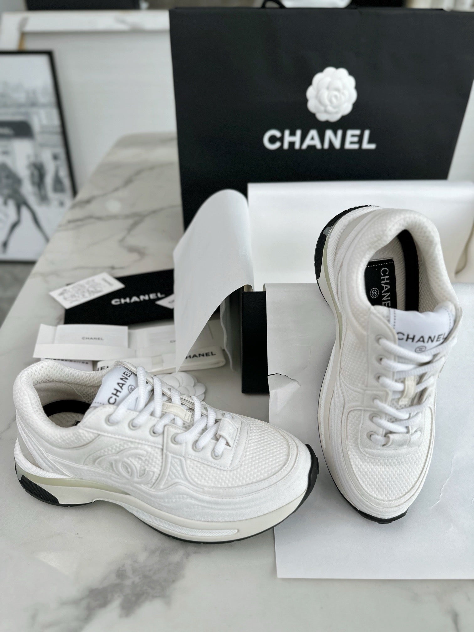샤식스는 스니커즈와 플랫슈즈의 중간 형태로, 간결한 실루엣과 부드러운 곡선 라인이 조화를 이룹니다. 가볍고 유연한 패브릭 소재가 사용되어 장시간 착용해도 편안함을 제공하며, 샤넬 로고와 디테일은 절제된 고급스러움을 더합니다.