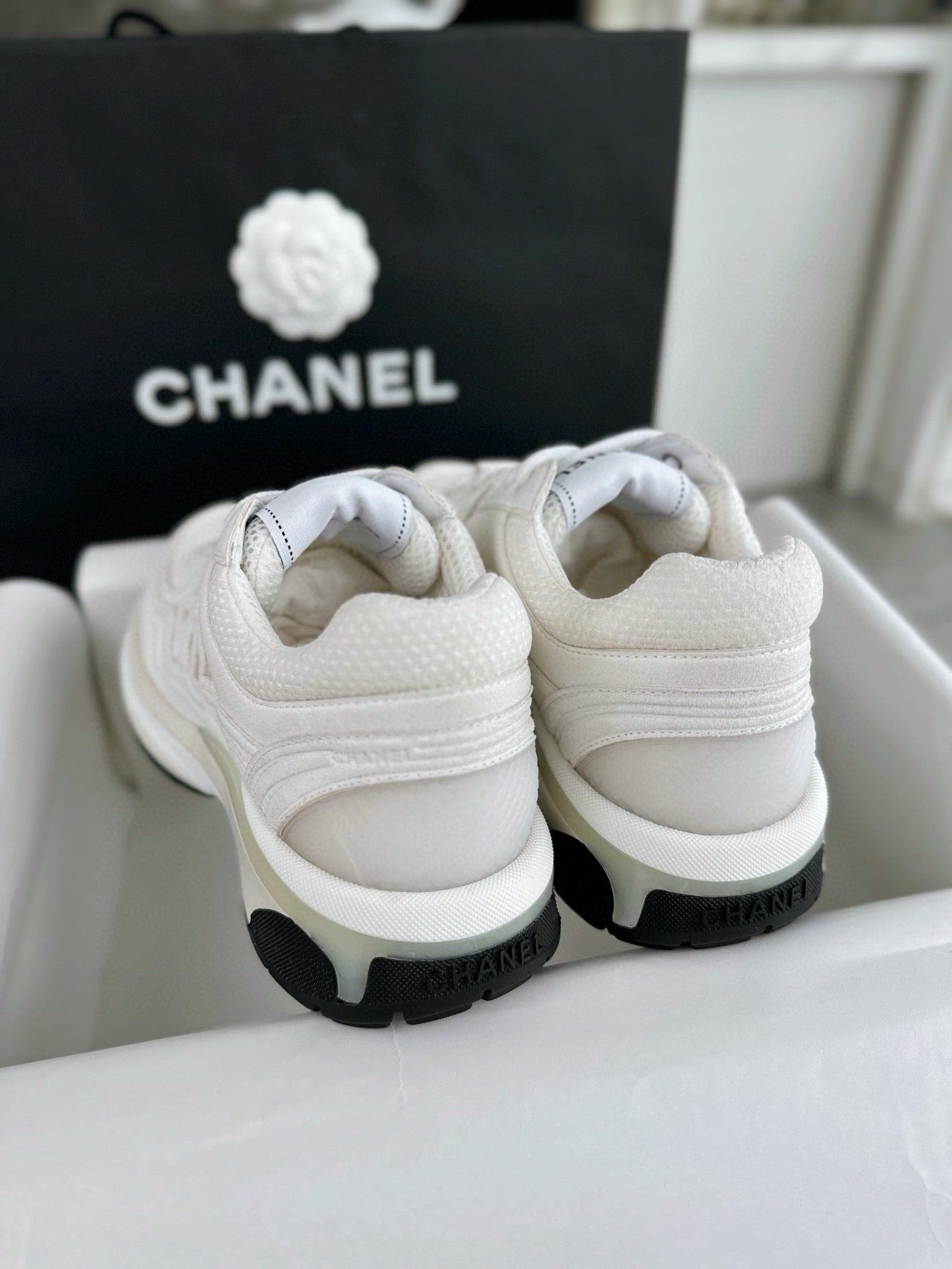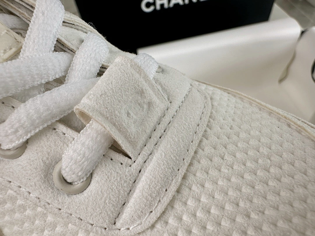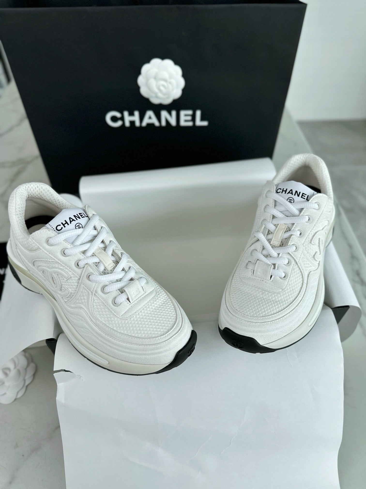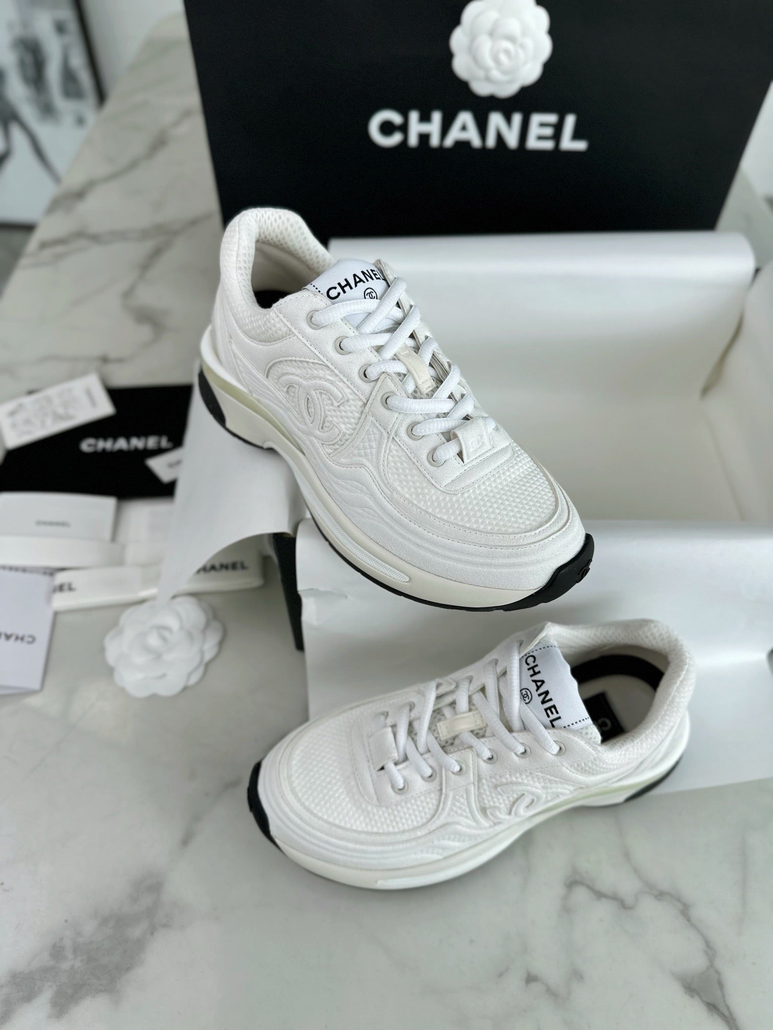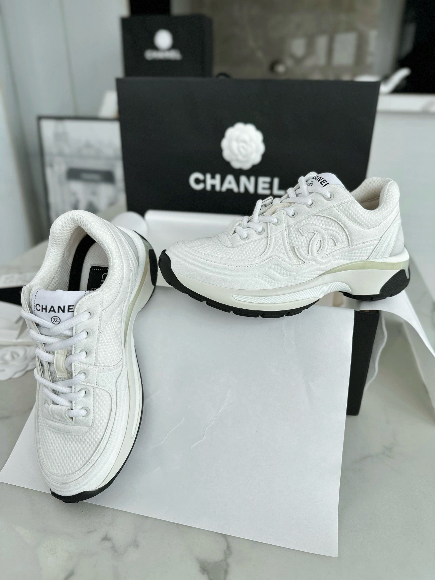 샤식스는 스니커즈와 플랫슈즈의 중간 형태로, 간결한 실루엣과 부드러운 곡선 라인이 조화를 이룹니다. 가볍고 유연한 패브릭 소재가 사용되어 장시간 착용해도 편안함을 제공하며, 샤넬 로고와 디테일은 절제된 고급스러움을 더합니다.