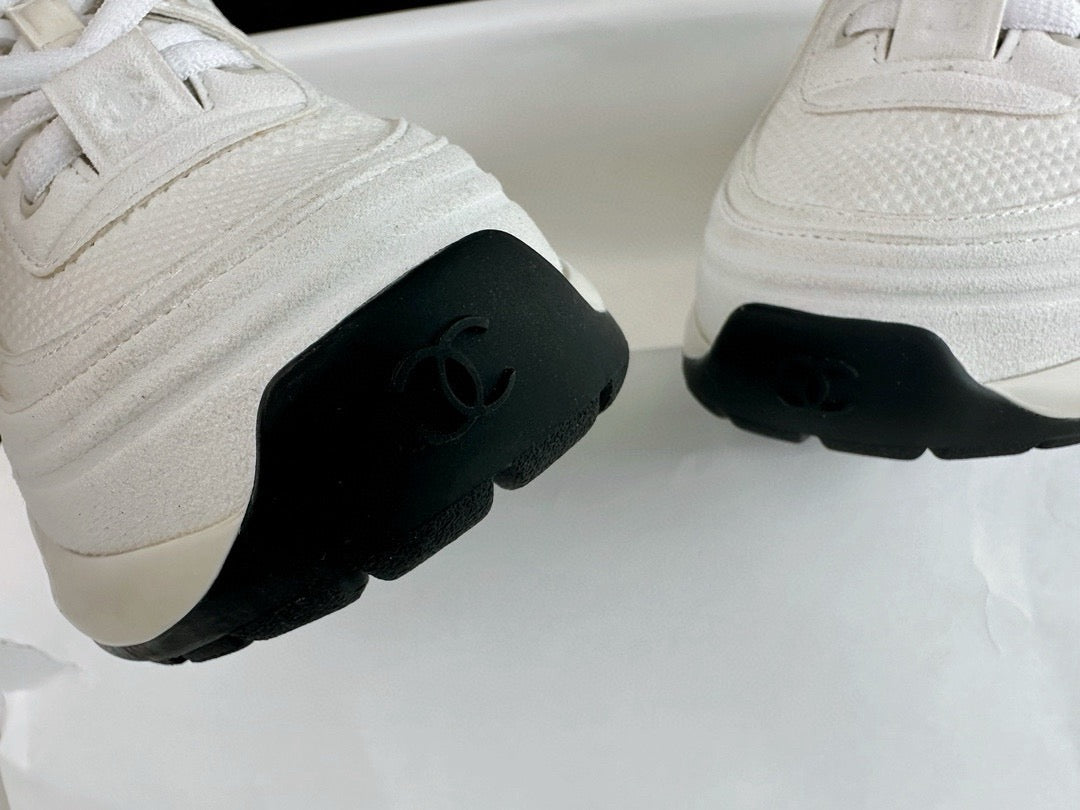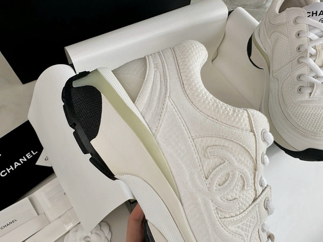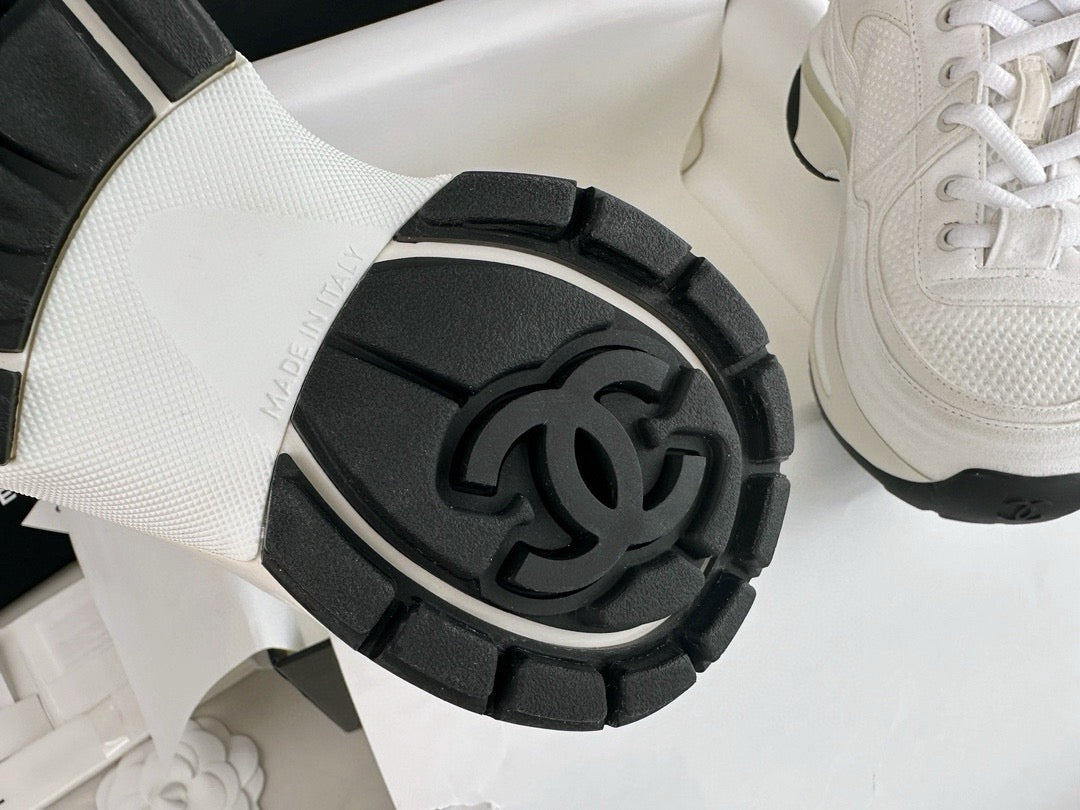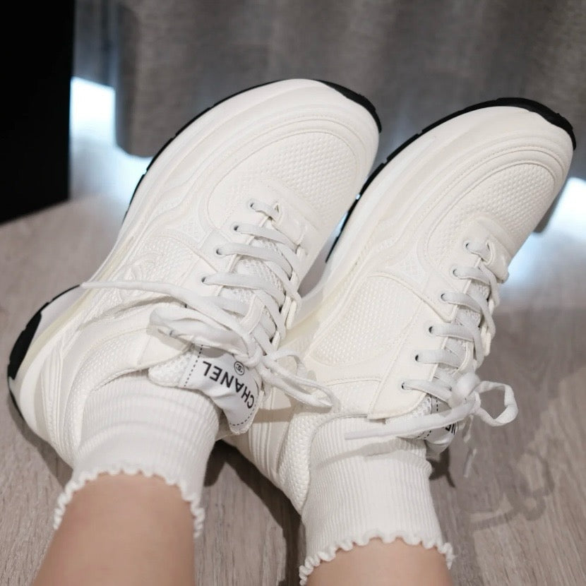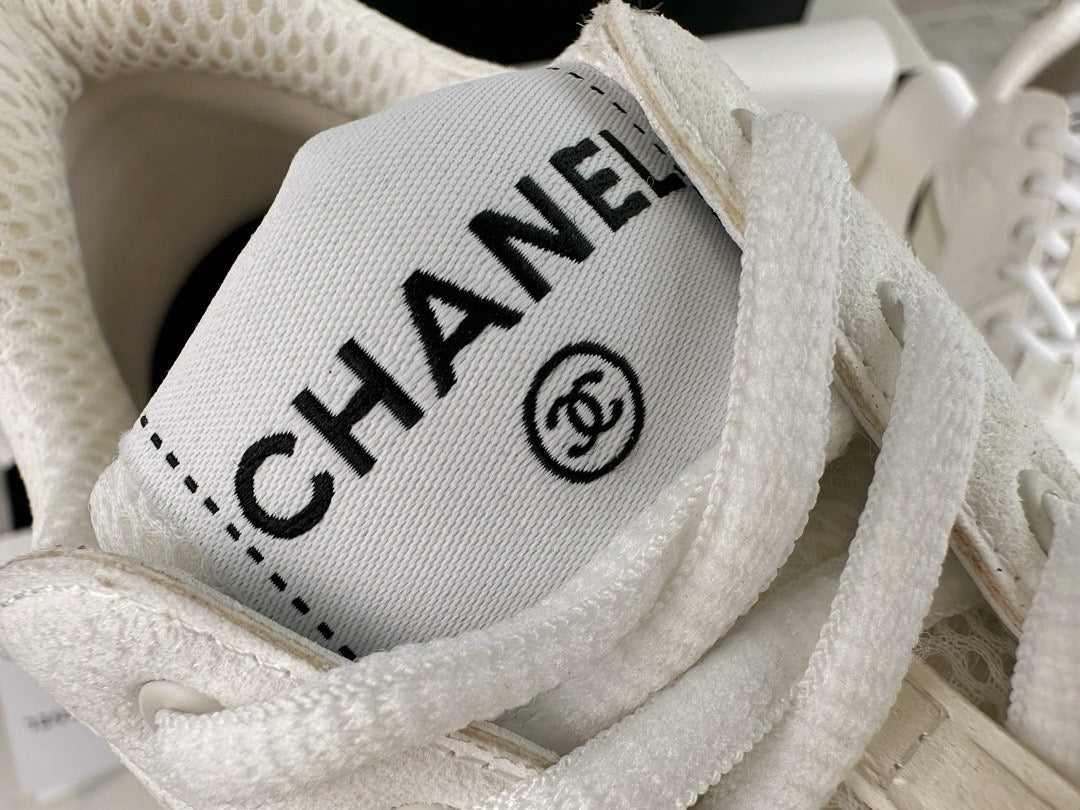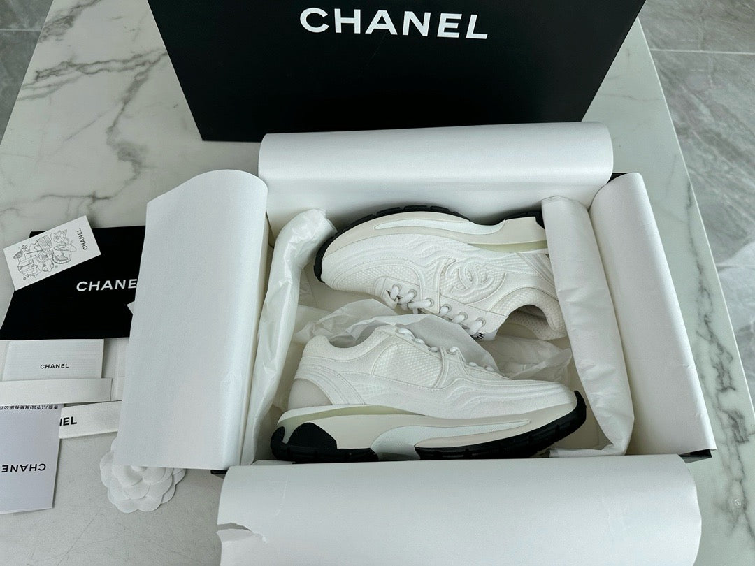 샤식스는 스니커즈와 플랫슈즈의 중간 형태로, 간결한 실루엣과 부드러운 곡선 라인이 조화를 이룹니다. 가볍고 유연한 패브릭 소재가 사용되어 장시간 착용해도 편안함을 제공하며, 샤넬 로고와 디테일은 절제된 고급스러움을 더합니다.