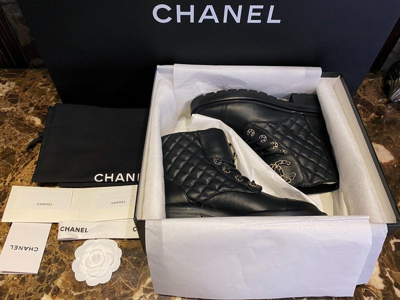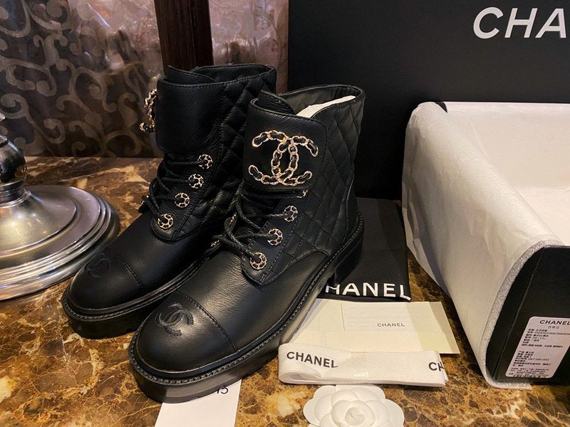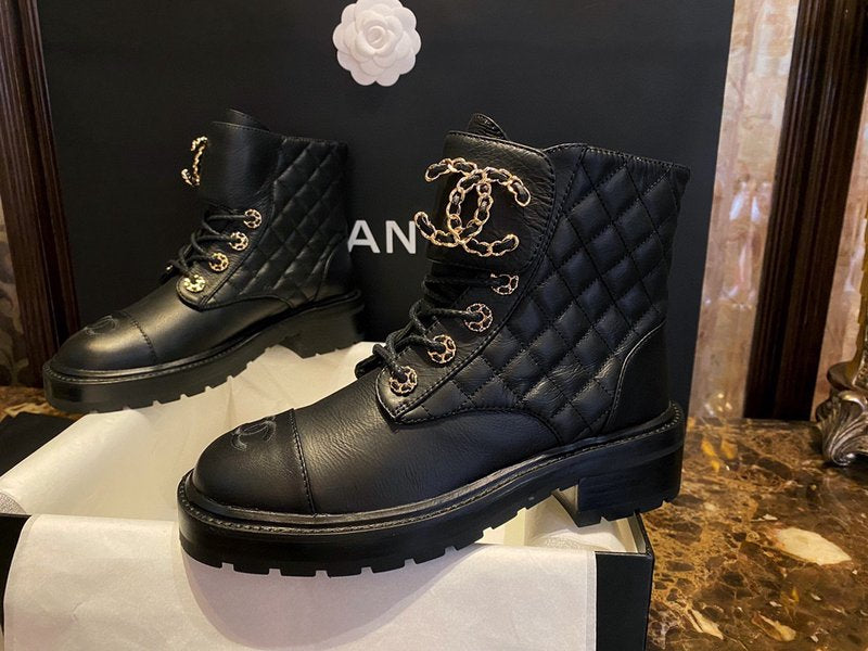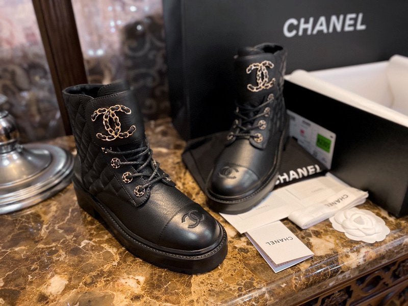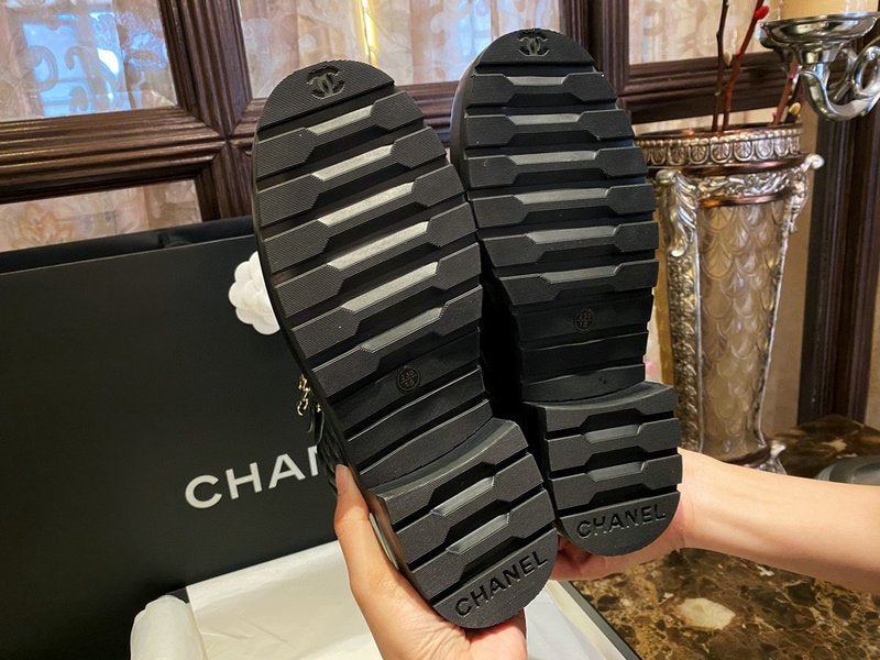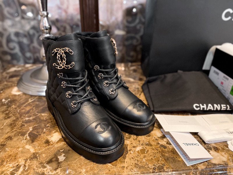 전통적인 워커 디자인을 기반으로, 샤넬 특유의 디테일이 더해진 부츠입니다. 부드러운 송아지 가죽 또는 패브릭이 혼합된 구성, 그리고 더블 C 로고나 퀼팅 패턴 디테일이 포인트로 삽입되어 우아하면서도 트렌디한 분위기를 자아냅니다.