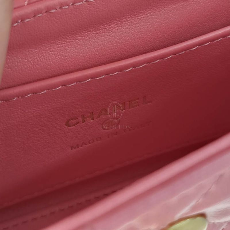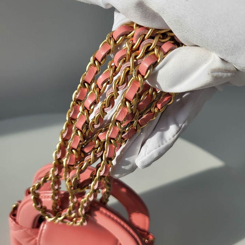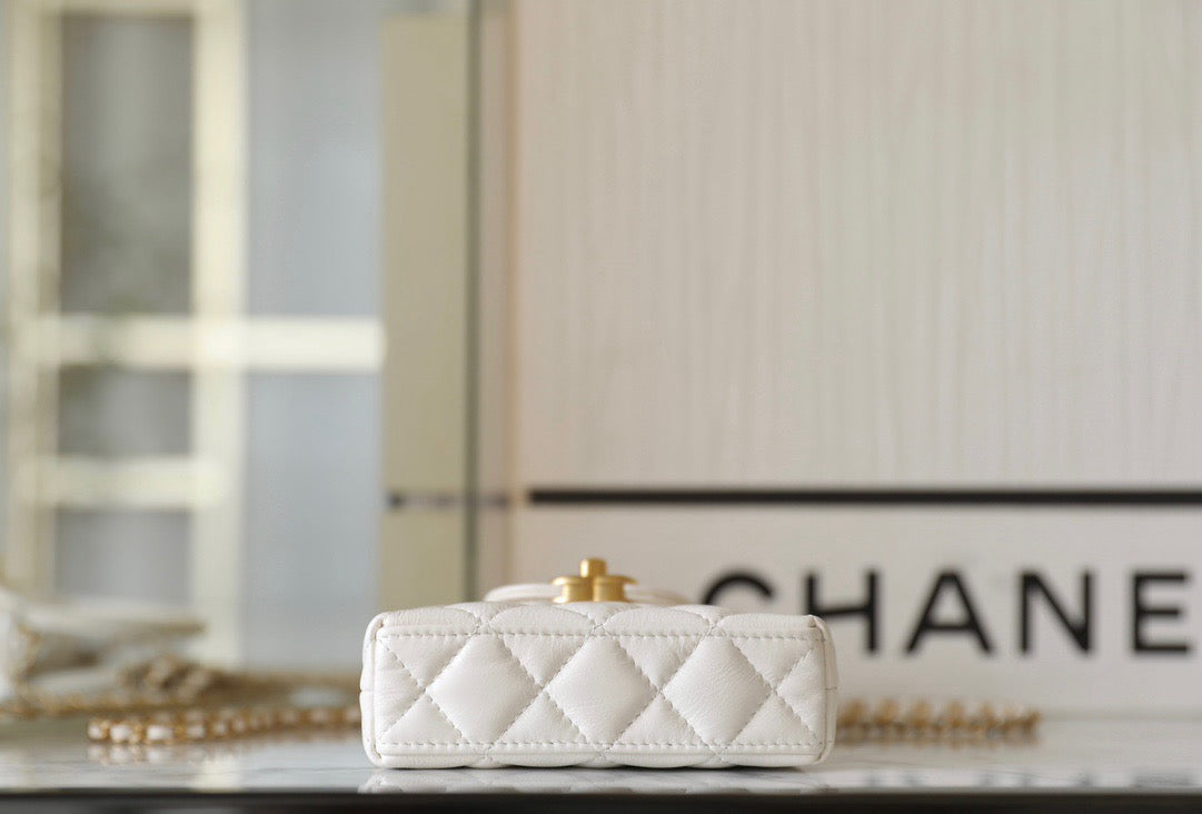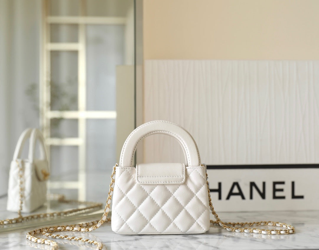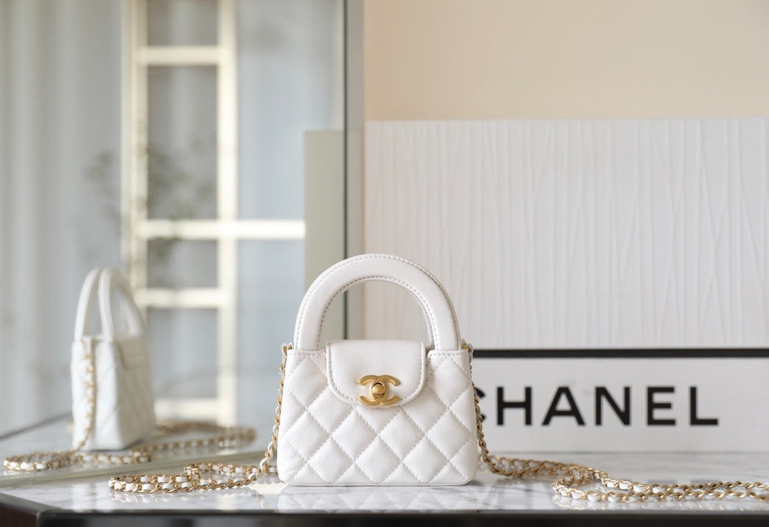 이 미니백은 다이아몬드 퀼팅과 CC 턴록, 단단한 탑 핸들로 구성되며, 샤넬 특유의 우아하고 절제된 디테일을 그대로 간직한 구조입니다. 램스킨 또는 캐비어 가죽 소재로 제작되어 내구성과 감촉 모두 만족스럽습니다. 작은 크기임에도 불구하고 샤넬 특유의 클래식 감성이 뚜렷하게 드러납니다.