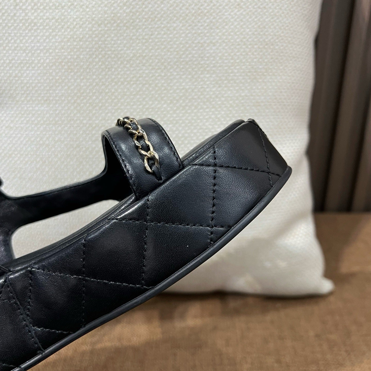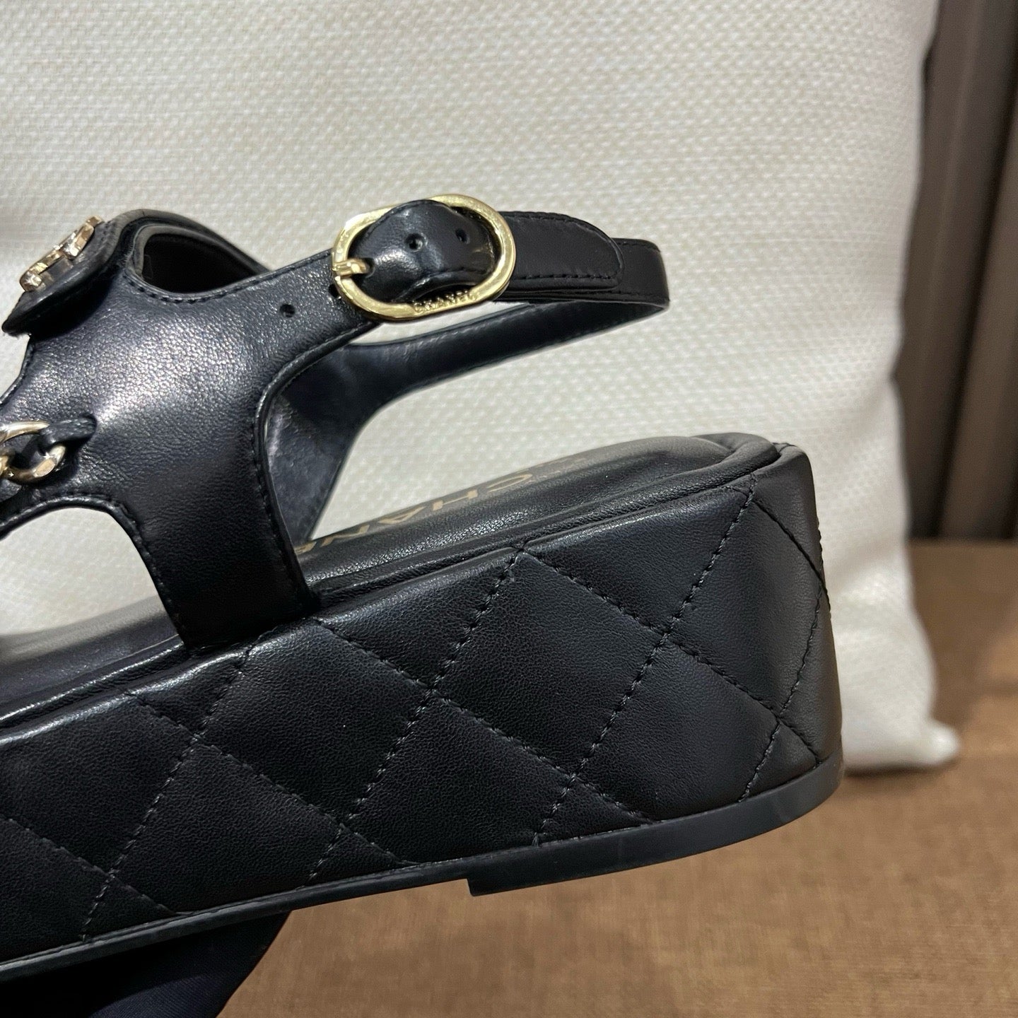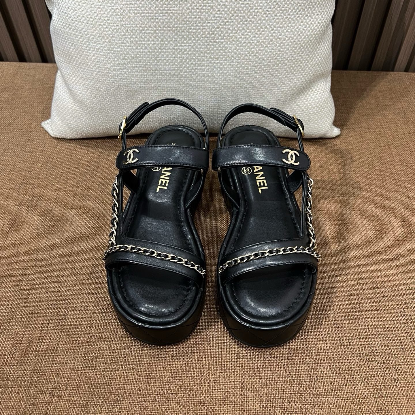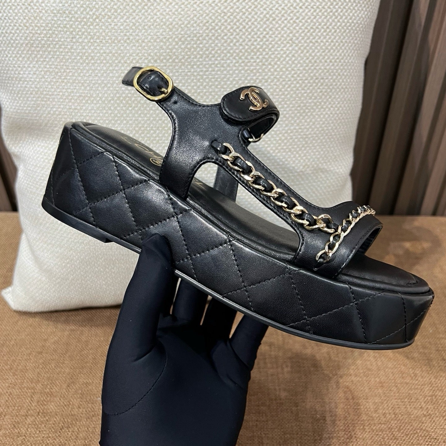 샤넬 퀄팅 웨지 체인 스트랩 샌들