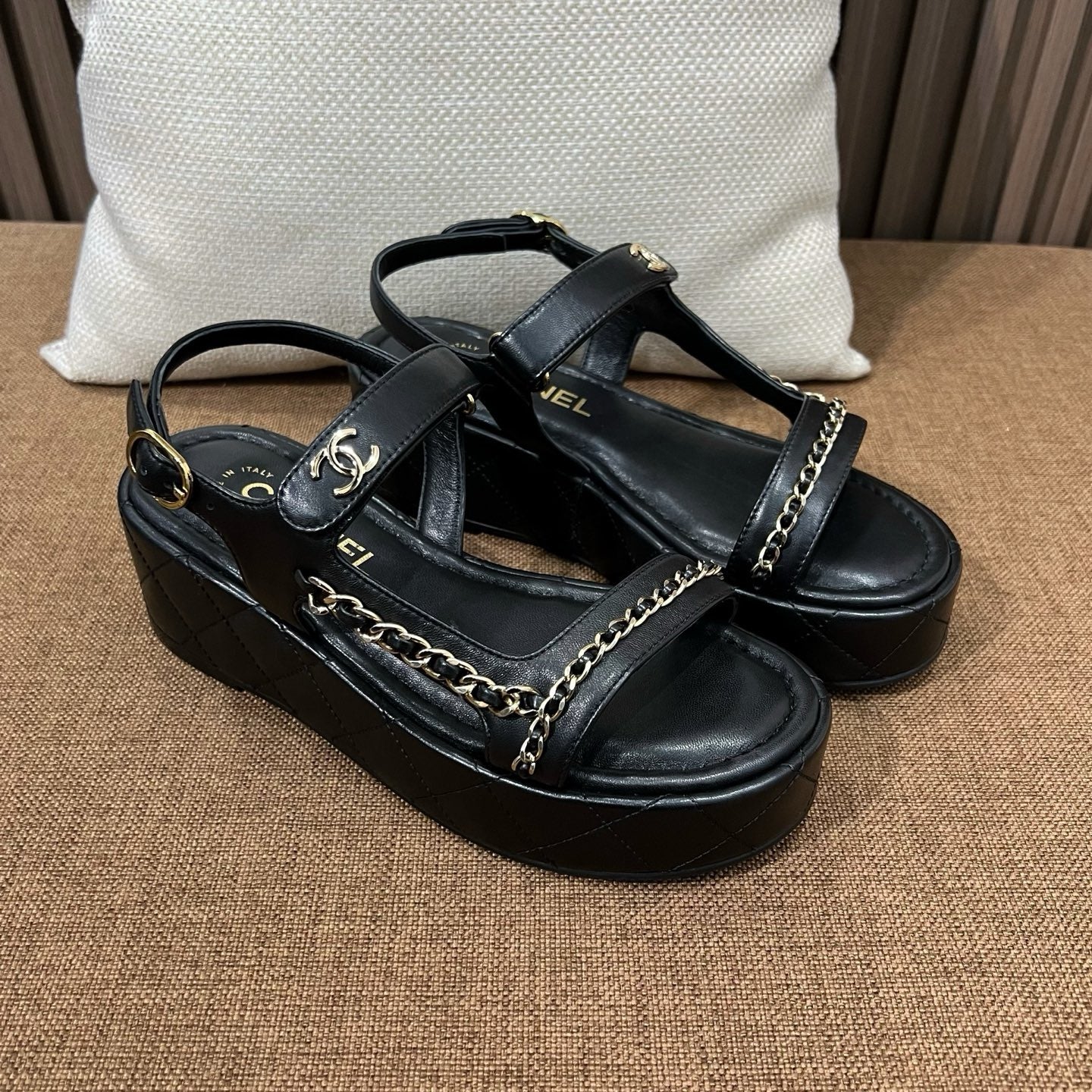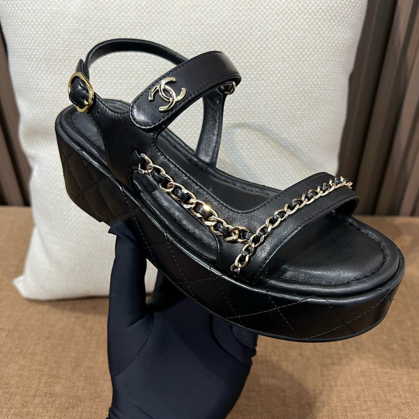샤넬 퀄팅 웨지 체인 스트랩 샌들(Chanel Quilted Wedge Chain Strap Sandals) – 편안한 착화감과 활용도