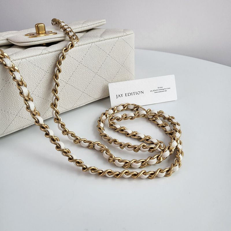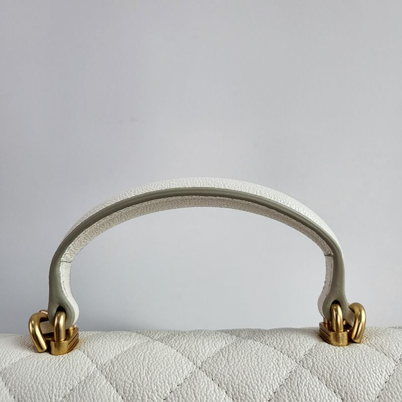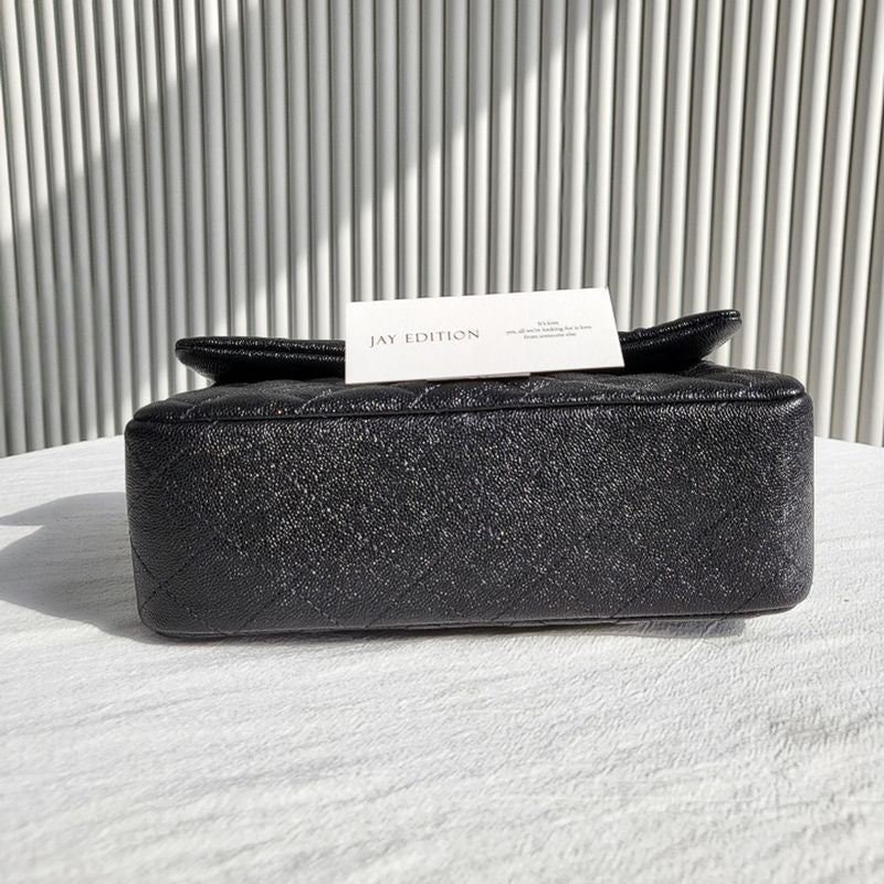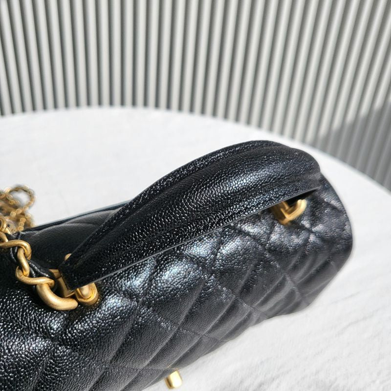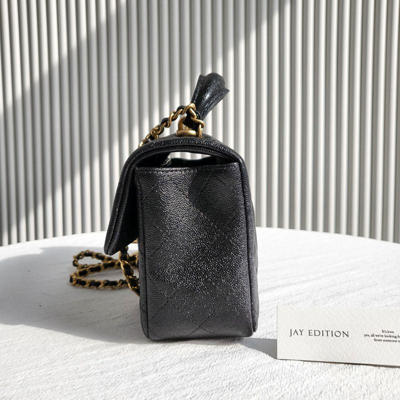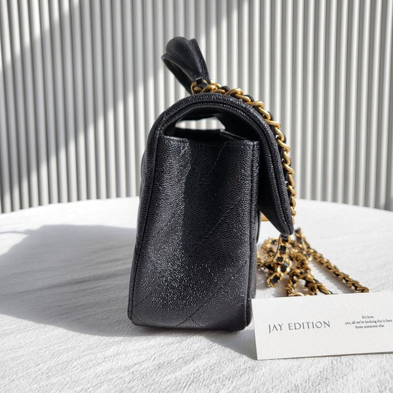 이 백은 샤넬의 상징인 다이아몬드 퀼팅 패턴과 CC 턴록 클로저, 금장 또는 은장 체인 스트랩, 그리고 견고한 탑 핸들이 더해져 모던한 감성을 연출합니다. 램스킨 또는 캐비어 가죽으로 제작되며, 싱글 플랩 구조로 가볍고 실용적인 사용감을 제공합니다.