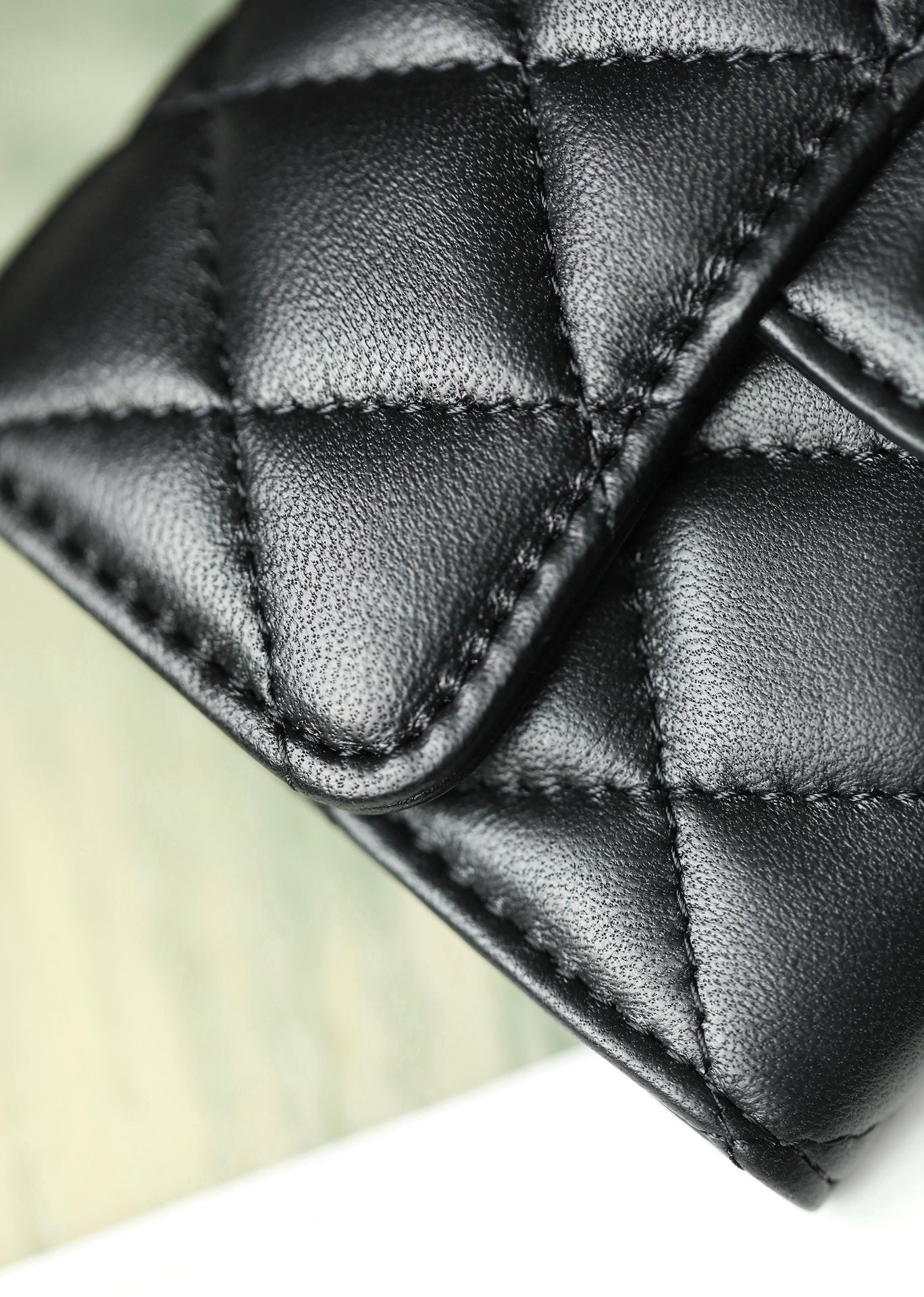 이 제품은 부드럽고 고급스러운 촉감을 지닌 램스킨(양가죽)으로 제작되어, 샤넬 특유의 퀼팅 디테일과 잘 어울립니다.