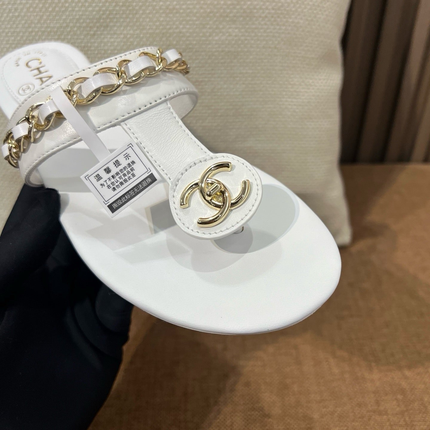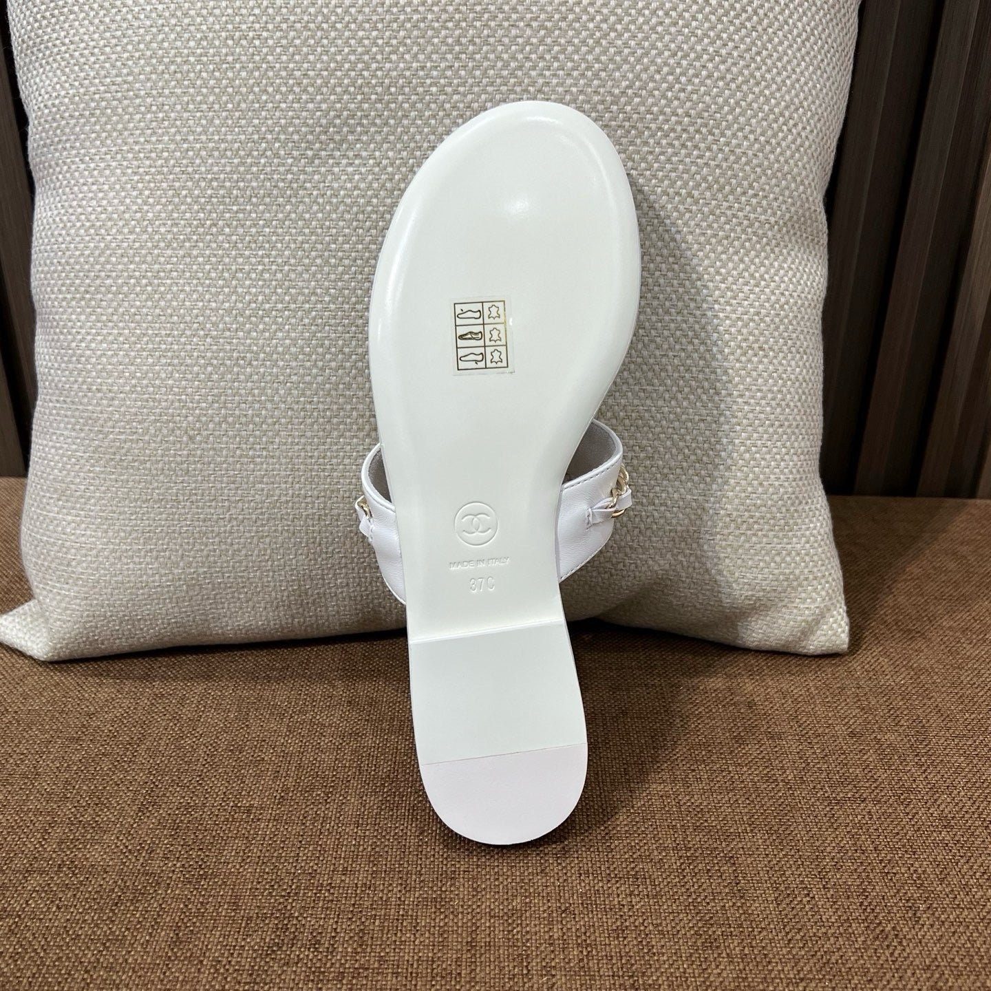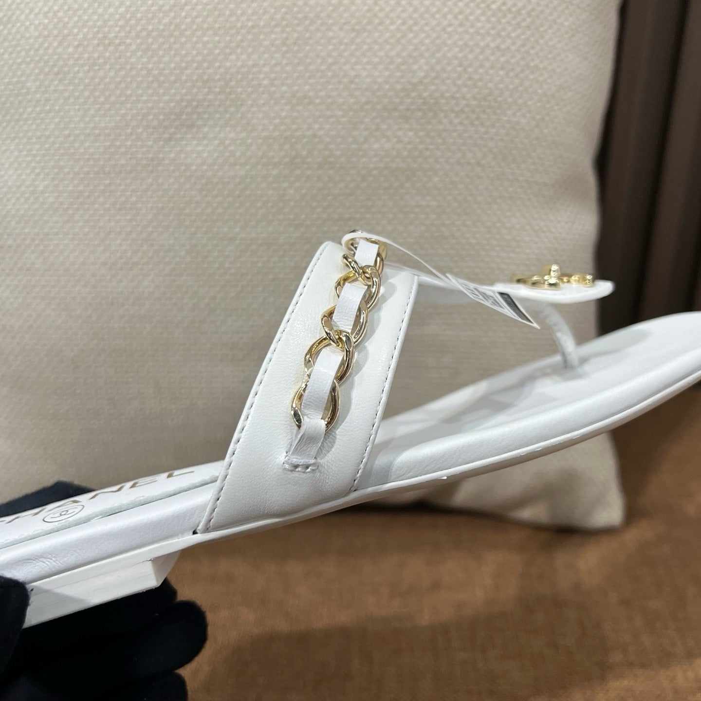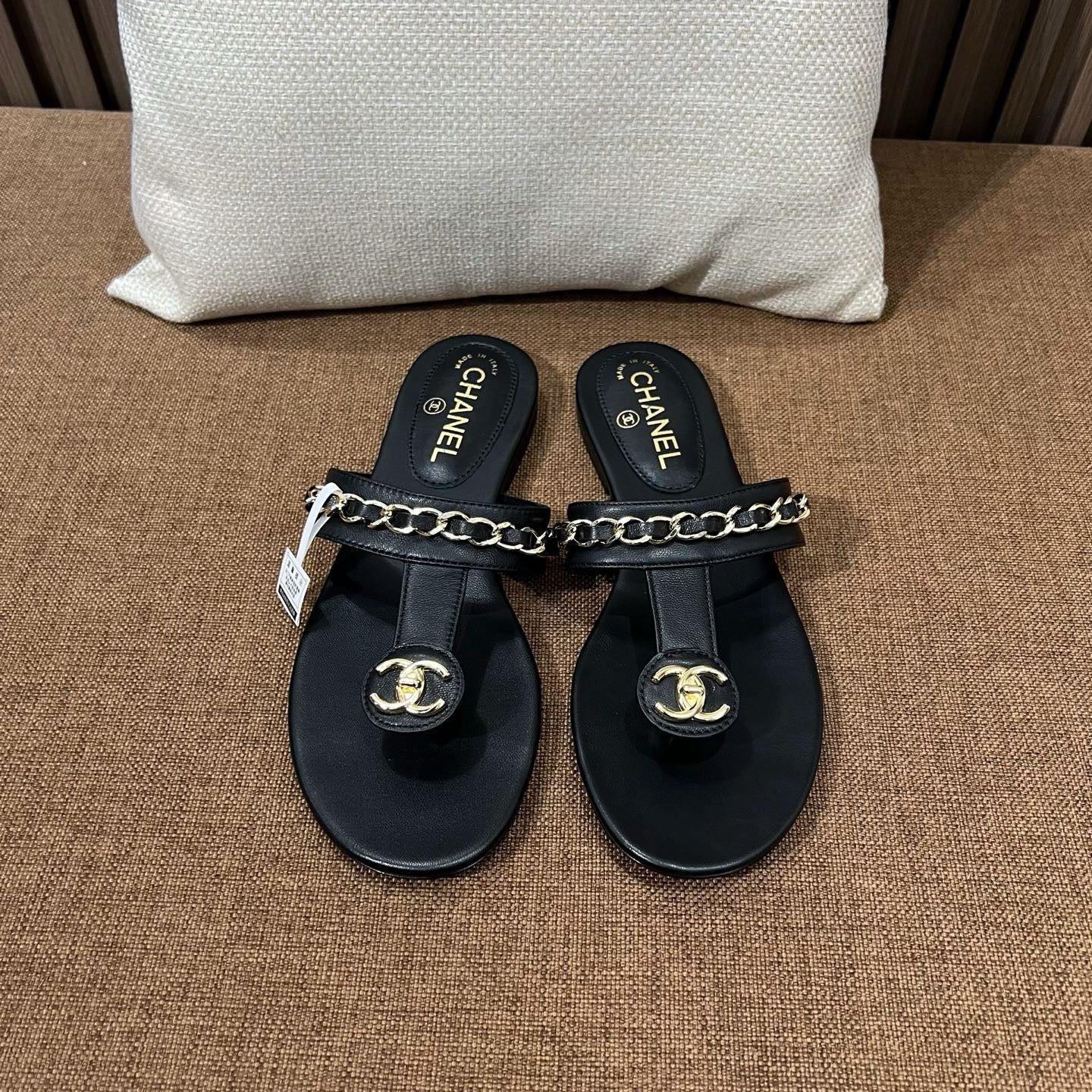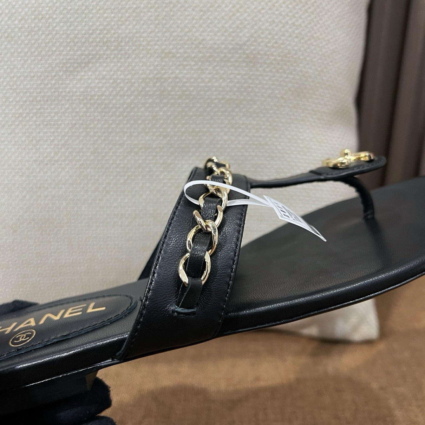 샤넬의 상징적인 턴락 메탈 장식이 스트랩 중앙에 배치되어 포인트를 주며, 발가락 사이를 감싸는 쪼리 스타일의 디자인은 여름철 시원한 착화감을 제공합니다. 가죽 또는 고무 스트랩과 함께 가볍고 유연한 고무 밑창이 적용되어 편안한 착용감을 선사합니다.