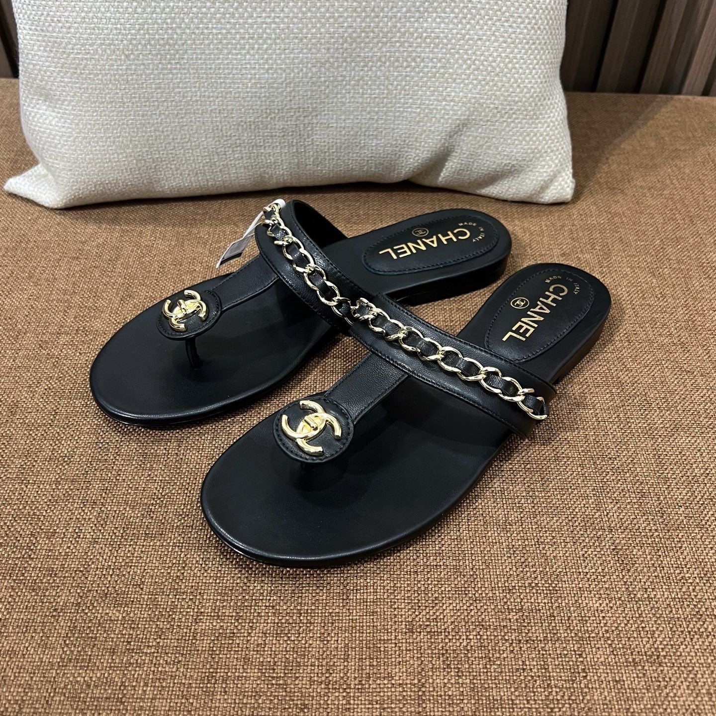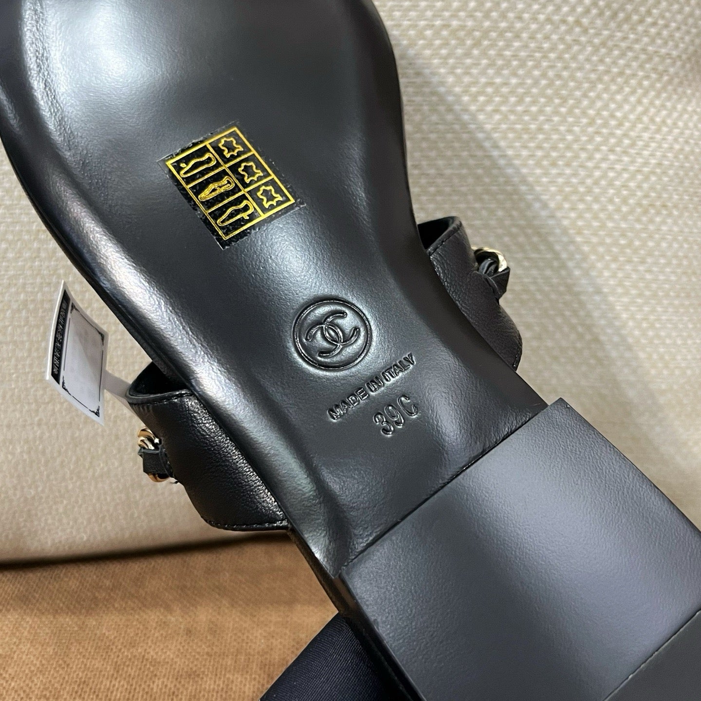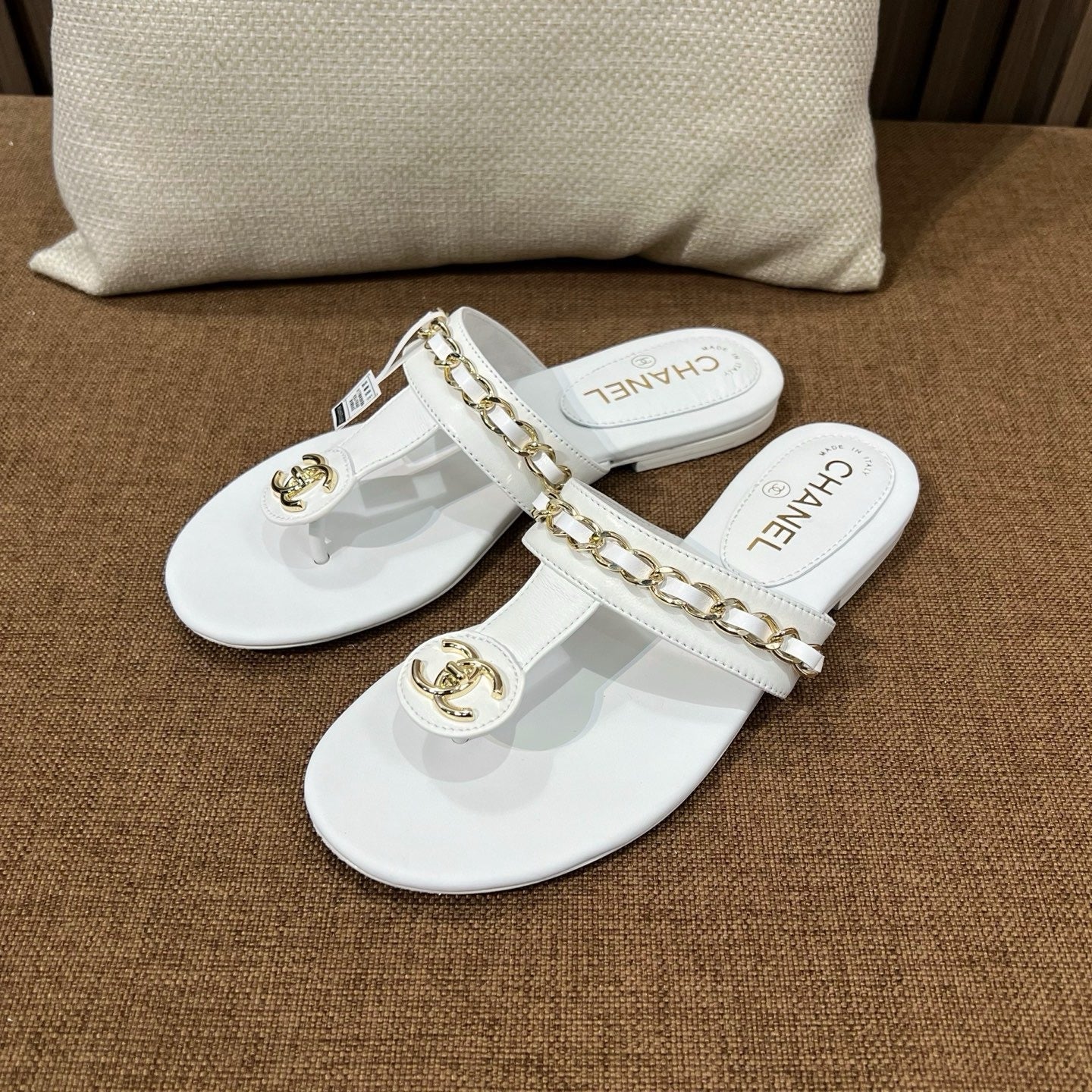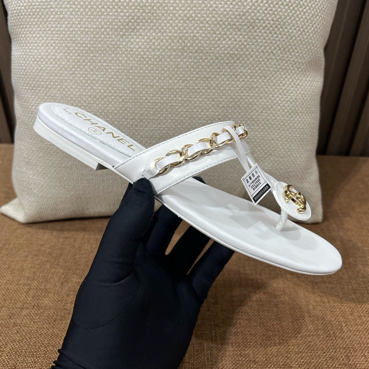 샤넬의 상징적인 턴락 메탈 장식이 스트랩 중앙에 배치되어 포인트를 주며, 발가락 사이를 감싸는 쪼리 스타일의 디자인은 여름철 시원한 착화감을 제공합니다. 가죽 또는 고무 스트랩과 함께 가볍고 유연한 고무 밑창이 적용되어 편안한 착용감을 선사합니다.
