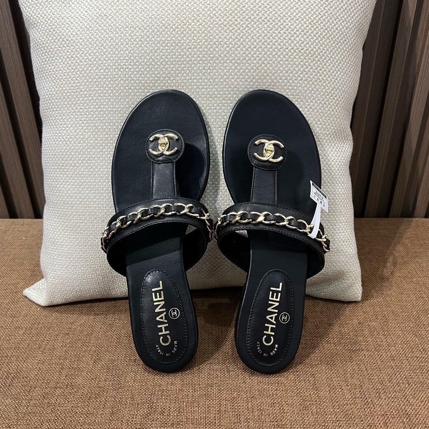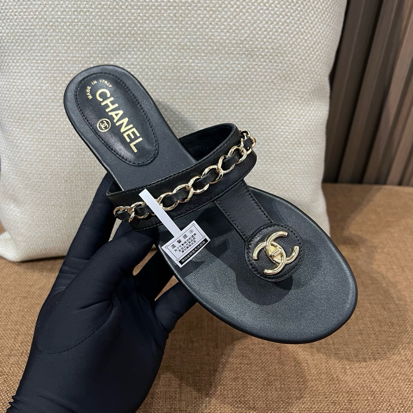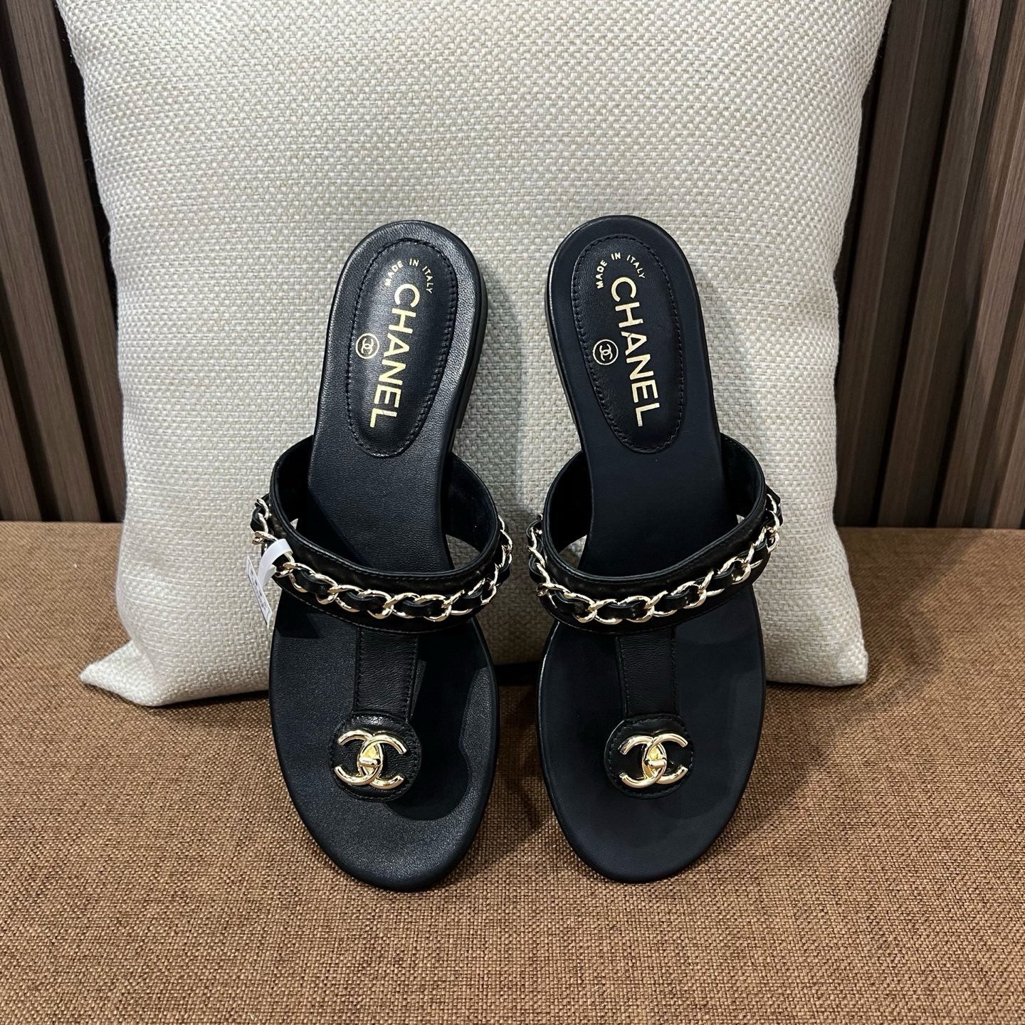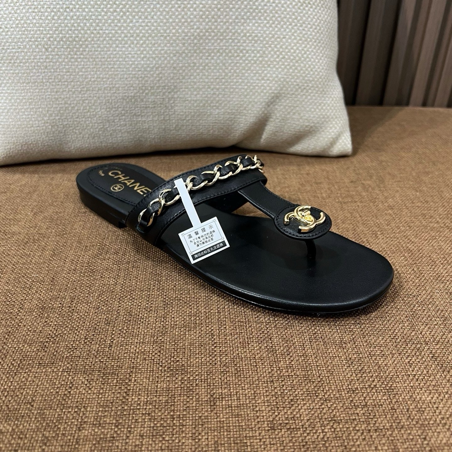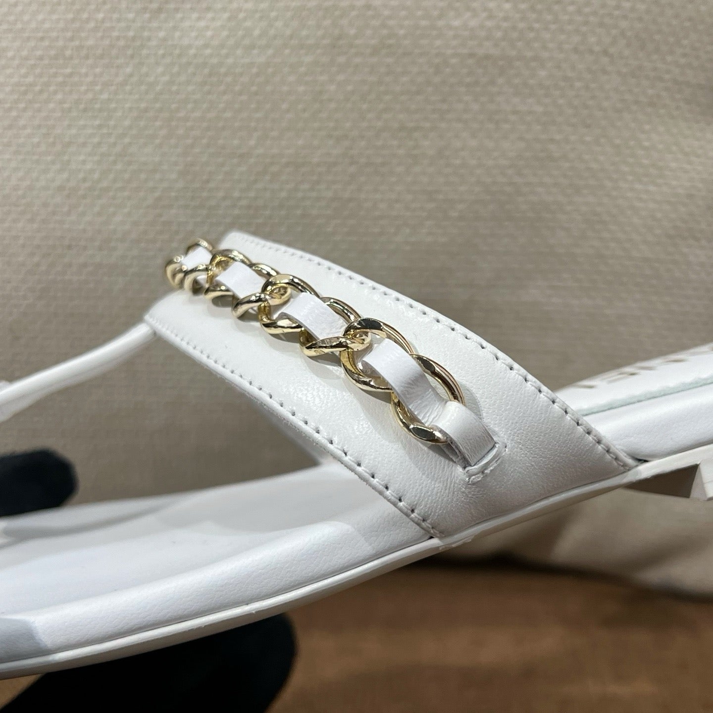샤넬의 상징적인 턴락 메탈 장식이 스트랩 중앙에 배치되어 포인트를 주며, 발가락 사이를 감싸는 쪼리 스타일의 디자인은 여름철 시원한 착화감을 제공합니다. 가죽 또는 고무 스트랩과 함께 가볍고 유연한 고무 밑창이 적용되어 편안한 착용감을 선사합니다.