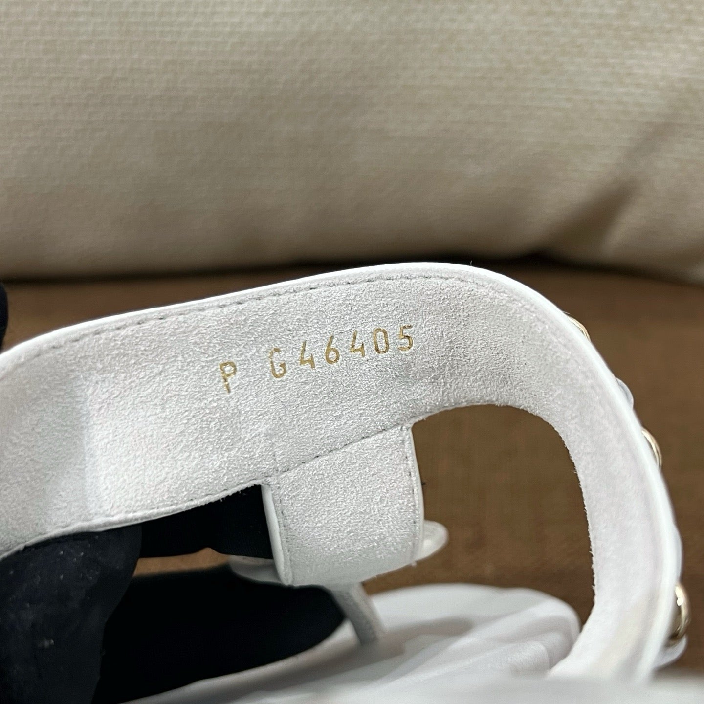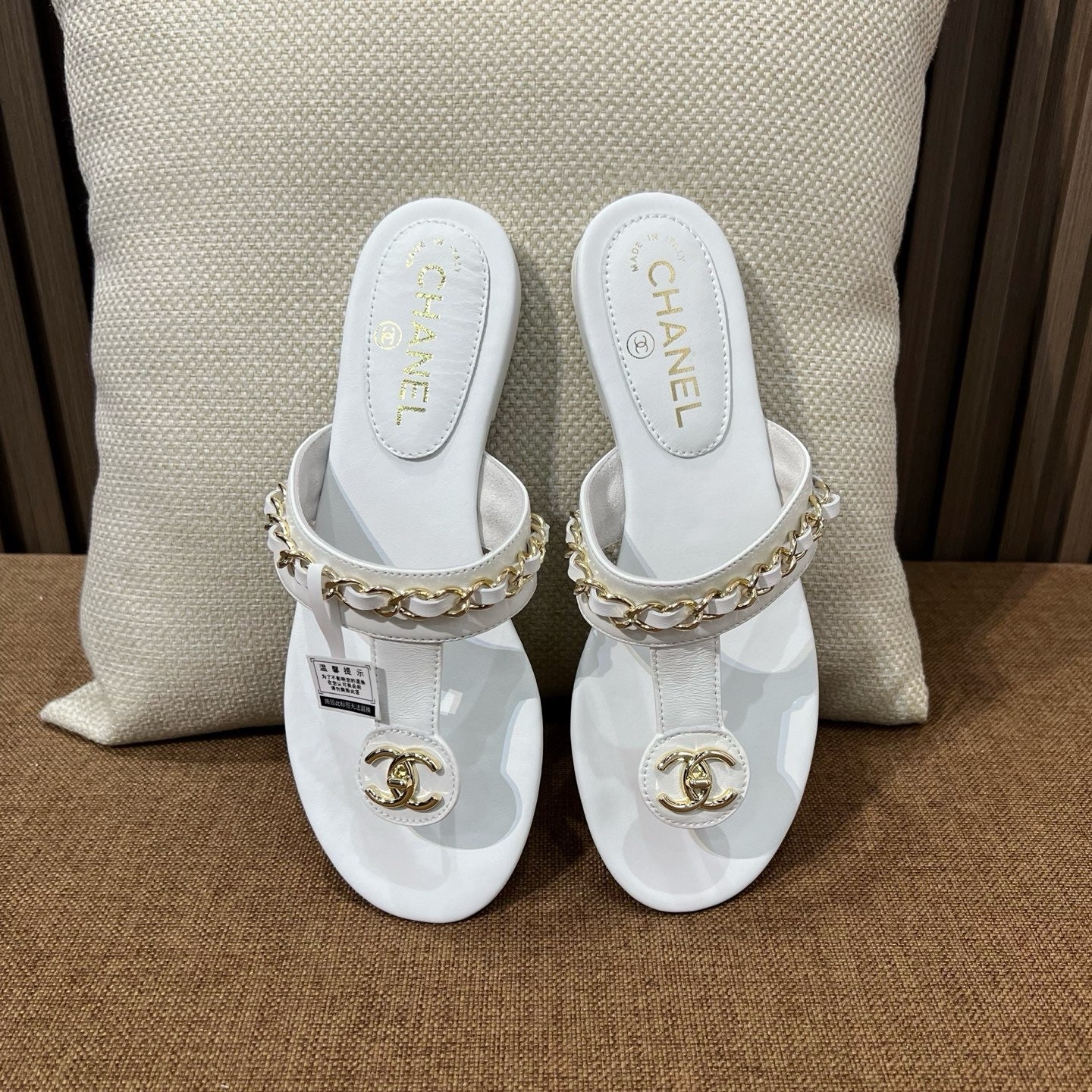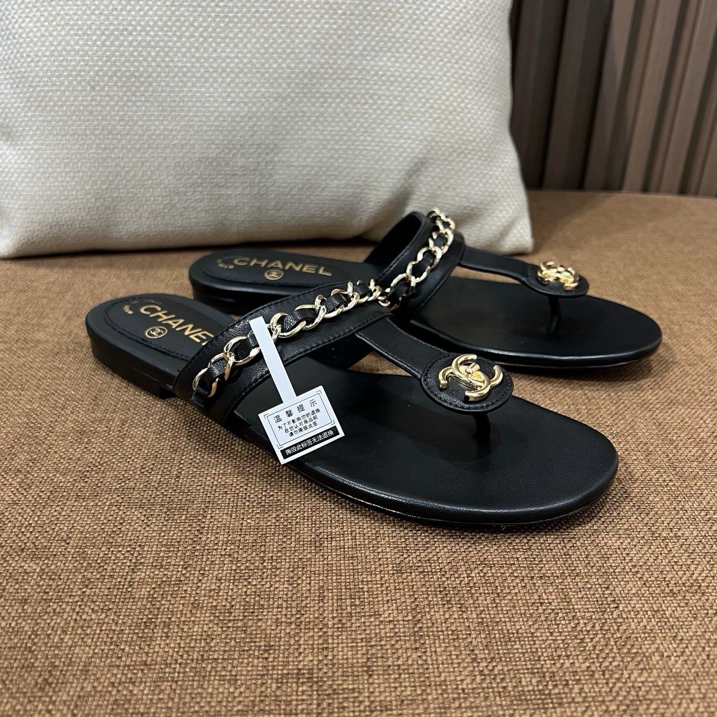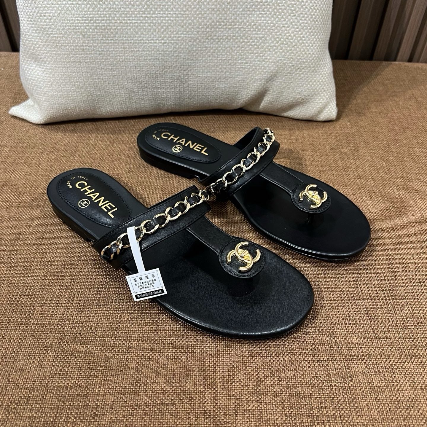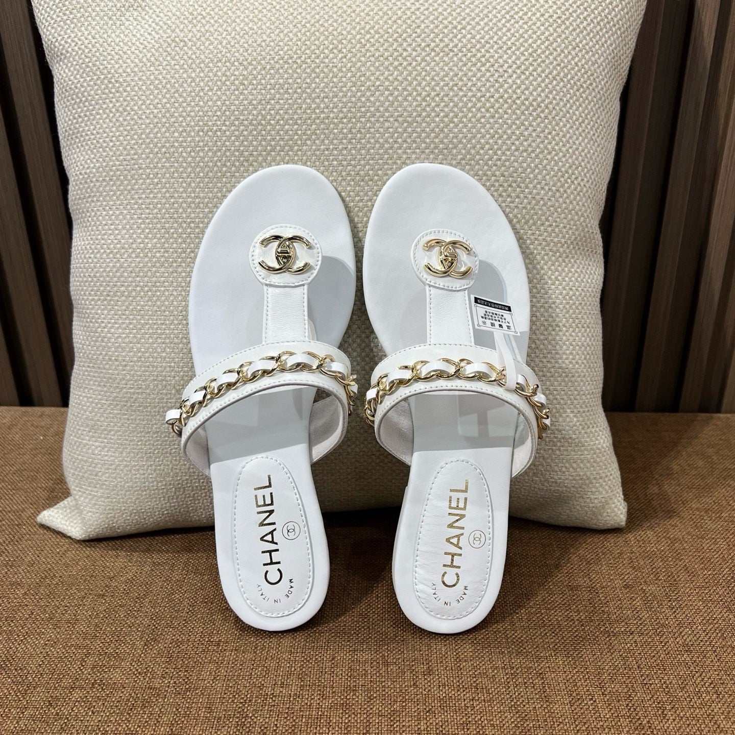 샤넬의 상징적인 턴락 메탈 장식이 스트랩 중앙에 배치되어 포인트를 주며, 발가락 사이를 감싸는 쪼리 스타일의 디자인은 여름철 시원한 착화감을 제공합니다. 가죽 또는 고무 스트랩과 함께 가볍고 유연한 고무 밑창이 적용되어 편안한 착용감을 선사합니다.