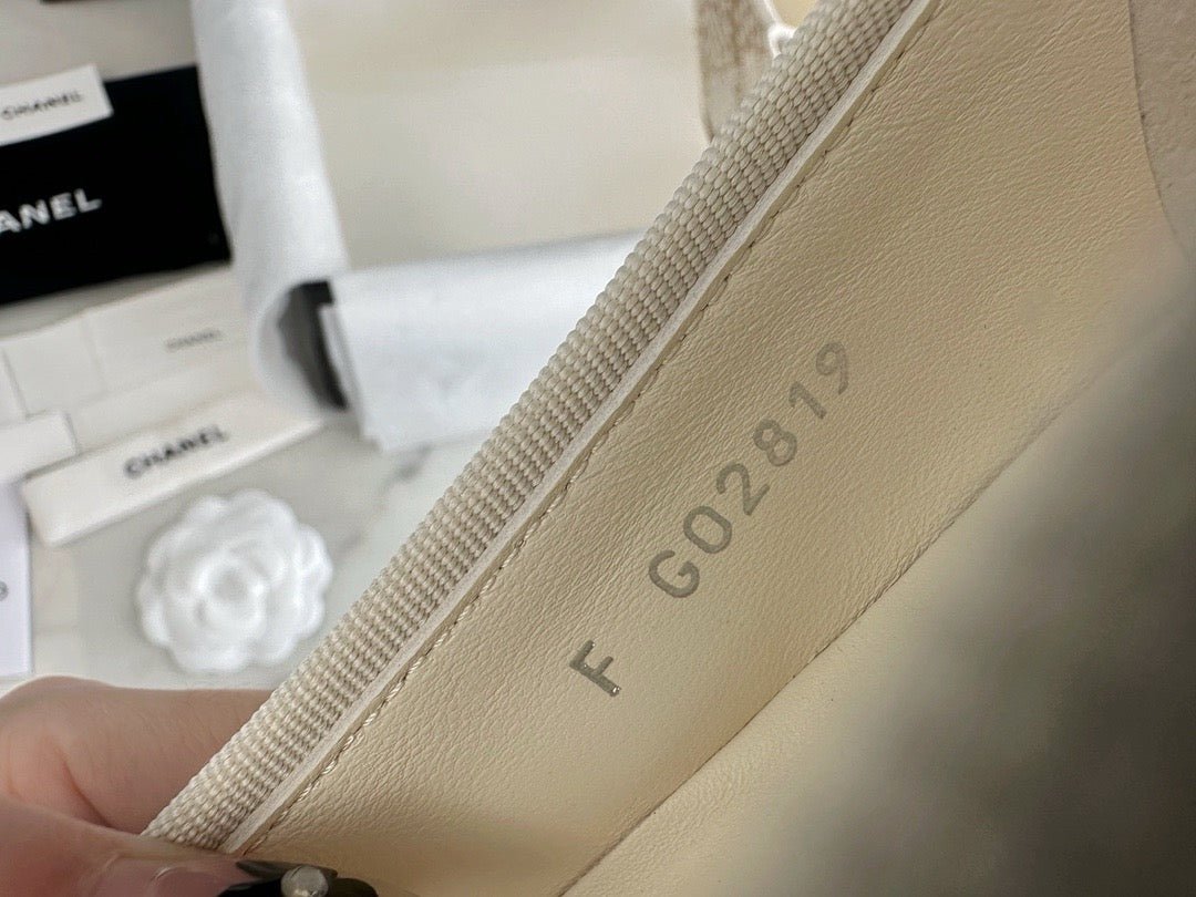 샤넬 트위드 발레리나 플랫은 라운드 토 쉐입에 부드러운 트위드 원단이 감싸진 디자인으로, 발등에는 리본 디테일과 샤넬 로고 자수가 포인트로 들어가 있습니다. 다양한 컬러의 트위드 패턴으로 출시되며, 앞코에 배색 캡토가 적용되어 클래식하면서도 감각적인 스타일을 연출합니다. 낮은 굽 구조로 발에 부담이 없고, 가볍고 유연한 밑창 덕분에 장시간 착화에도 편안함을 제공합니다.