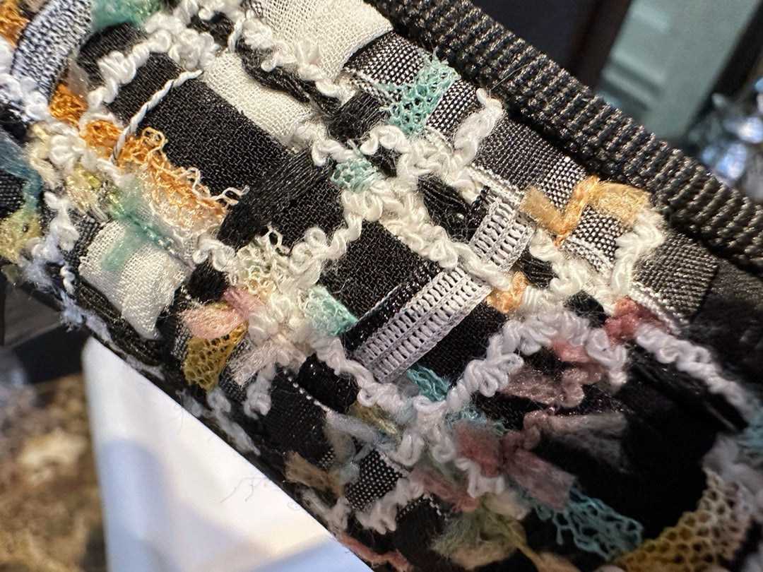 트위드 소재는 마른 브러시로 부드럽게 먼지를 제거해 주며, 습기나 직사광선을 피해서 보관하는 것이 좋습니다. 오염 시에는 섬세한 소재 전용 클리너를 사용하는 것이 안전합니다.