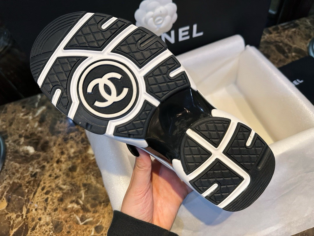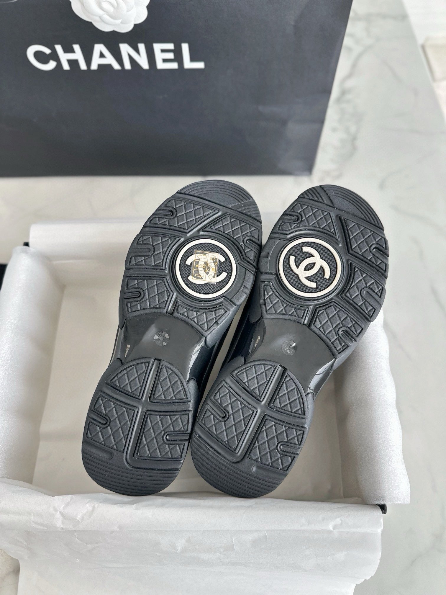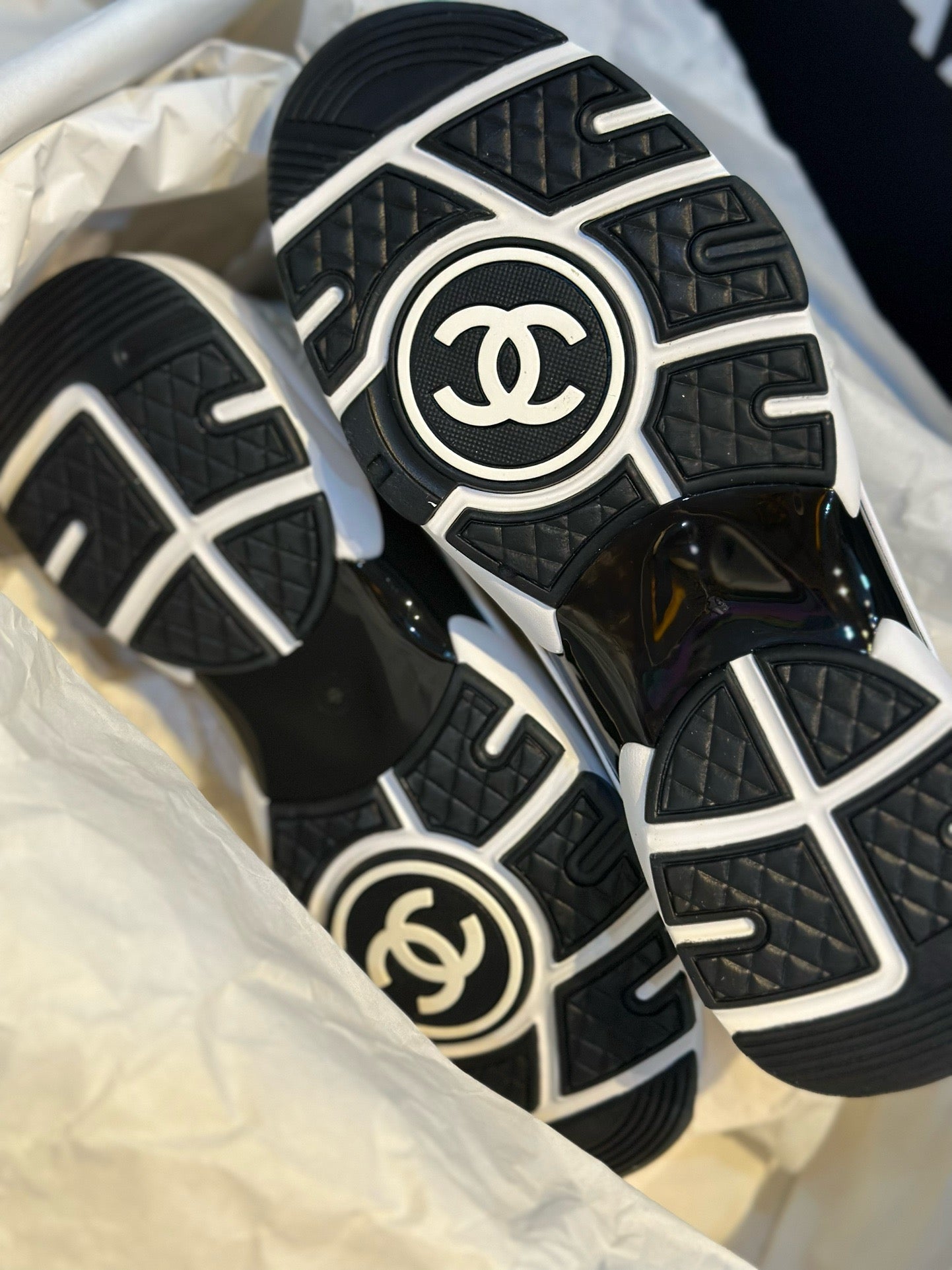 샤넬 트위드 스니커즈는 고급 울 트위드 소재와 가죽 또는 니트 텍스처를 조합하여, 전통적인 우아함과 스포티한 감각을 동시에 표현합니다. 두툼한 러버 아웃솔은 쿠셔닝과 내구성을 강화하여 편안한 보행감을 제공합니다.