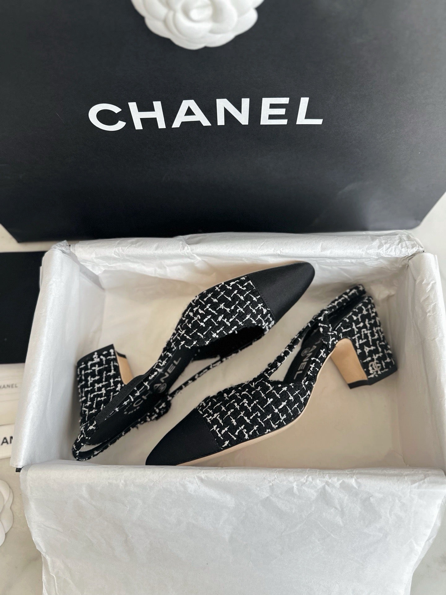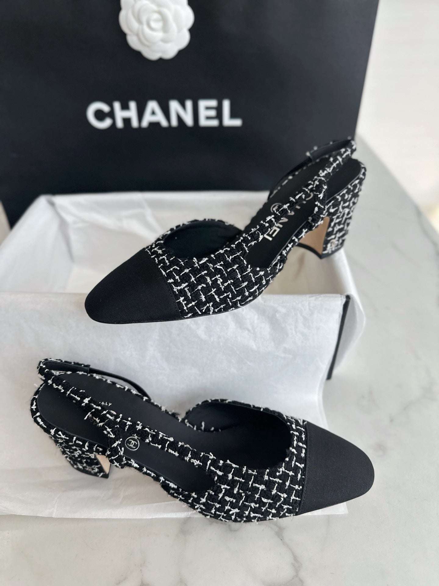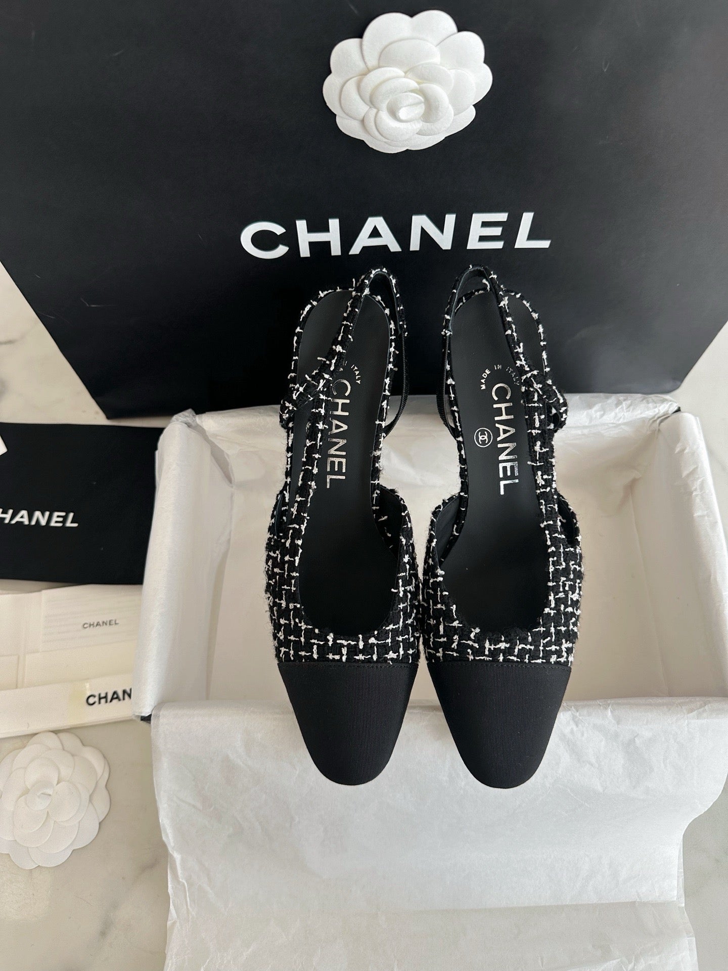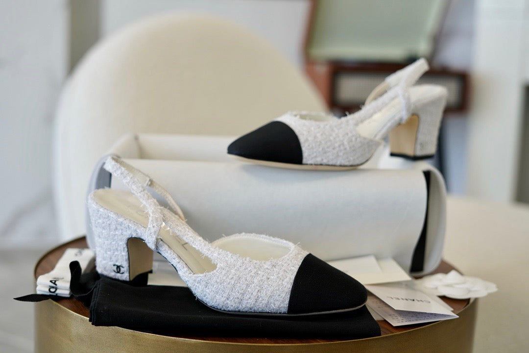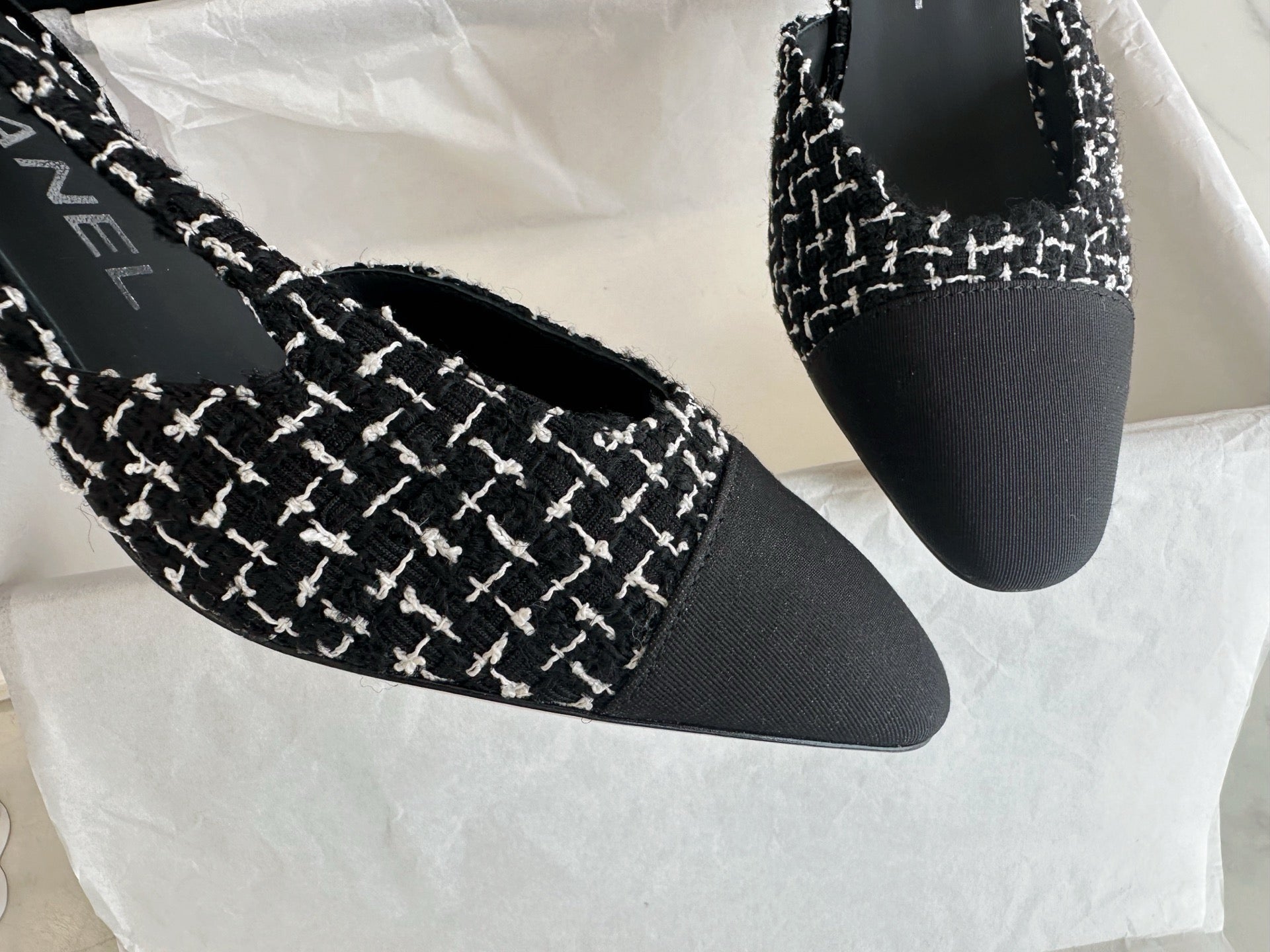 샤넬 트위드 슬링백 미드힐(Chanel Tweed Slingback Mid Heels) - 우아한 트위드의 재해석