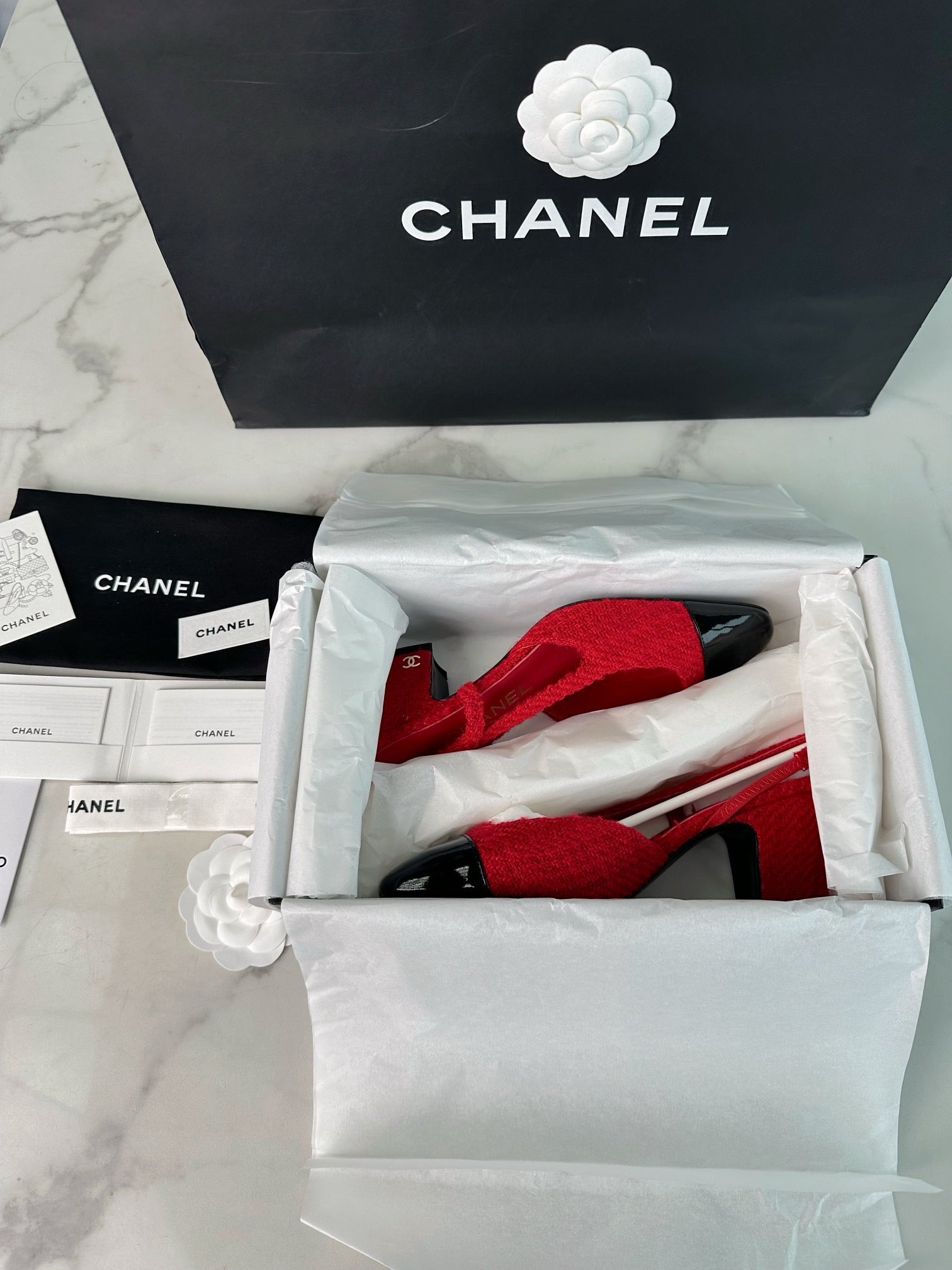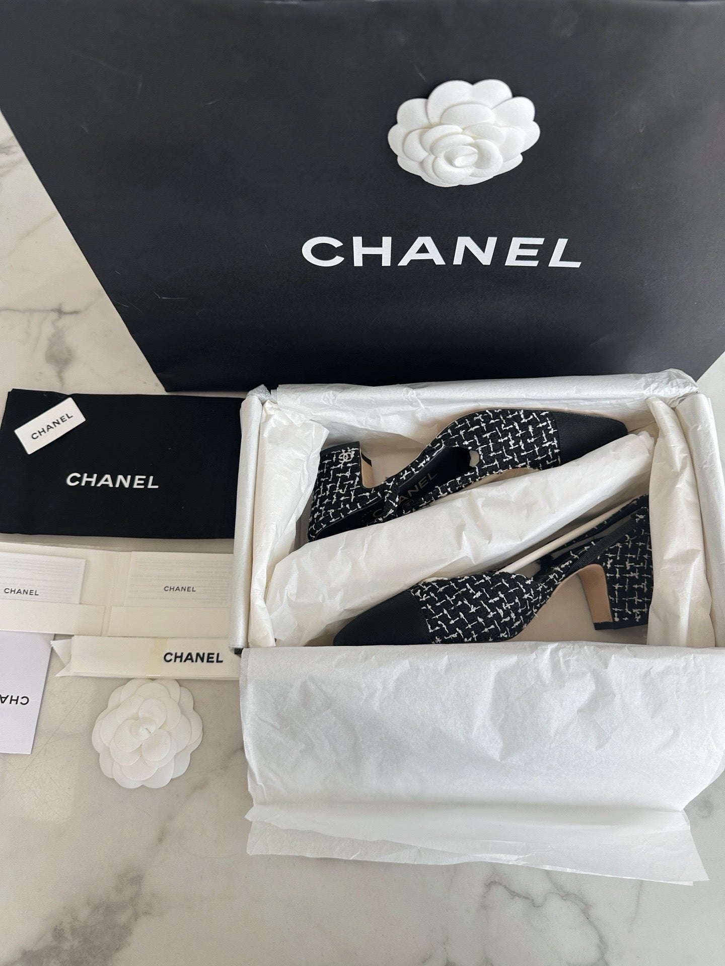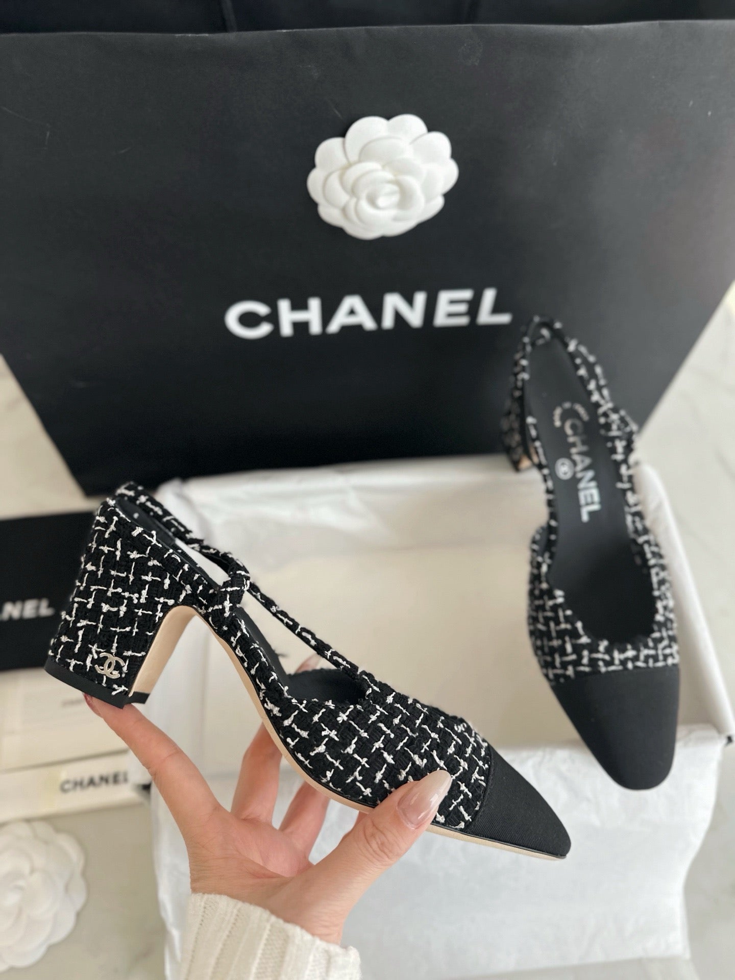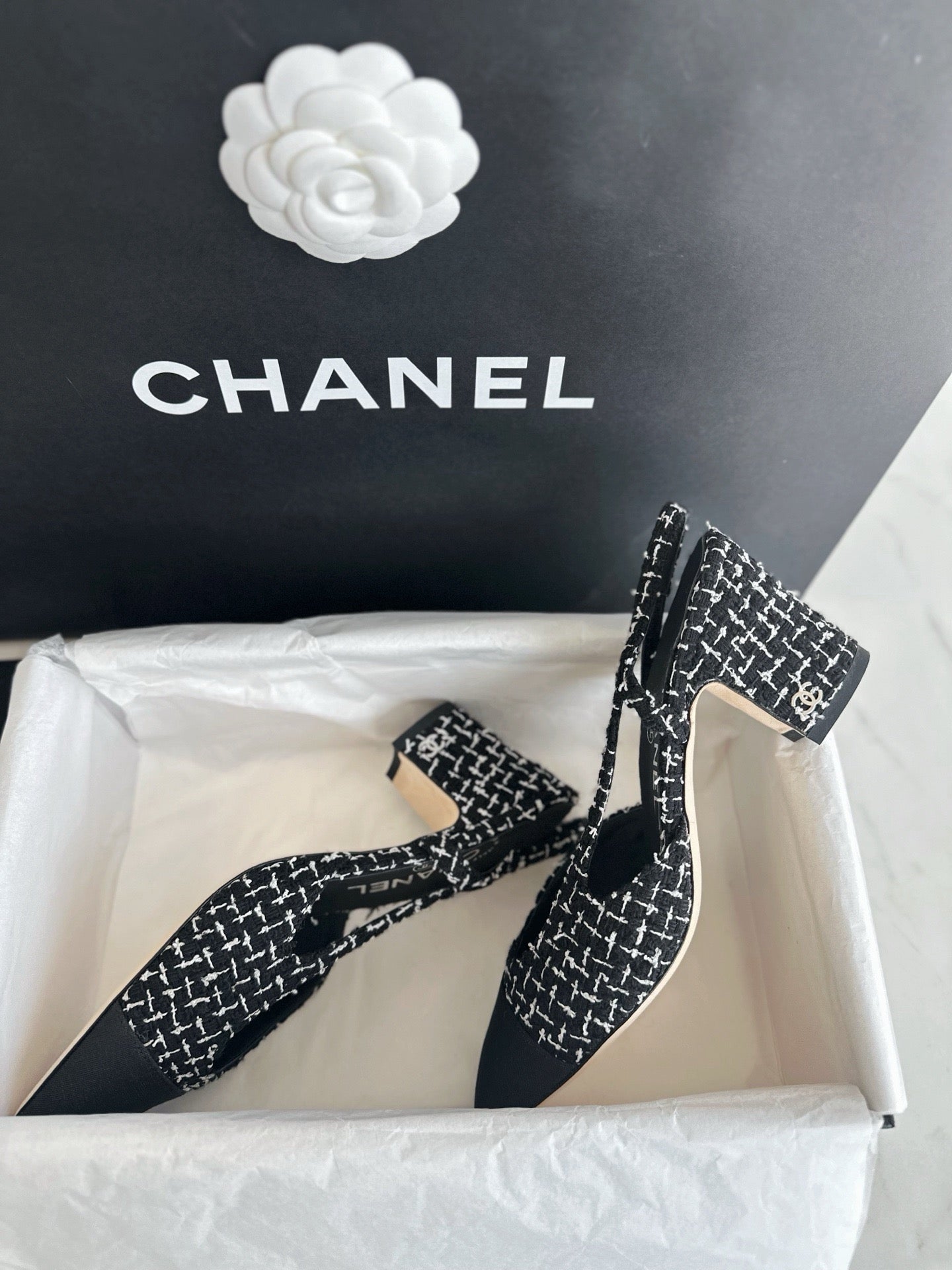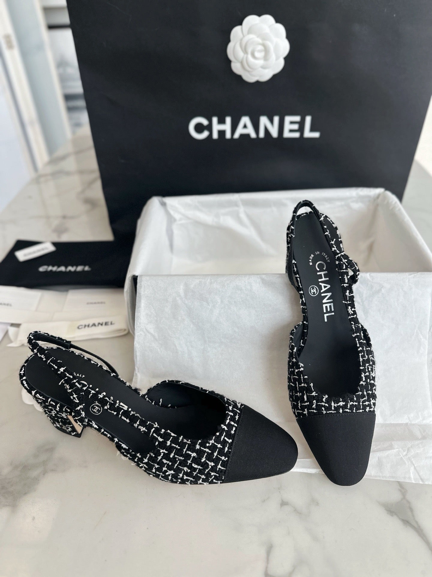 샤넬 트위드 슬링백 미드힐(Chanel Tweed Slingback Mid Heels) - 우아한 트위드의 재해석