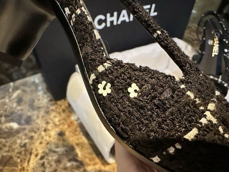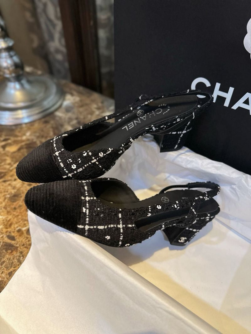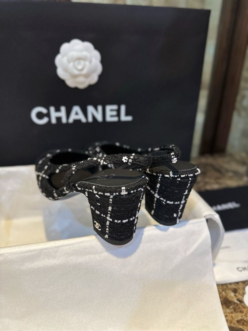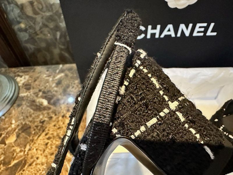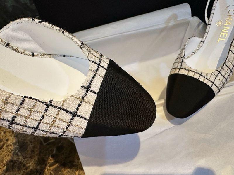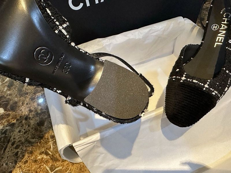 샤넬 트위드 슬링백 미드힐(Chanel Tweed Slingback Mid-Heel) - 텍스처의 미학과 우아한 실루엣